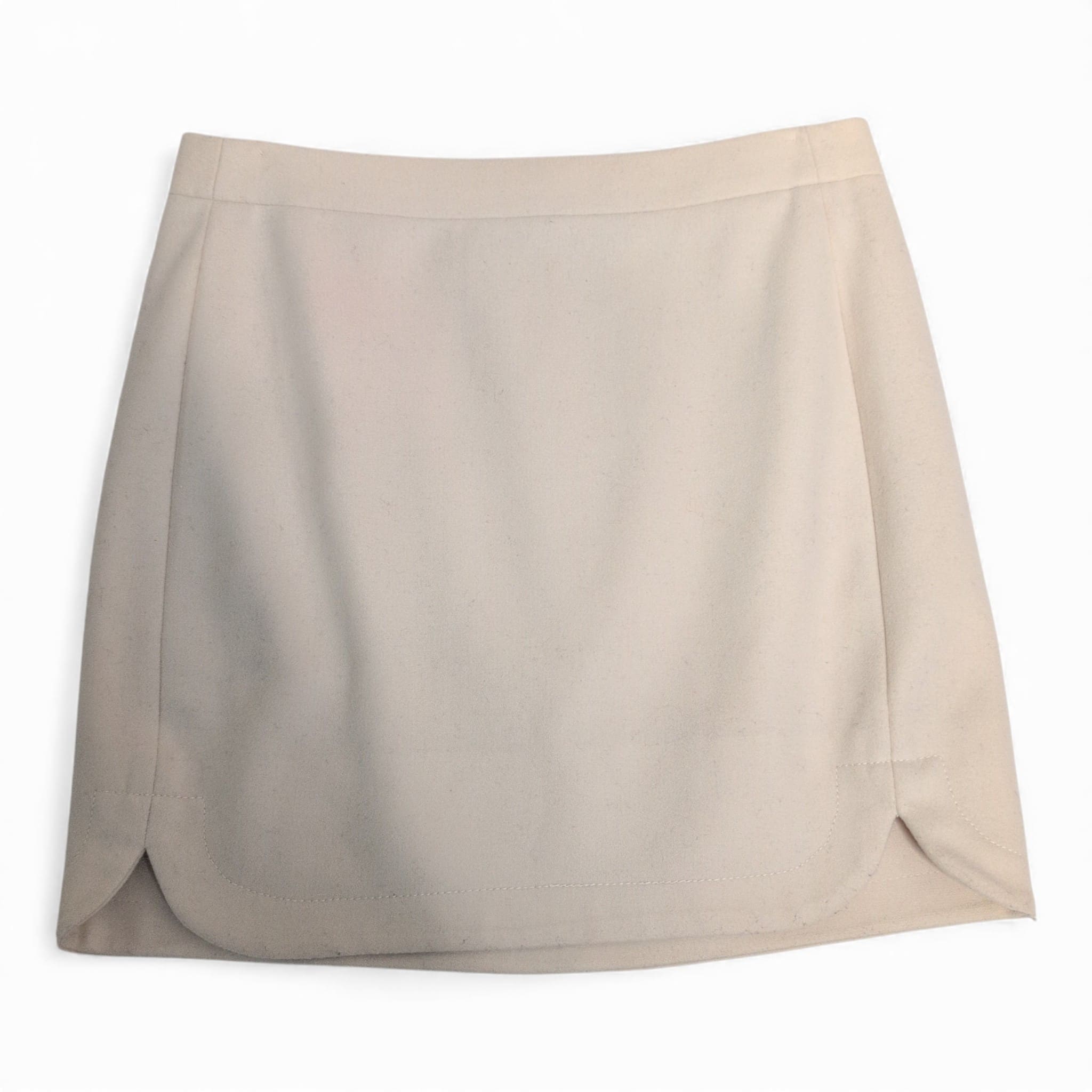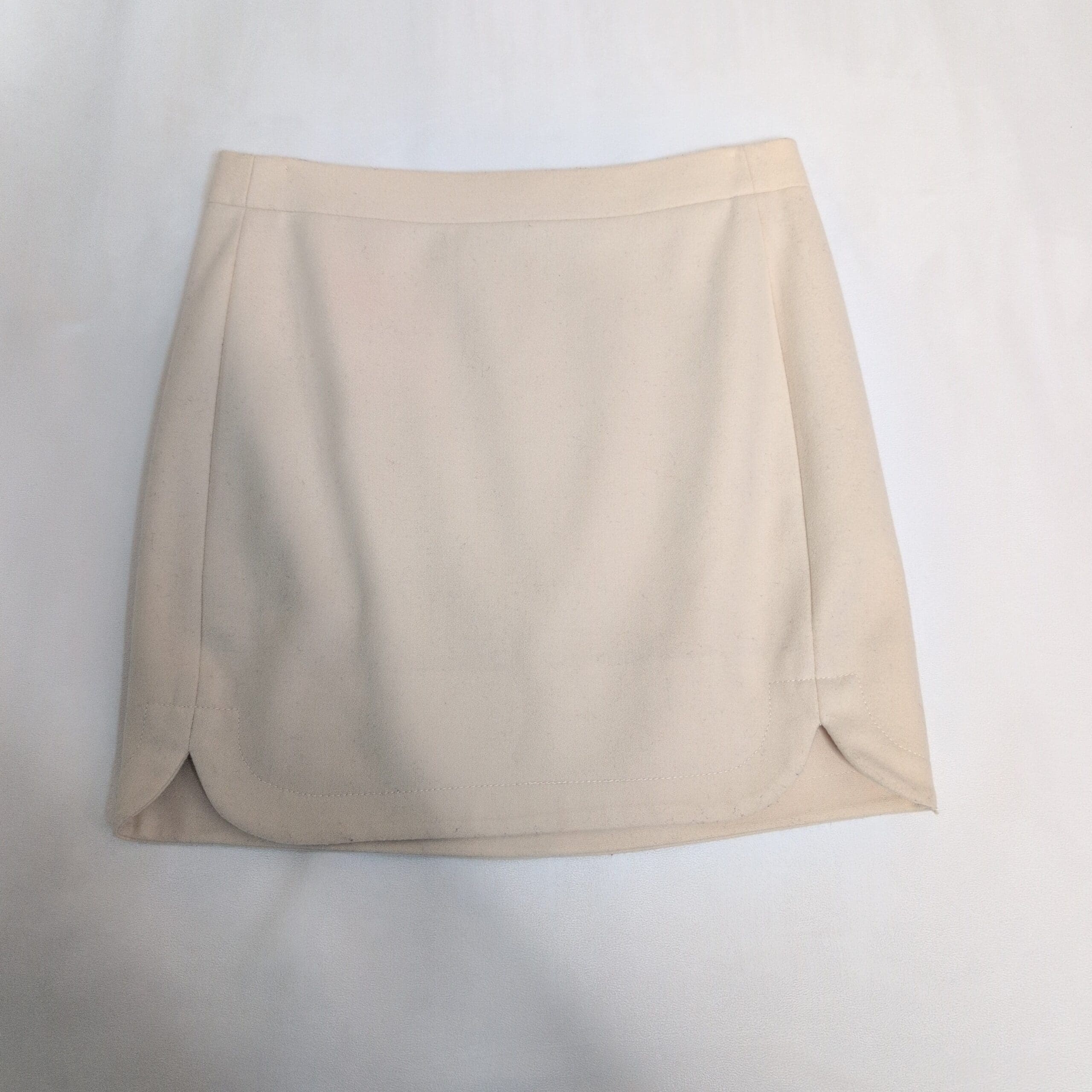 J.Crew white pencil skirt in women’s size 2. Clean, tailored silhouette with a subtle curved hemline detail for a polished look. Overall good condition; needs to be de-linted to remove surface fibers. Ideal for office wear or dressed-up casual outfits.