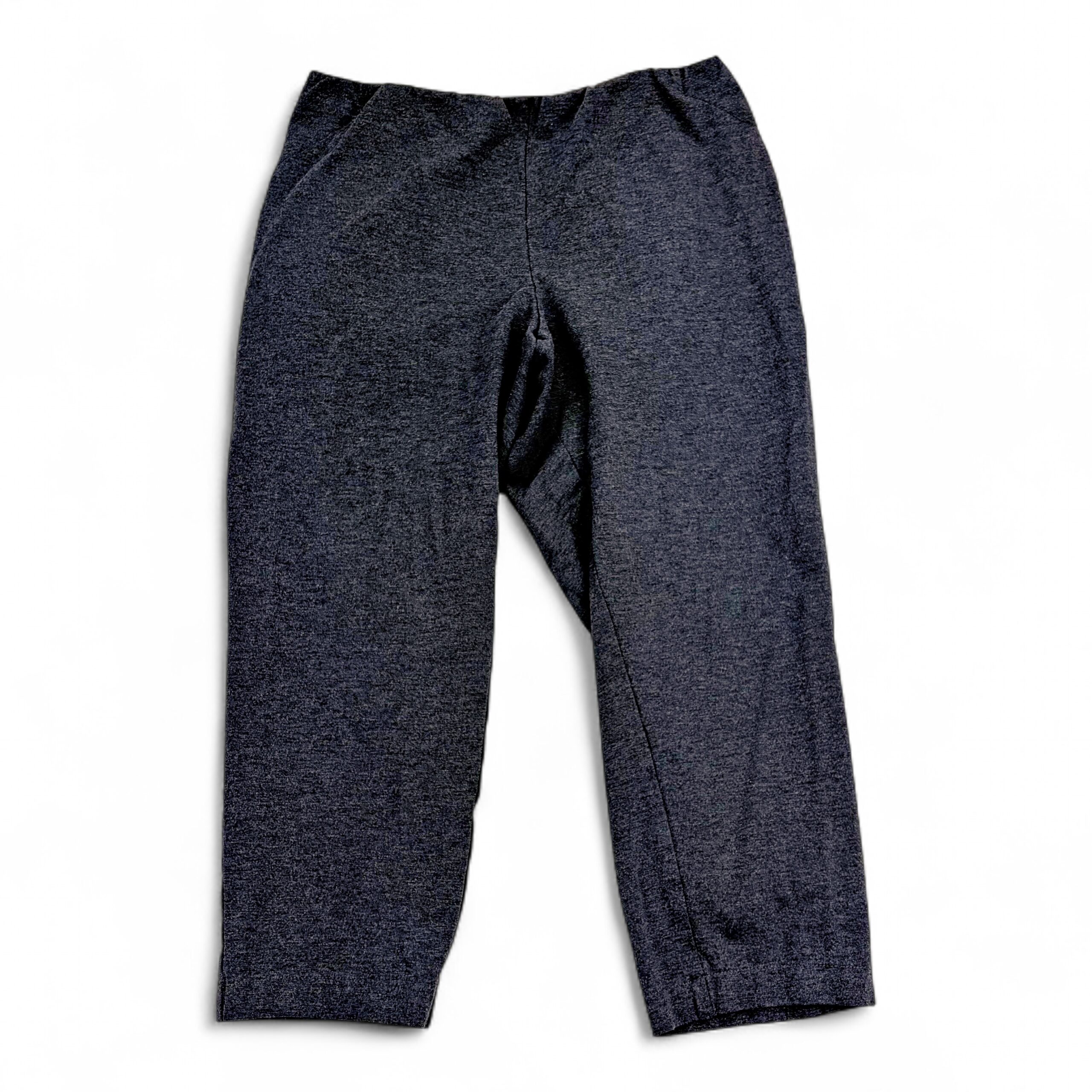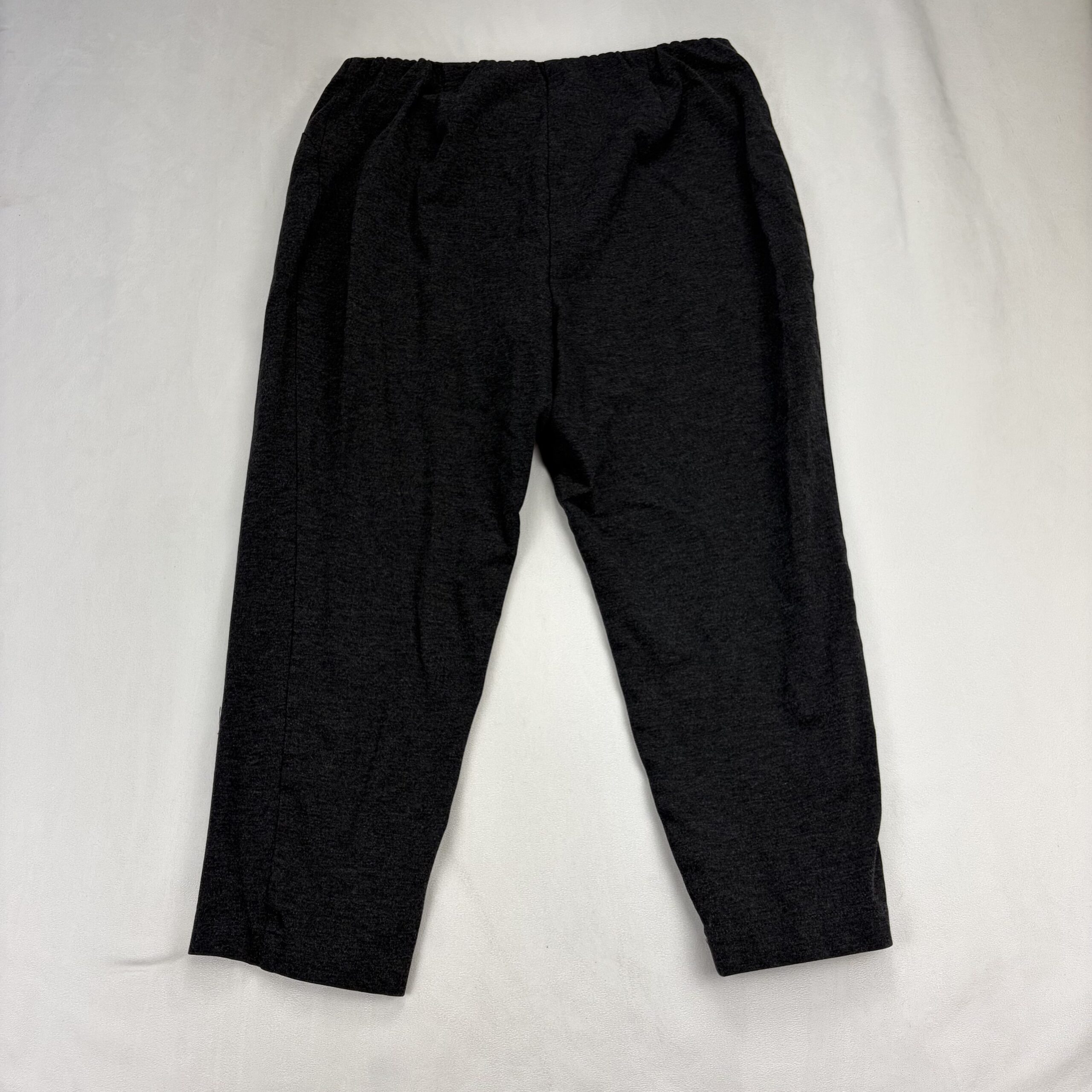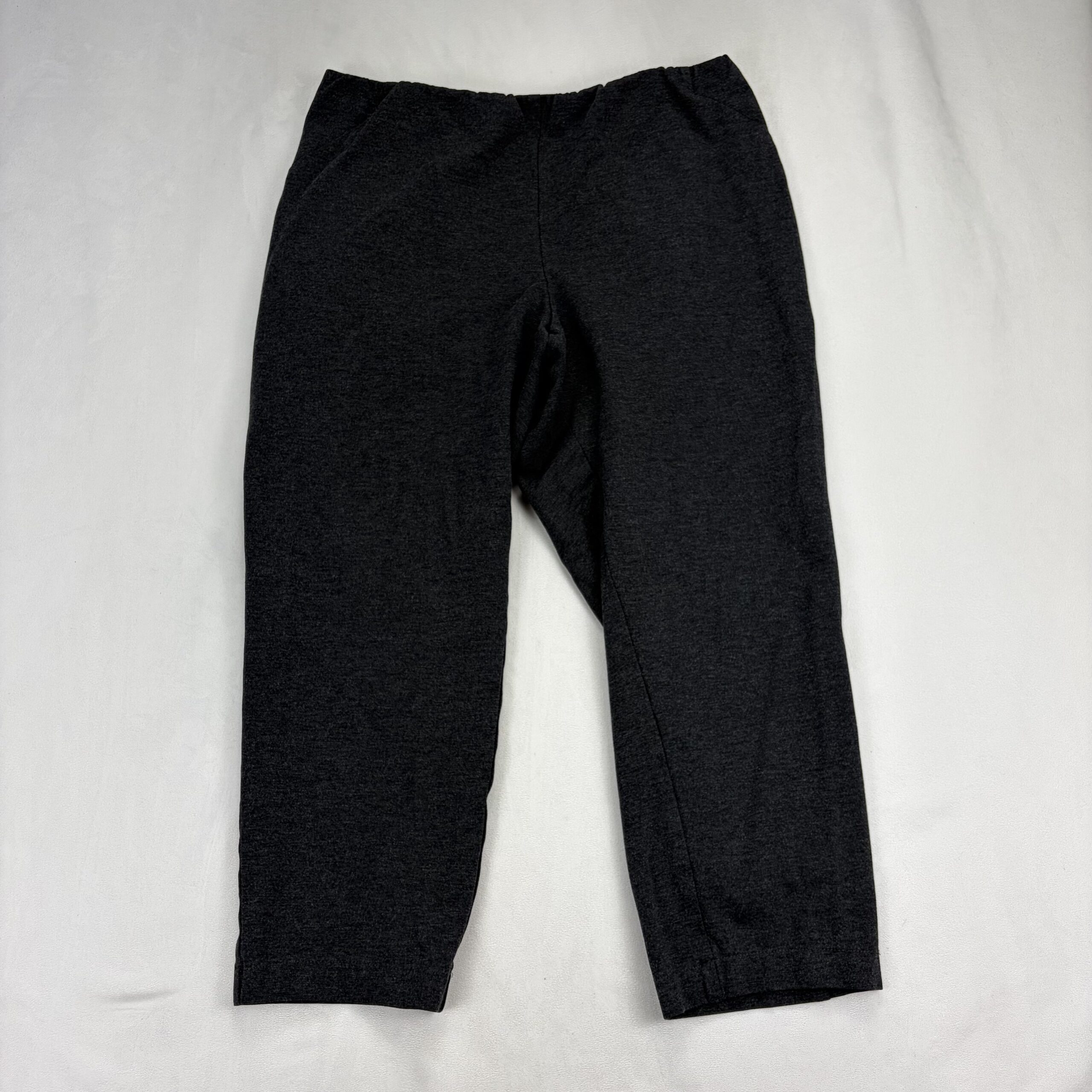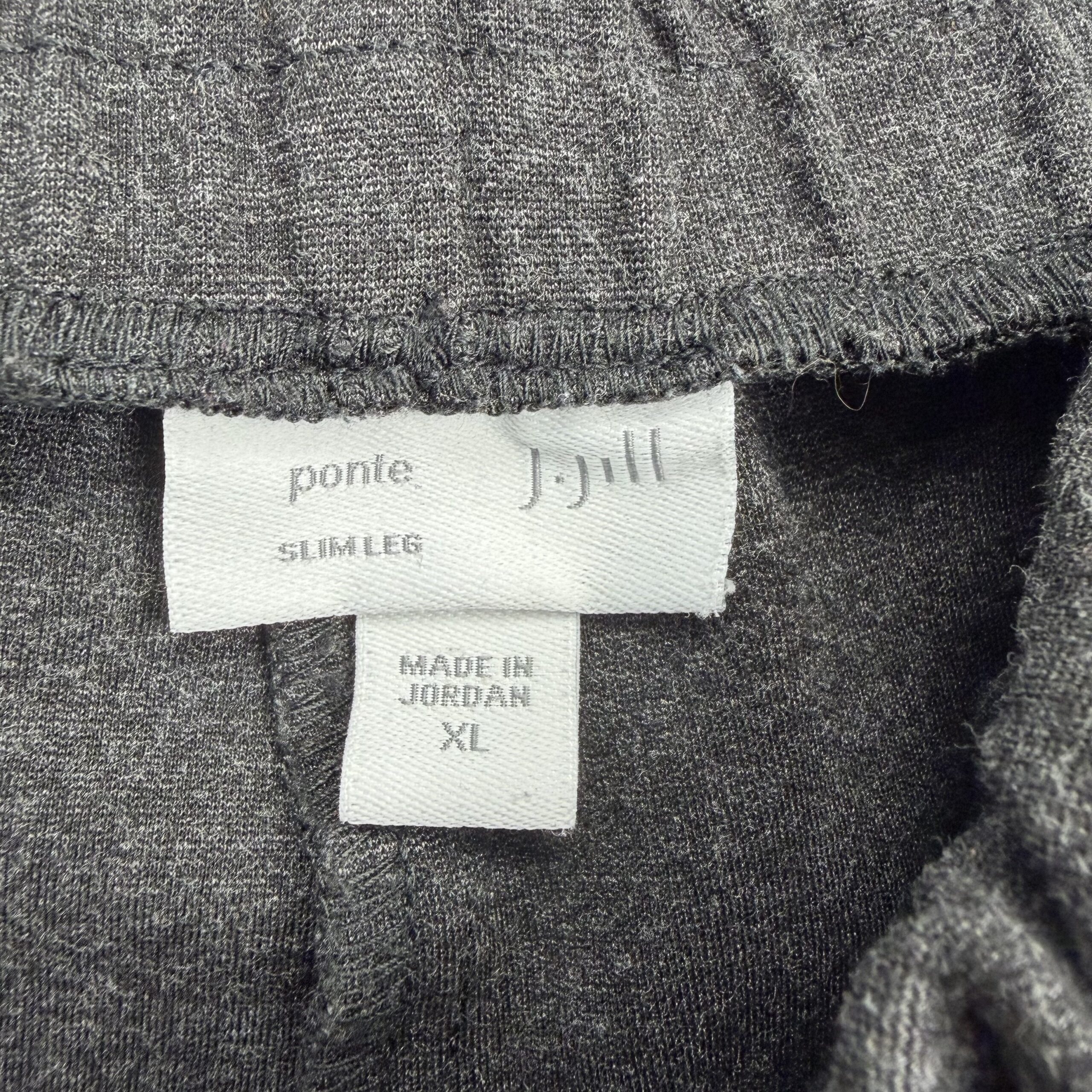 J. Jill women’s pull-on tapered knit joggers in charcoal — Size XL. Soft, stretchy knit with an elastic pull-on waist and a tapered ankle for a clean, polished casual look. Comfortable and versatile for errands, travel, or lounging. Excellent used condition — free of rips, tears, stains, or major flaws; shows light, normal wear consistent with gentle use.