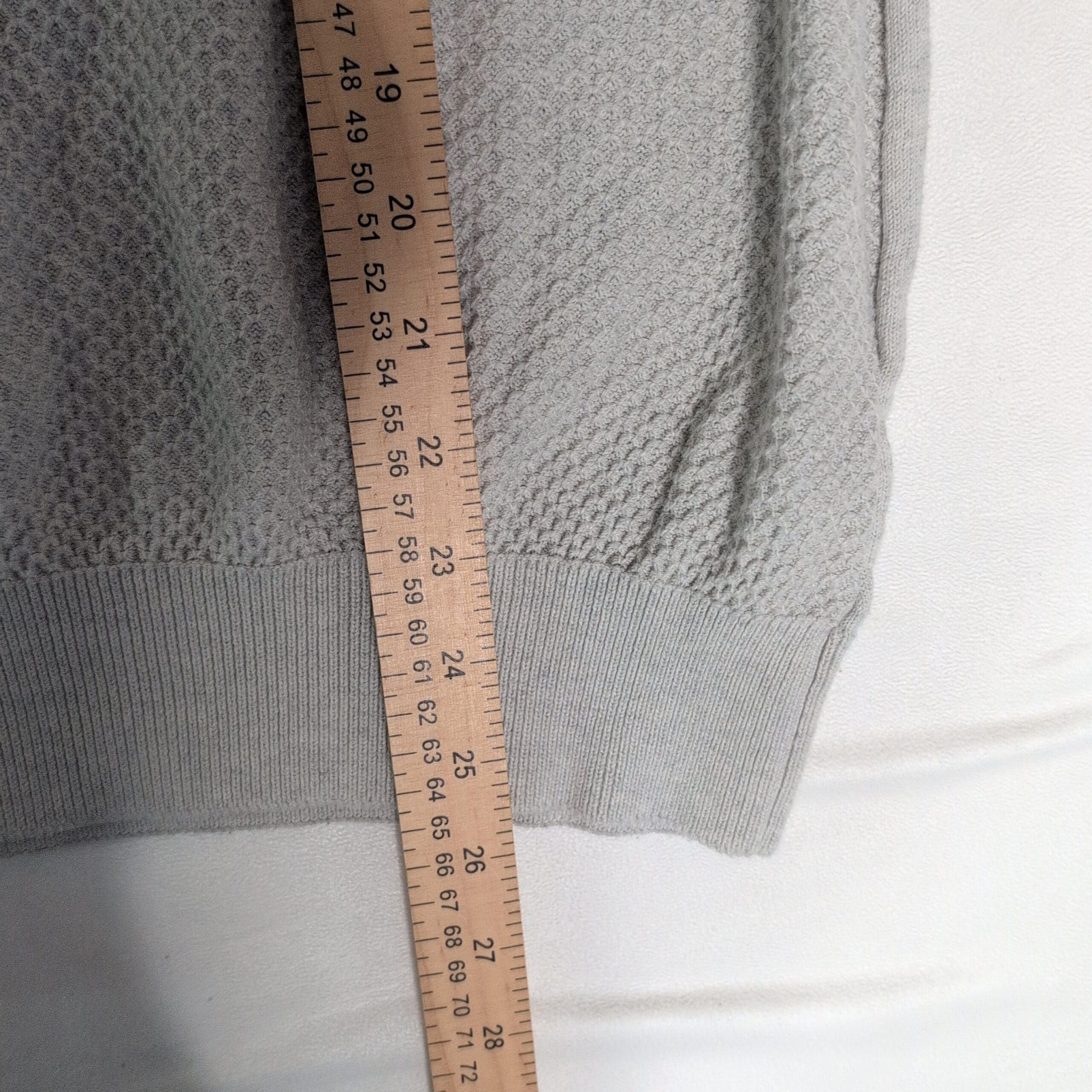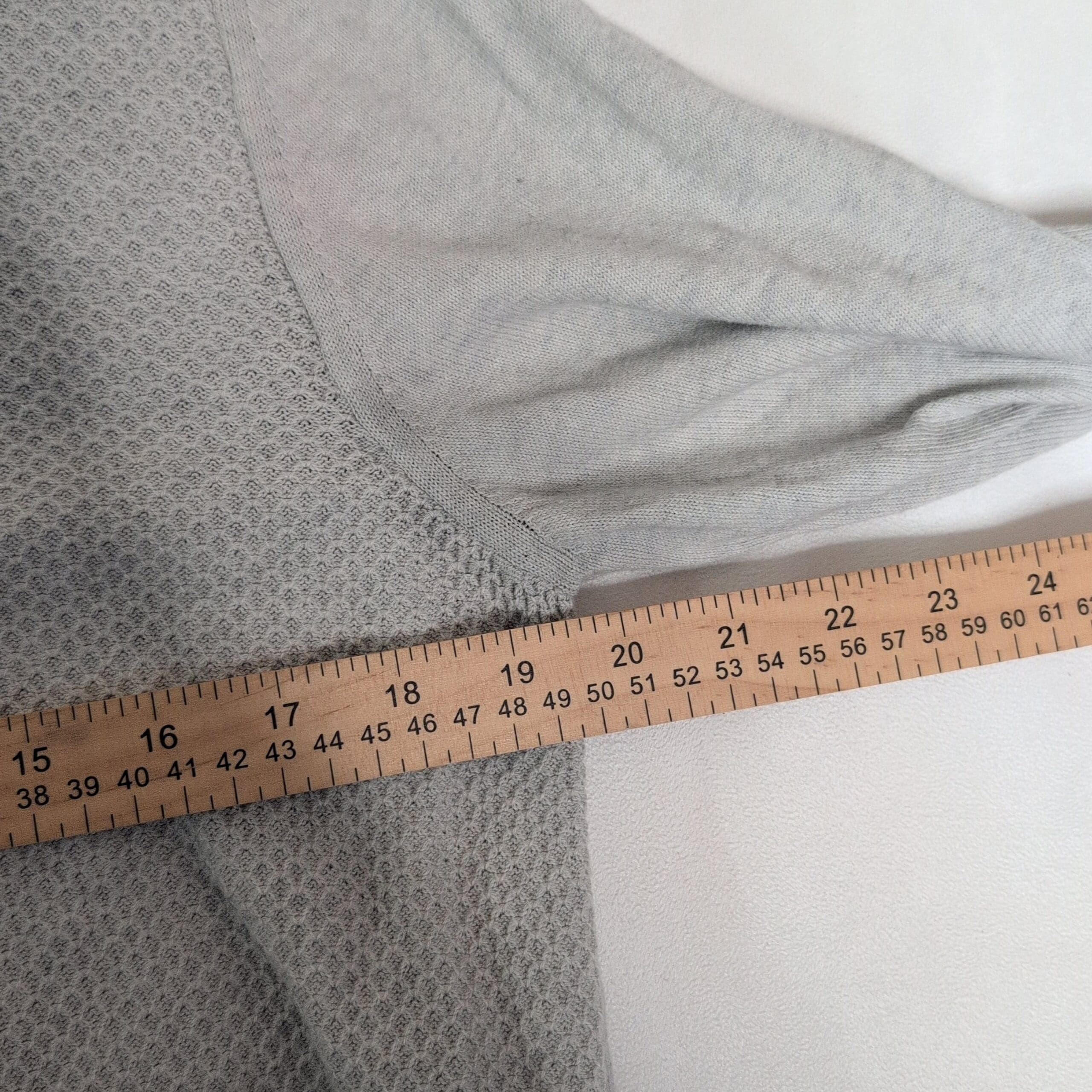 Condition: Gently used. Free of major rips or tears. Shows light discoloration near the upper chest and minor pilling from normal wear — please review photos for details.