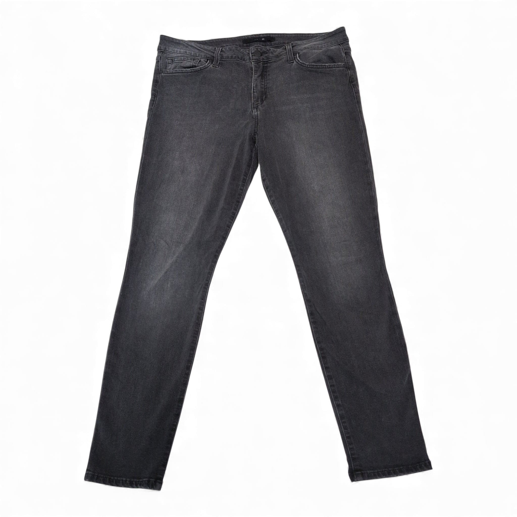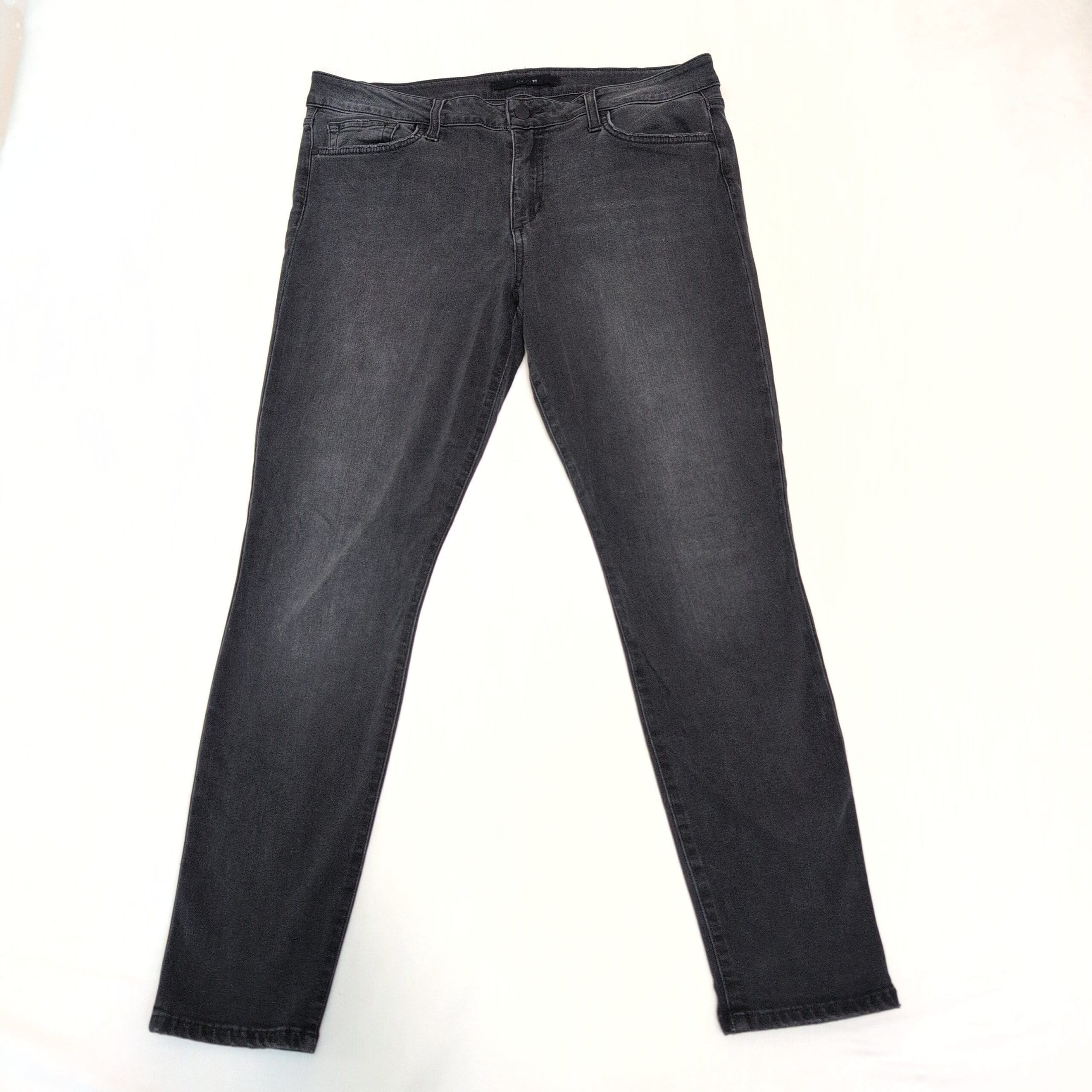 Joe’s Jeans women’s plus skinny jeans in a versatile washed black. Size 32 (Plus). Slim, tapered silhouette offers a flattering fit through the hips and legs. Classic five-pocket styling and belt loops for everyday wear. Pre-owned — gently worn with light, even fading and no visible holes or stains. Please review photos for condition and details.