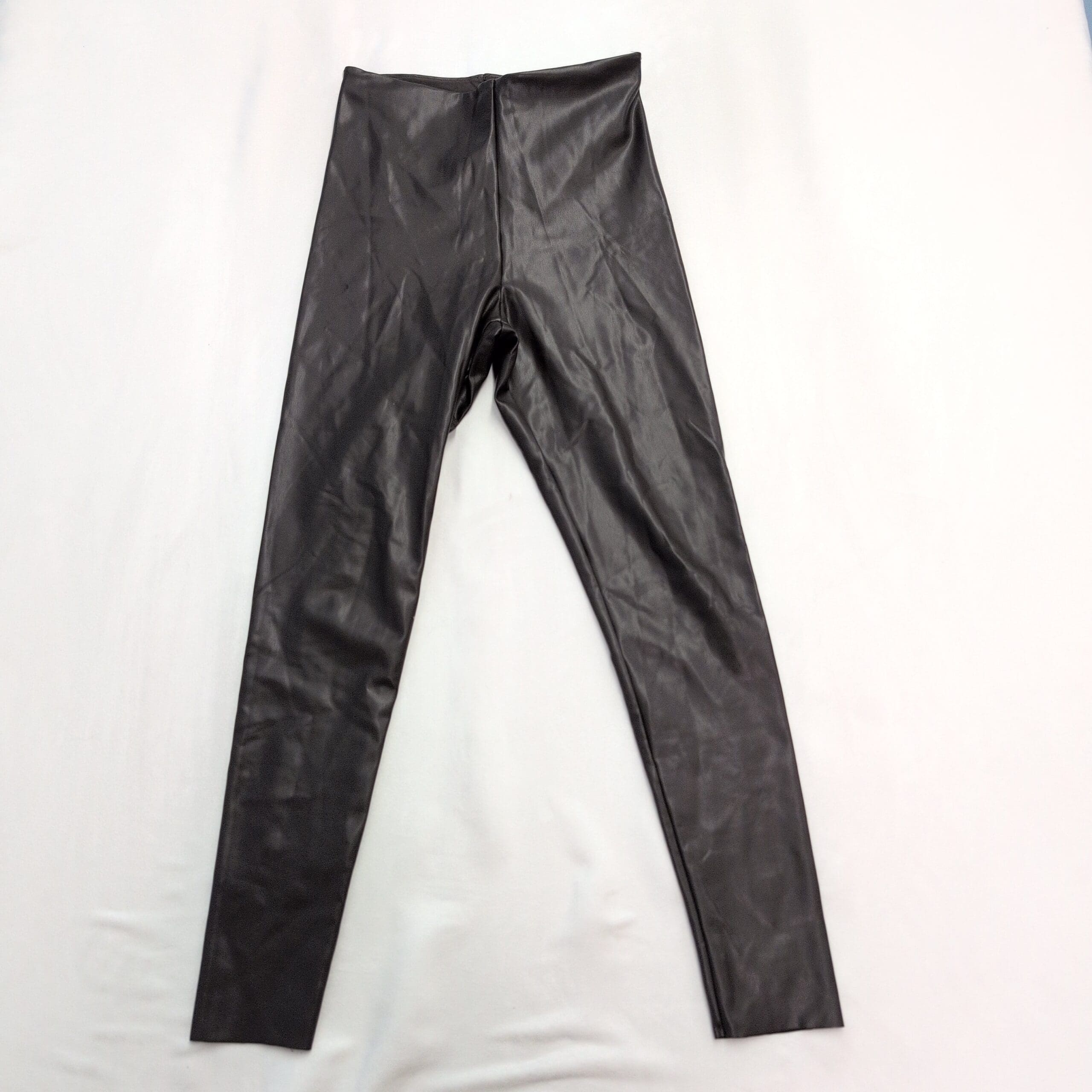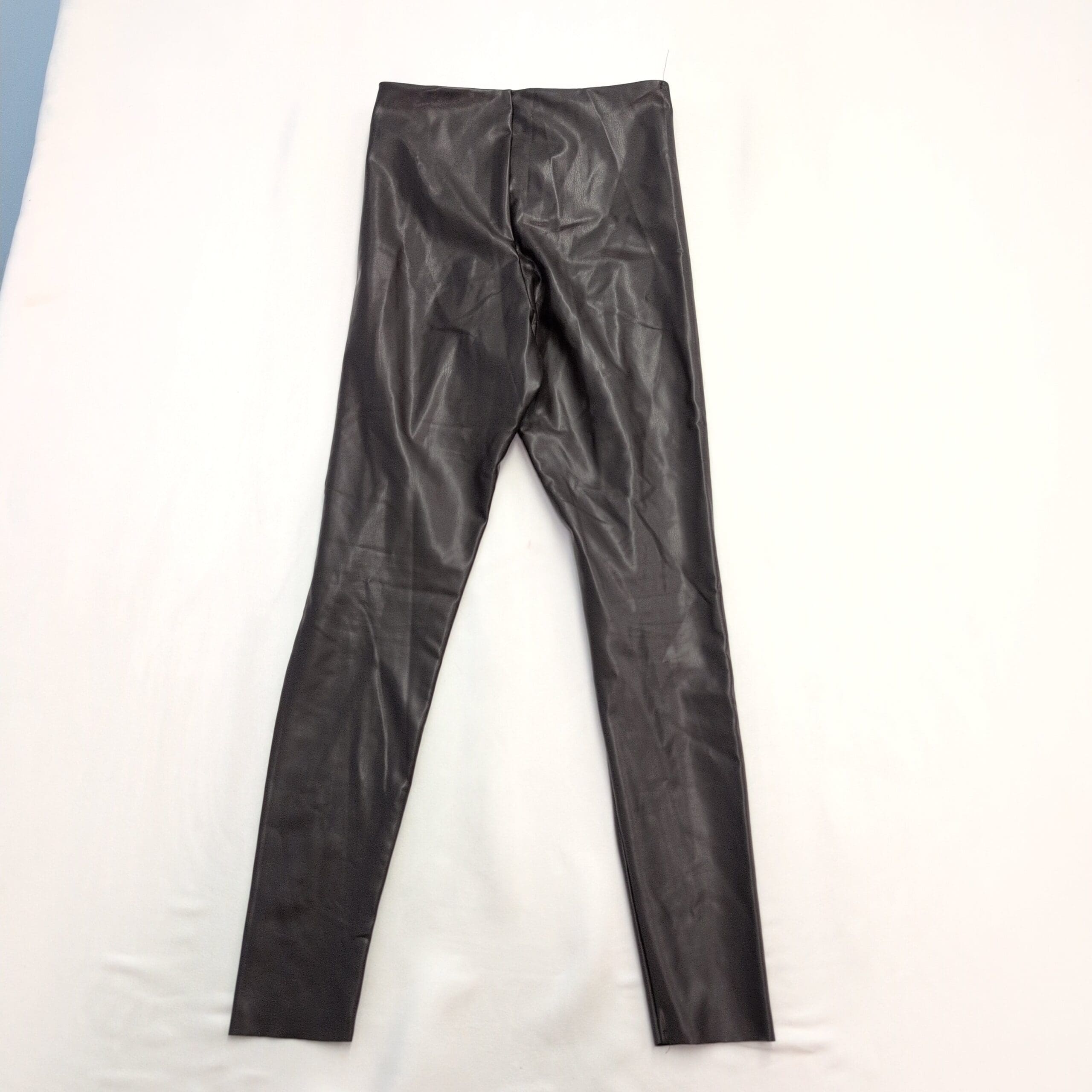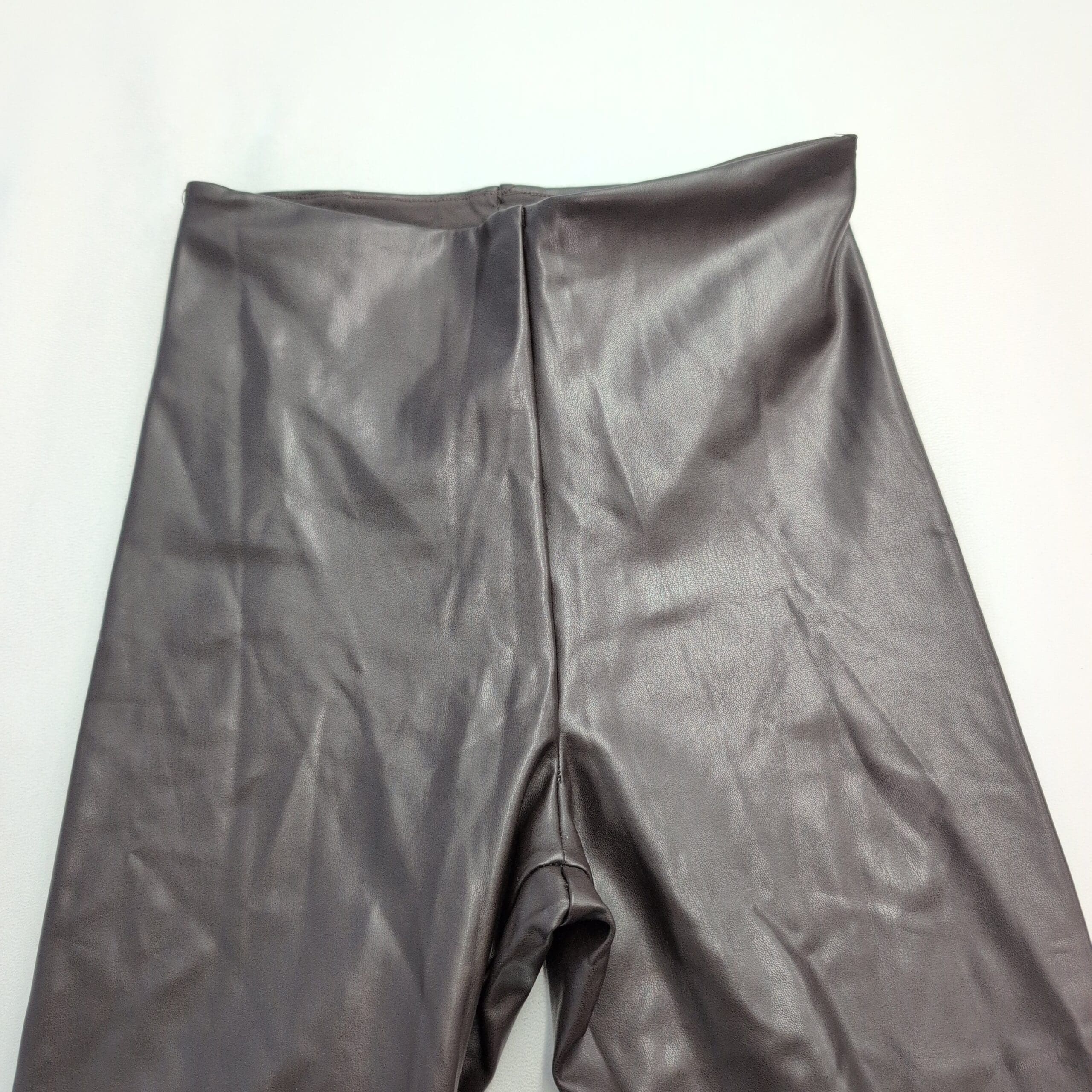 Joie women’s high-rise faux leather leggings in brown, size M. Sleek coated finish with a slim, tapered leg and a high-rise waistband for a streamlined, flattering silhouette. Stretch-backed fabric offers comfortable give for everyday wear and easy styling from day to night.