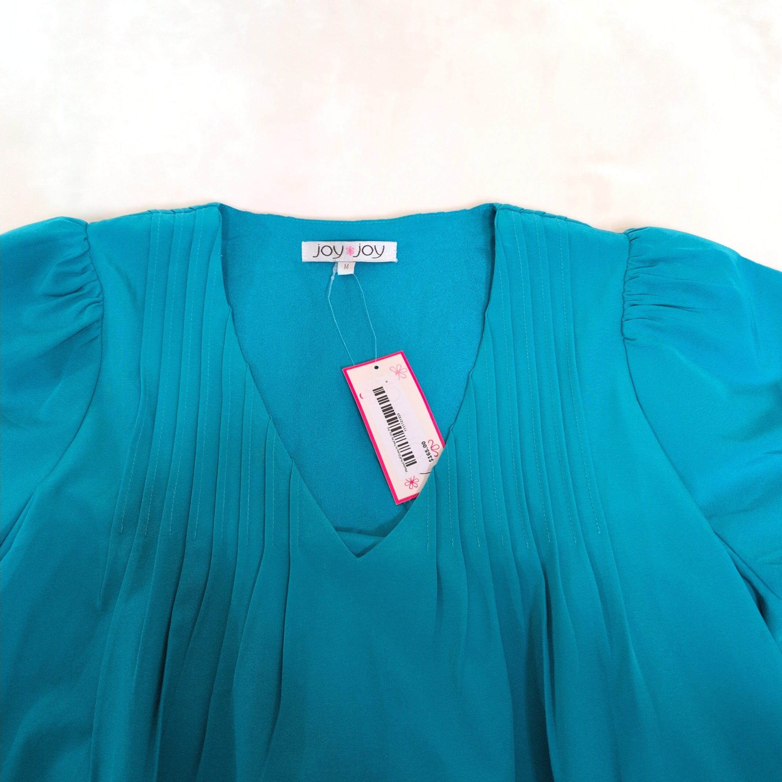 Joy Joy Blue V-Neck Pintuck Dress – Size M, New with Tags