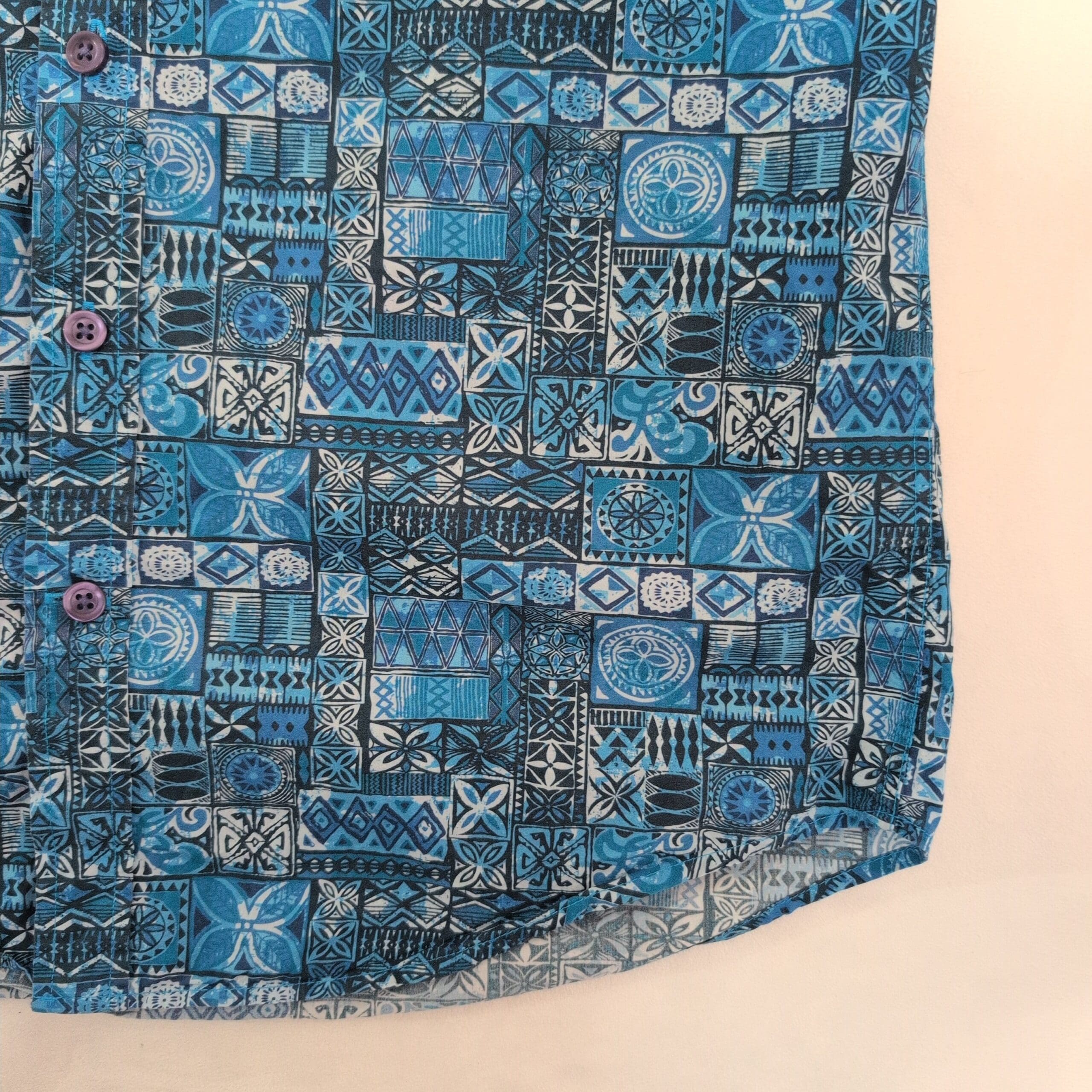 #MensShirt #CasualShirt #BlueButtonDown #IslandPrint