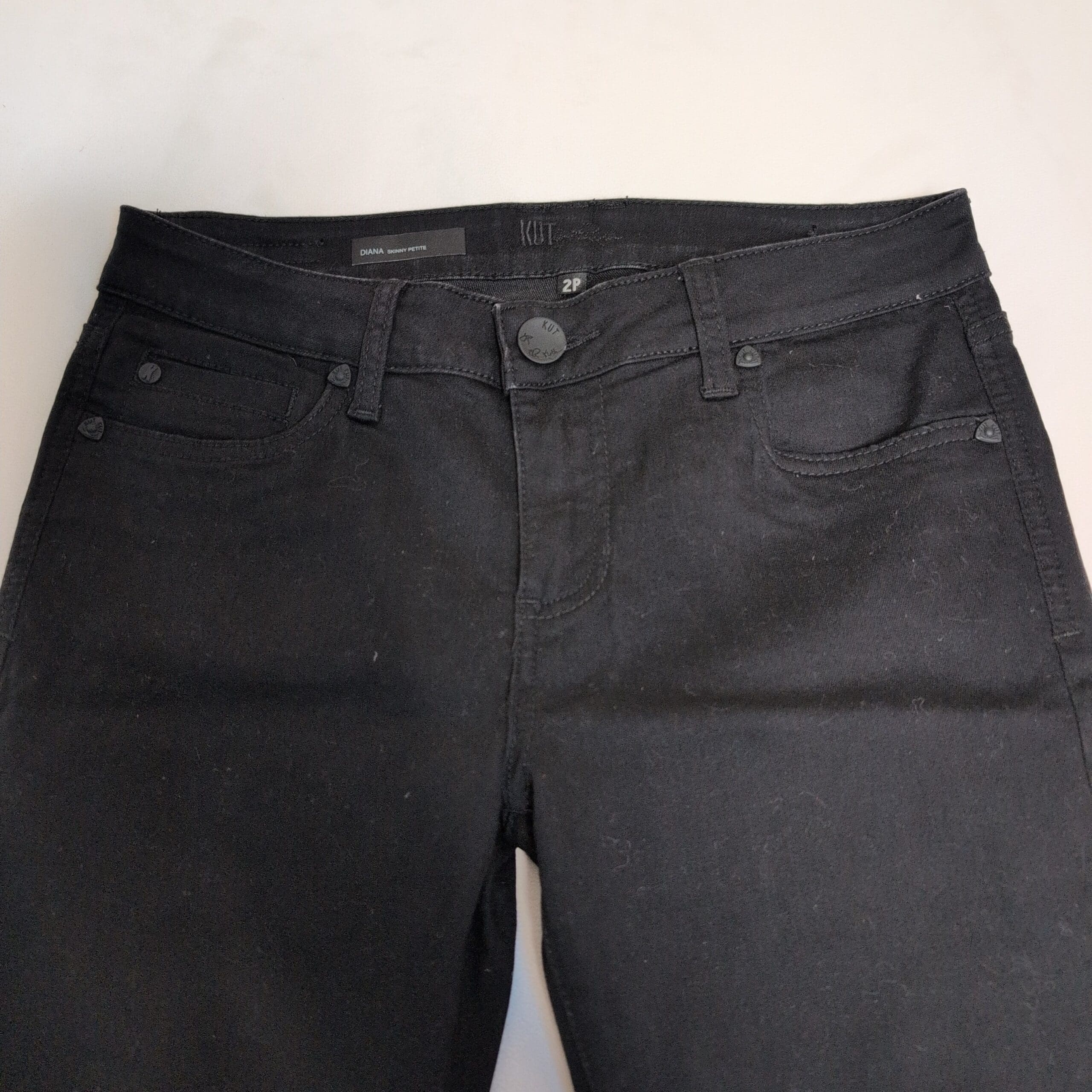 Kut From The Kloth women’s black skinny jeans in size 2P (petite). Classic five-pocket silhouette with a flattering skinny leg—versatile for day or night.