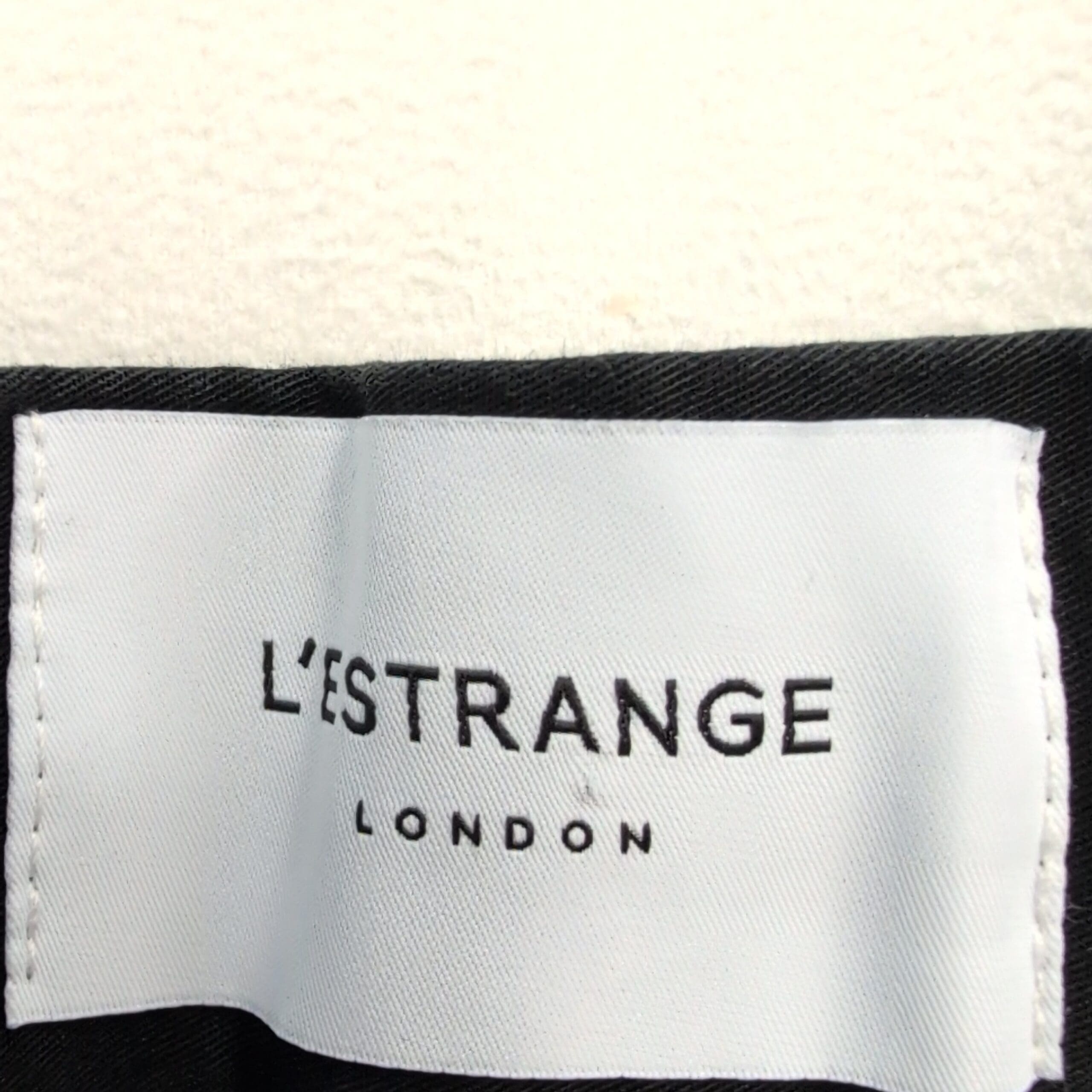 Limited edition L’estrange London women’s black tailored pants in size L. Clean, straight-leg silhouette with a comfortable waistband and classic tailored look — versatile for work or evening wear. Piece number 103 of 150; some minor fading at the waistband button.