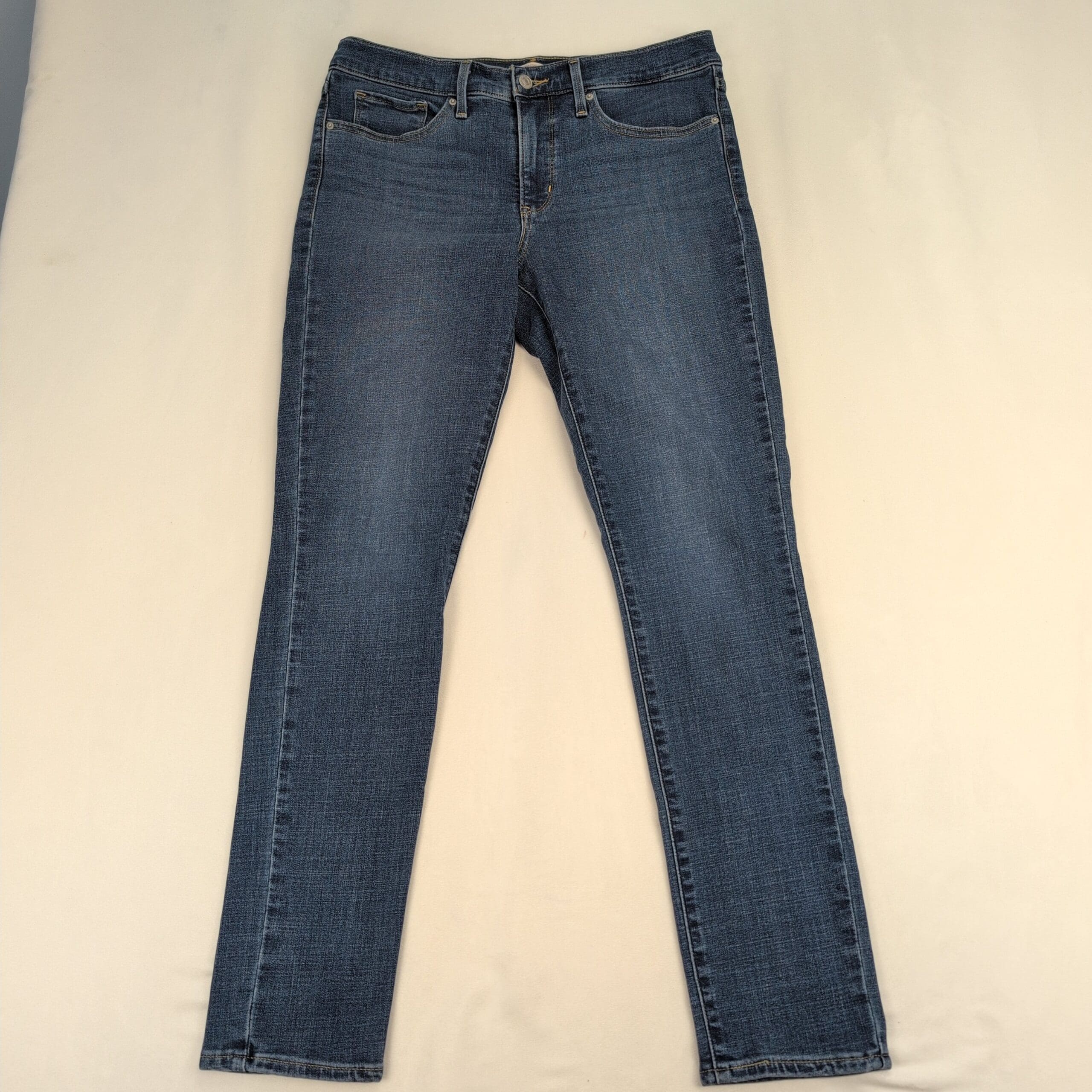 Levi’s 311 Shaping Skinny women’s jeans in a medium blue wash. Size 30 (standard). Figure-flattering shaping skinny silhouette with classic five-pocket styling and zip fly. Excellent used condition — free of major rips, tears, stains, or flaws; typical light wear from normal use may be present. Versatile everyday denim that pairs well with tees, blouses, and boots.