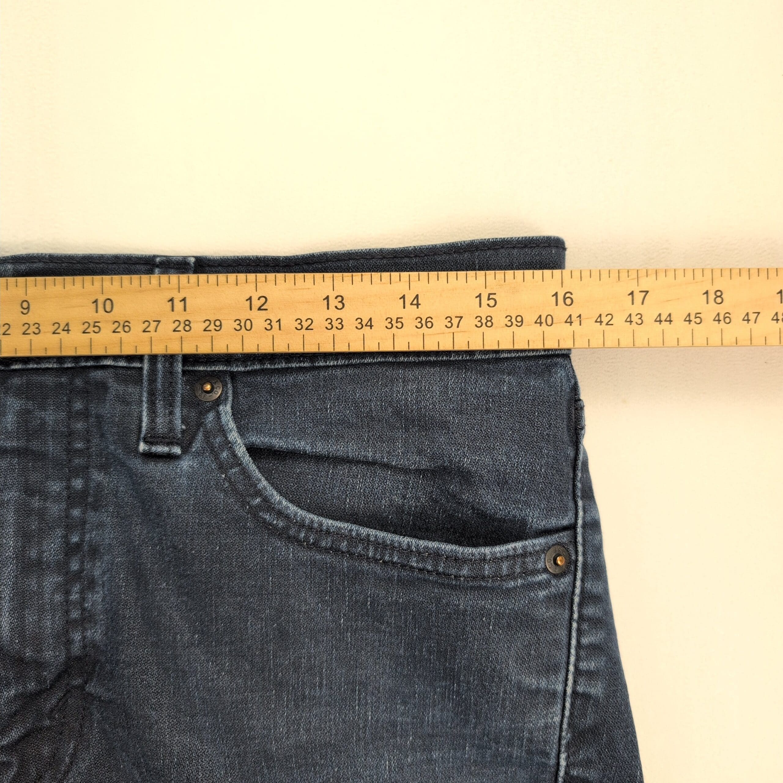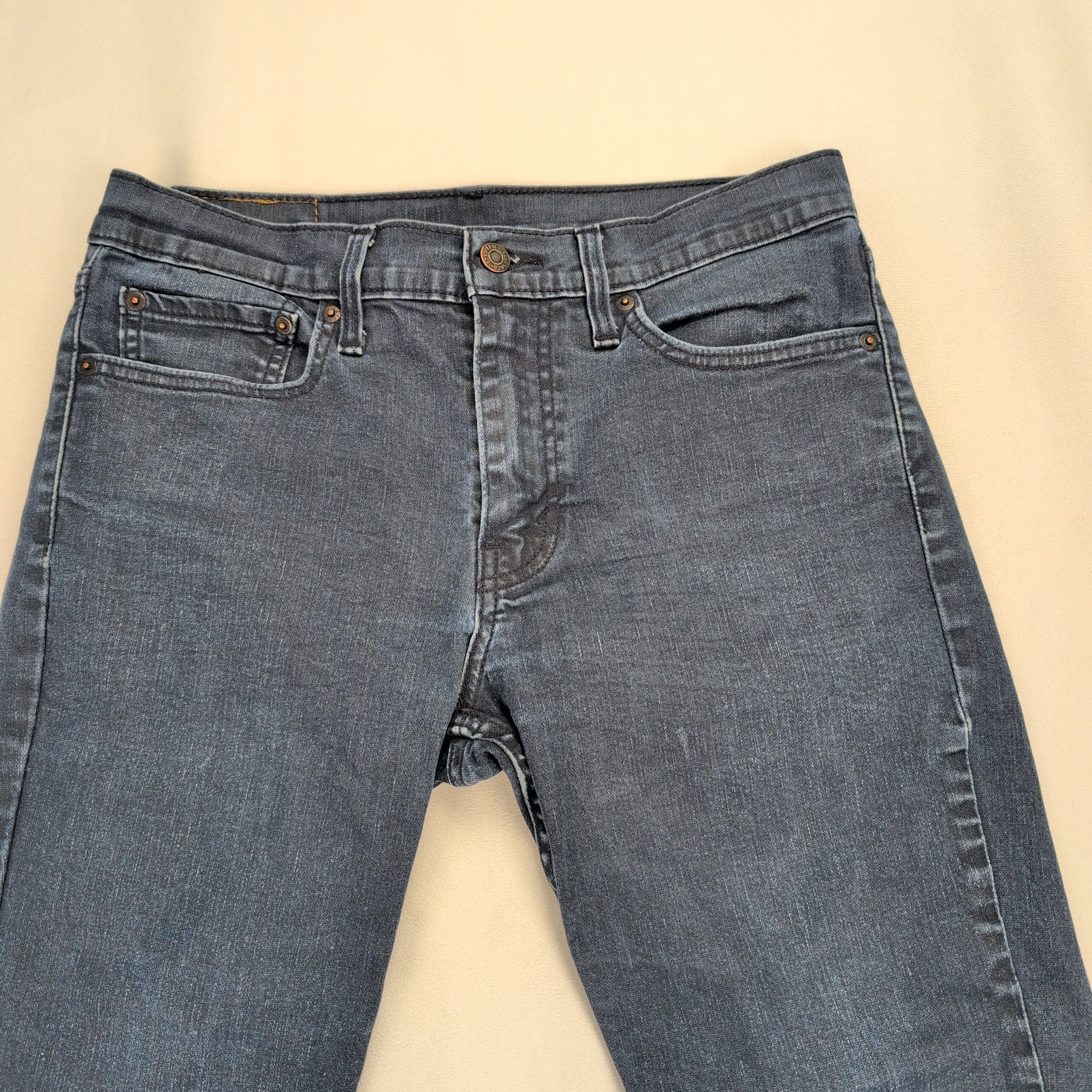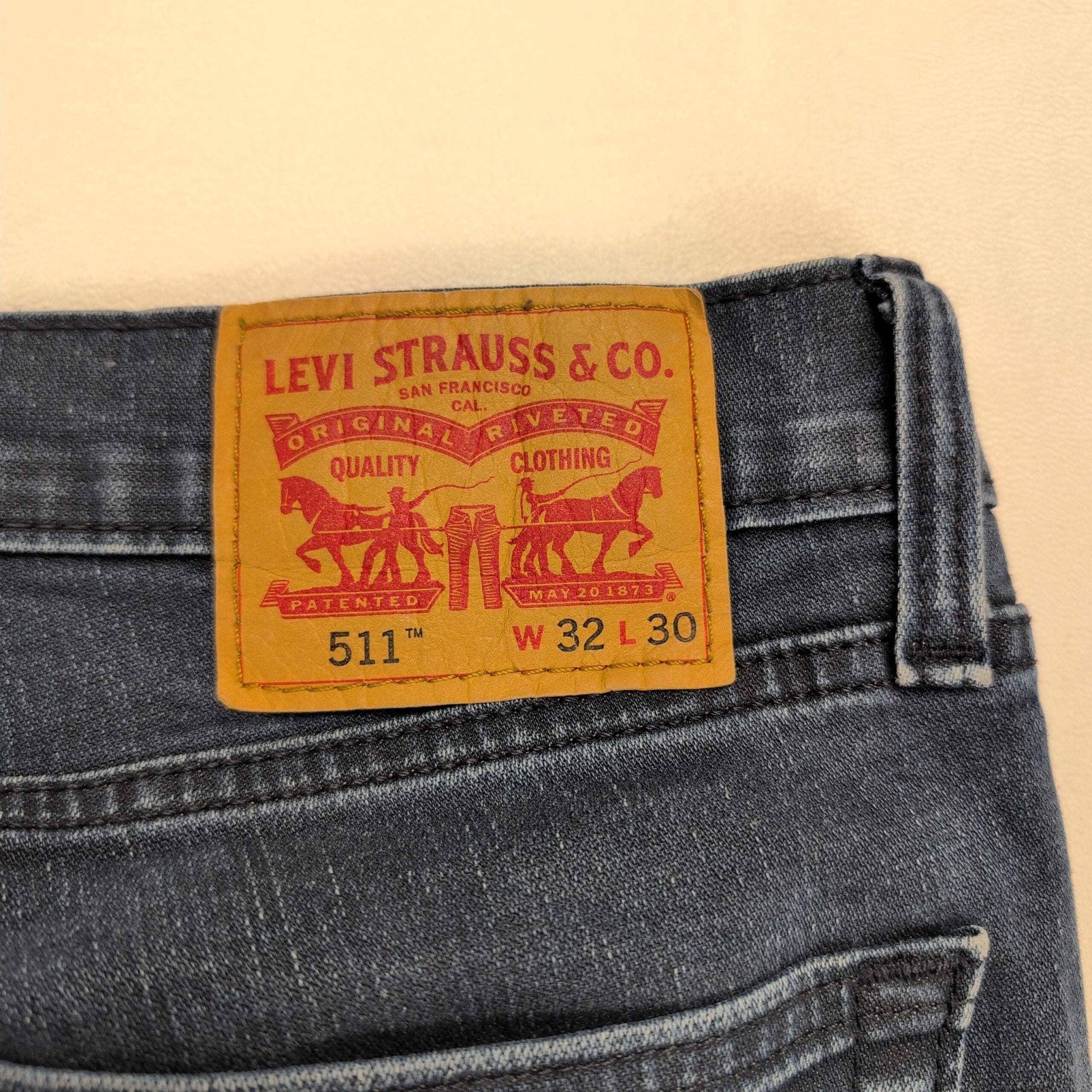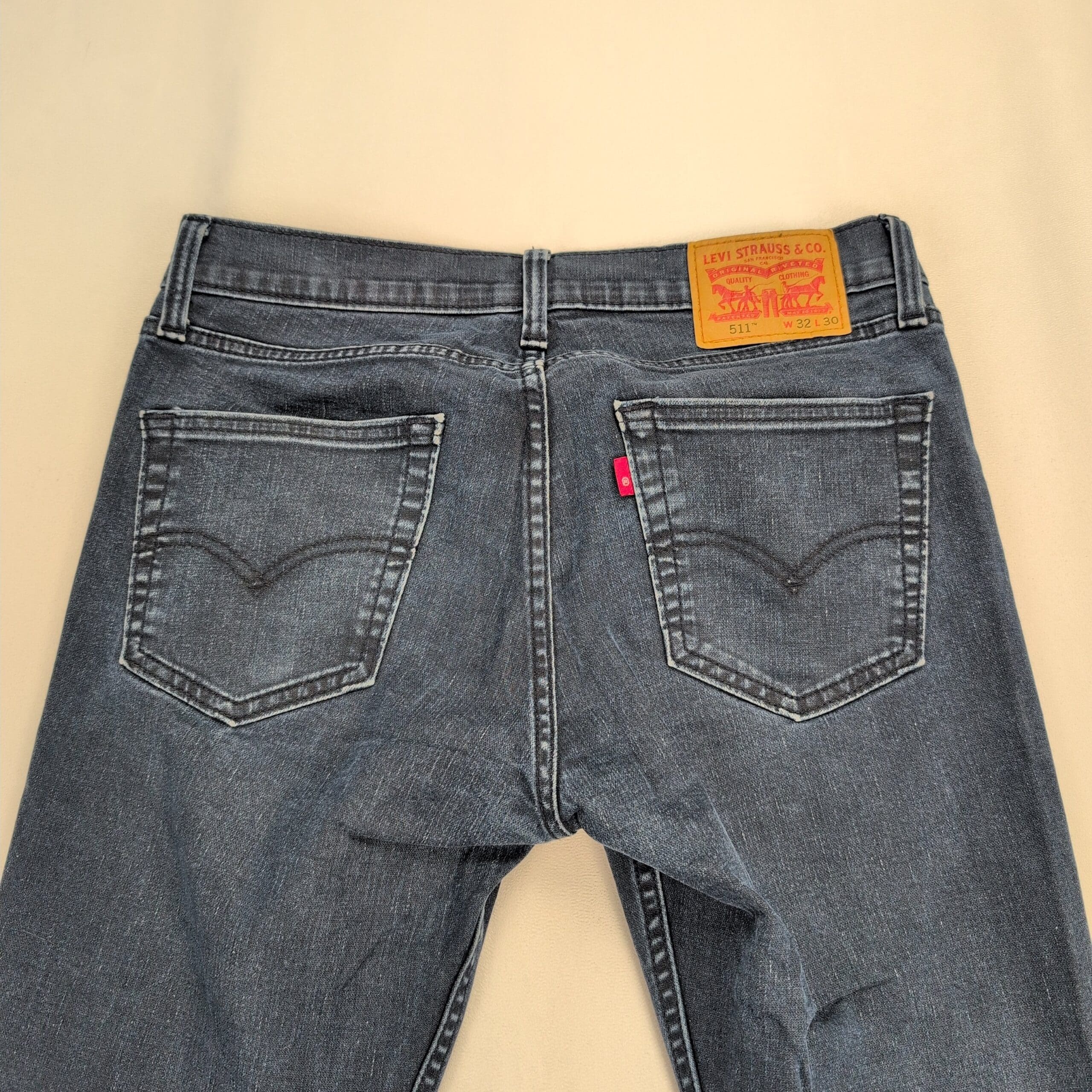 Levi’s 511 Slim Straight men’s jeans in a dark washed indigo-gray. Size: Waist 32 (men). Classic slim-straight silhouette with a clean, tailored look. Excellent used condition — free of major rips, tears, or stains. Note: minor fading on the right knee (visible in photos). Timeless five-pocket styling and straight hem; great for everyday wear.