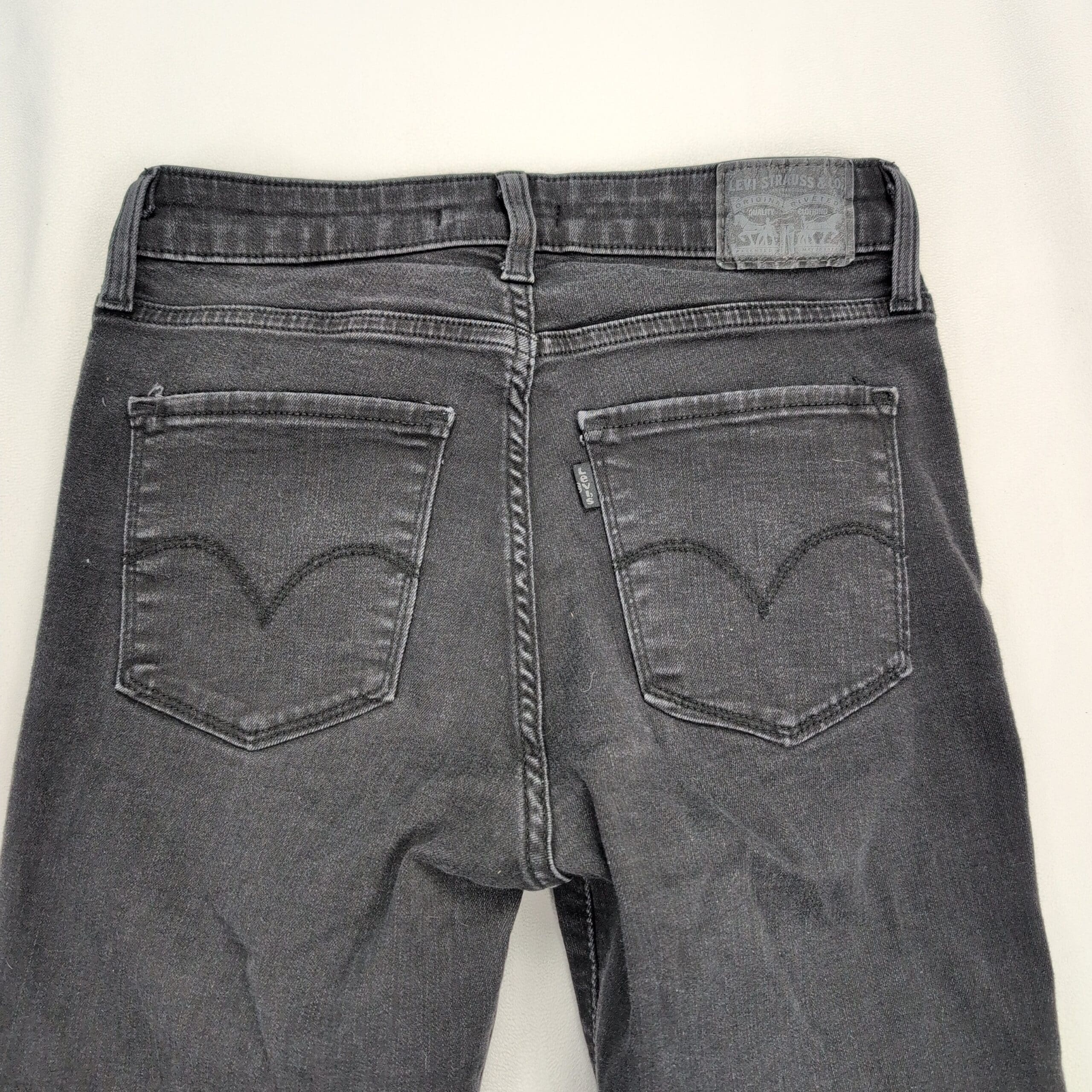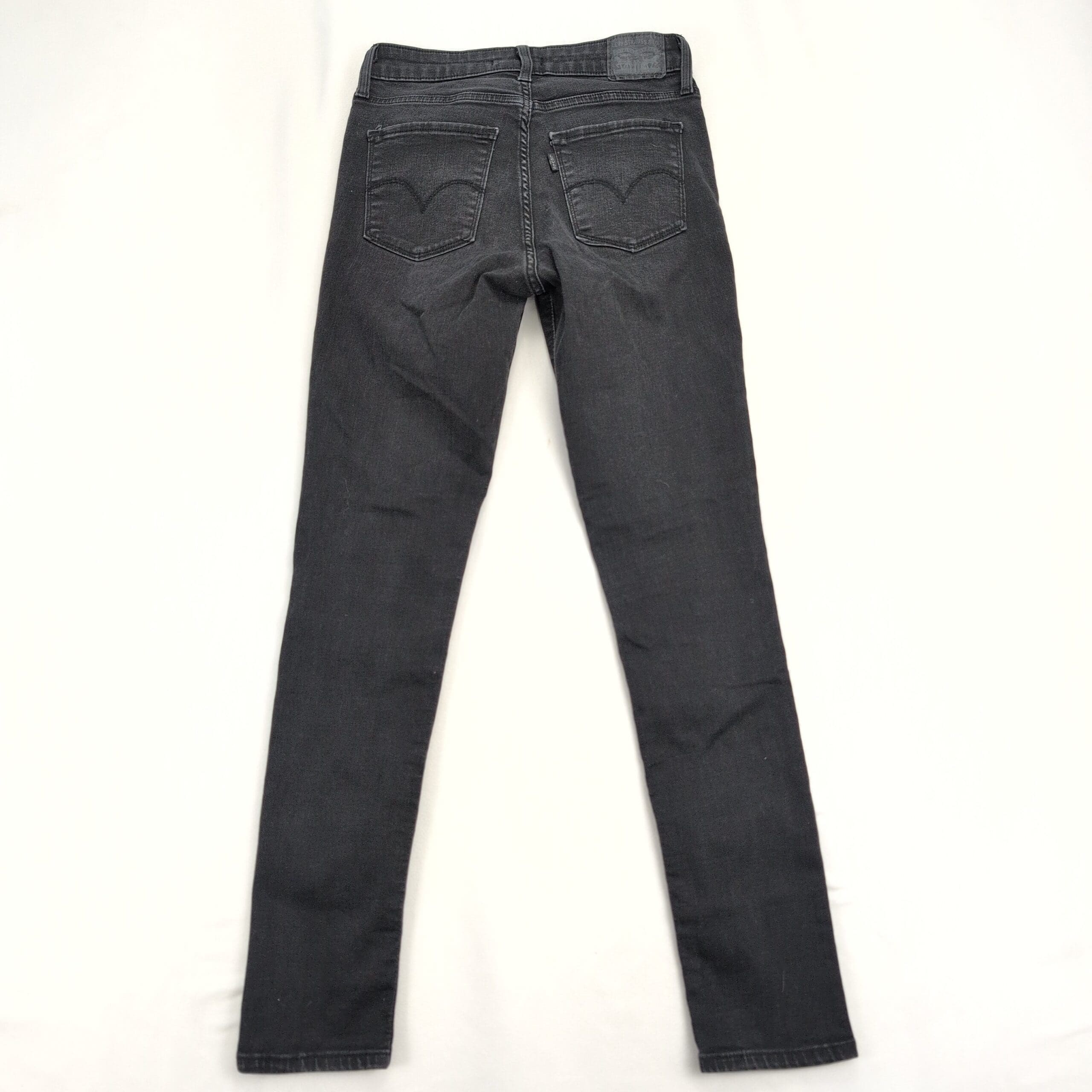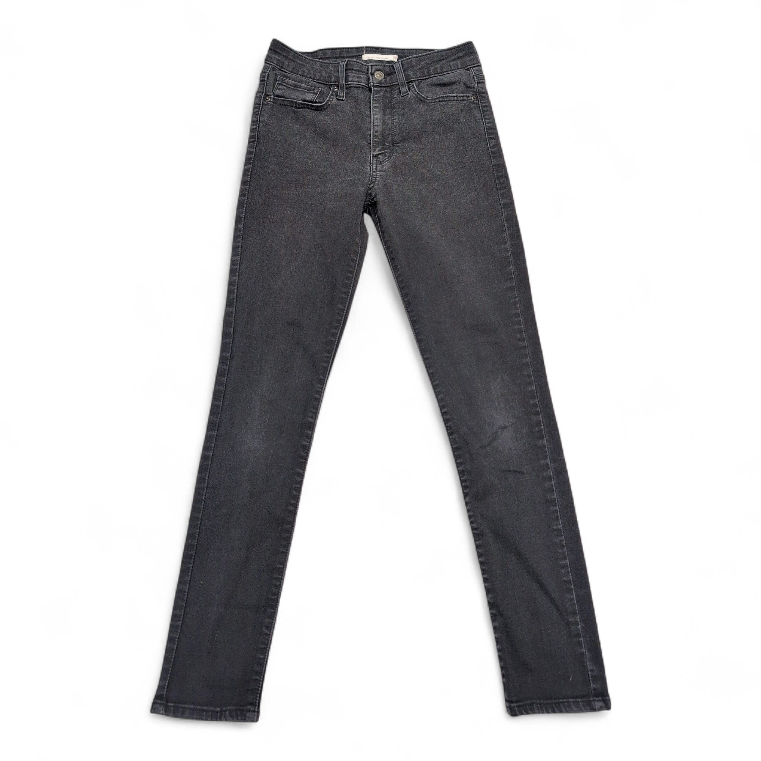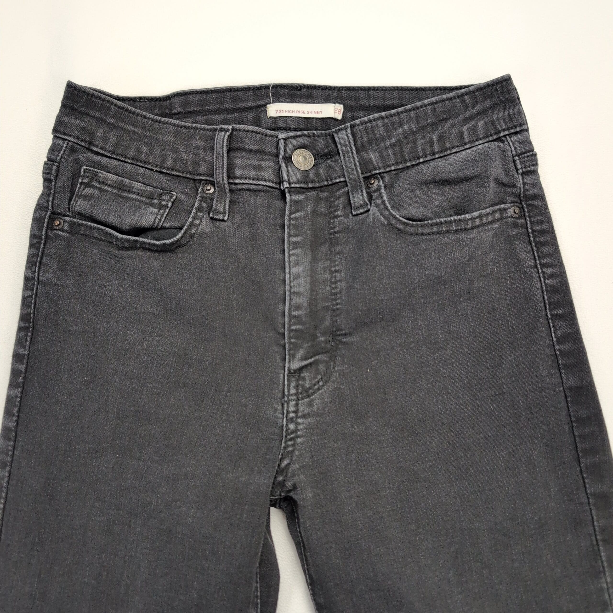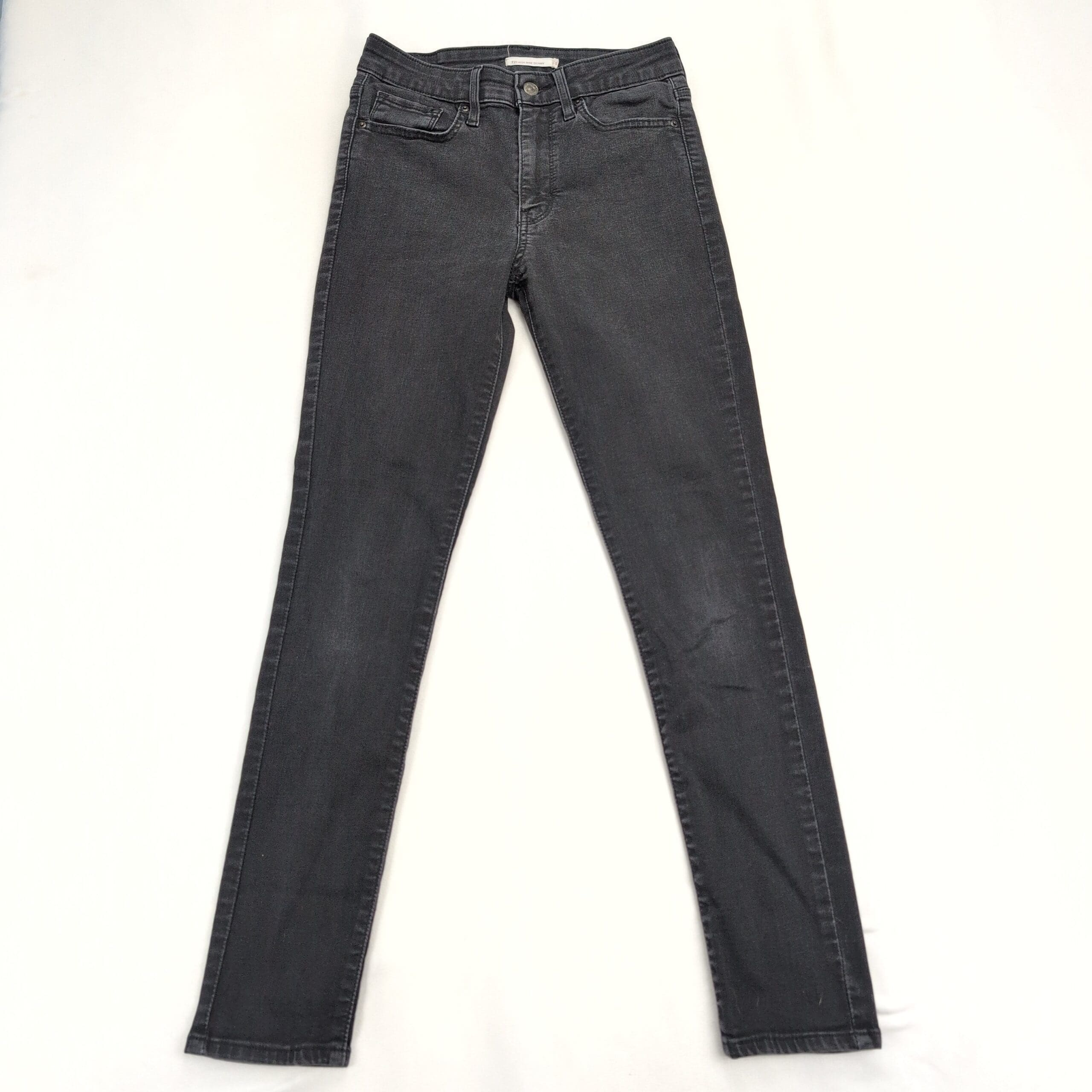 Levi’s 721 high-rise skinny jeans in women’s size 28, washed black/charcoal. Classic high-rise silhouette with a slim, skinny leg and five-pocket styling. Stretch denim offers comfortable, form-fitting wear — great for everyday or dressed-up looks. Style name: 721 high-rise skinny.