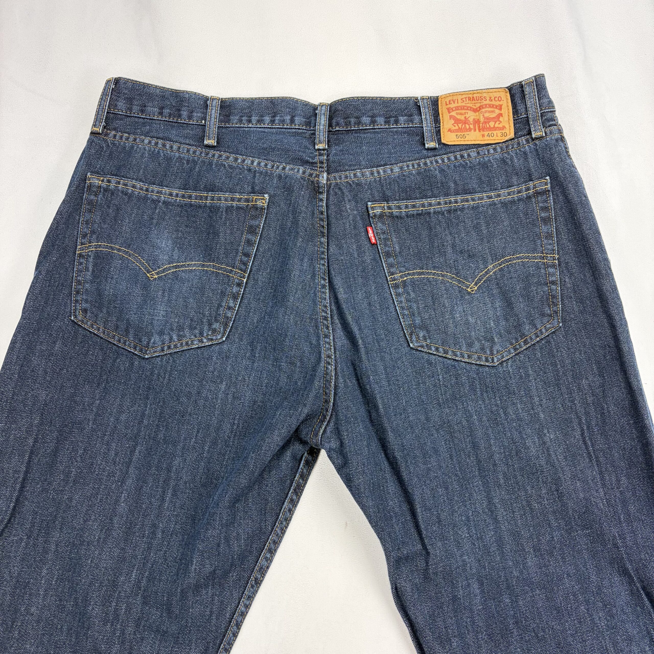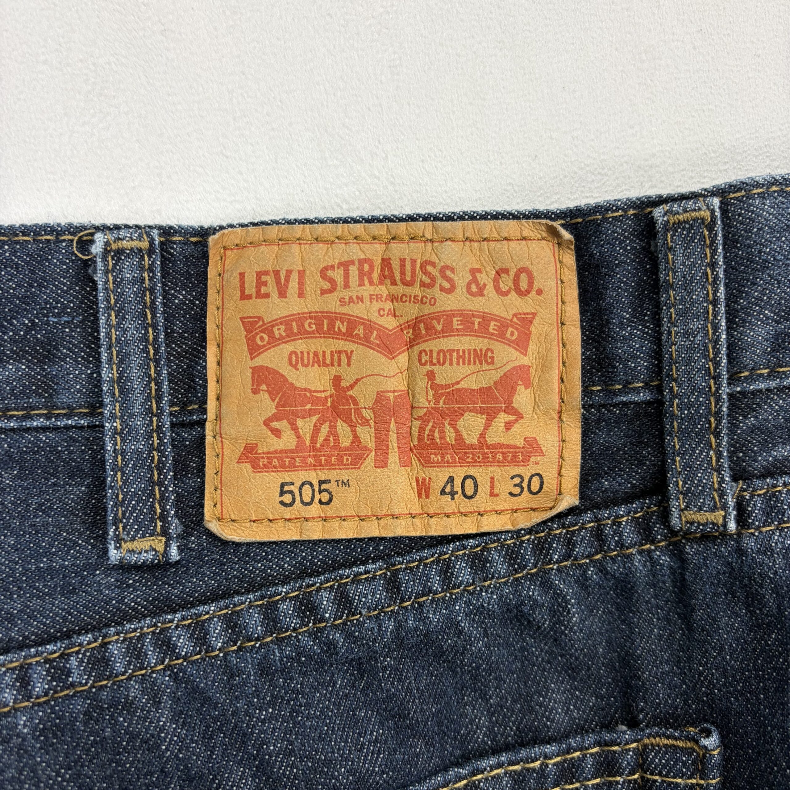Levi’s men’s straight fit jeans in a dark indigo wash. Classic five-pocket styling with belt loops and a straight leg silhouette for a timeless look. Tagged size 40×30 (Waist 40, Inseam 30). Excellent used condition — free of major rips, tears, or stains; may show light, normal wear consistent with previous use. Versatile everyday denim that pairs well with tees or button-downs.