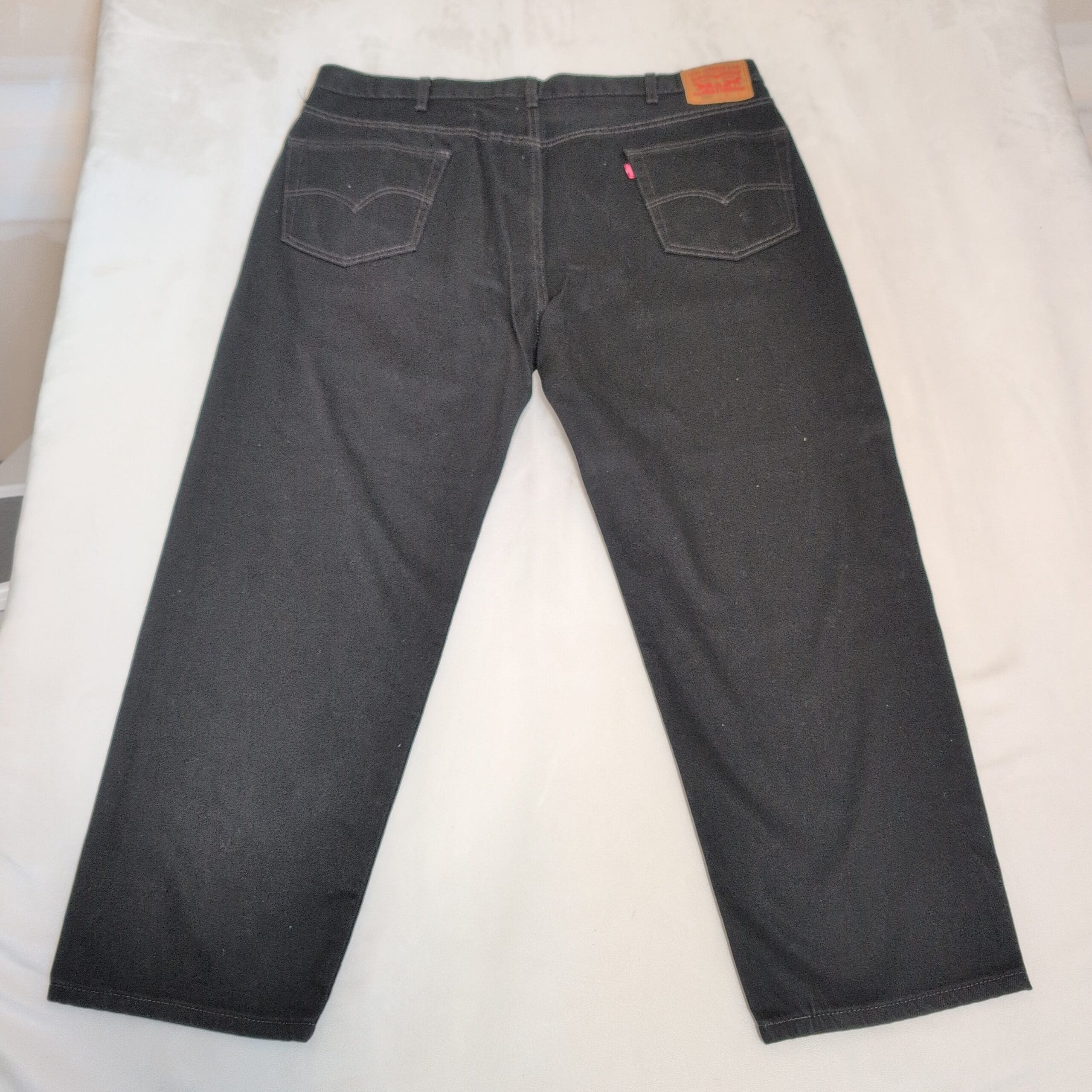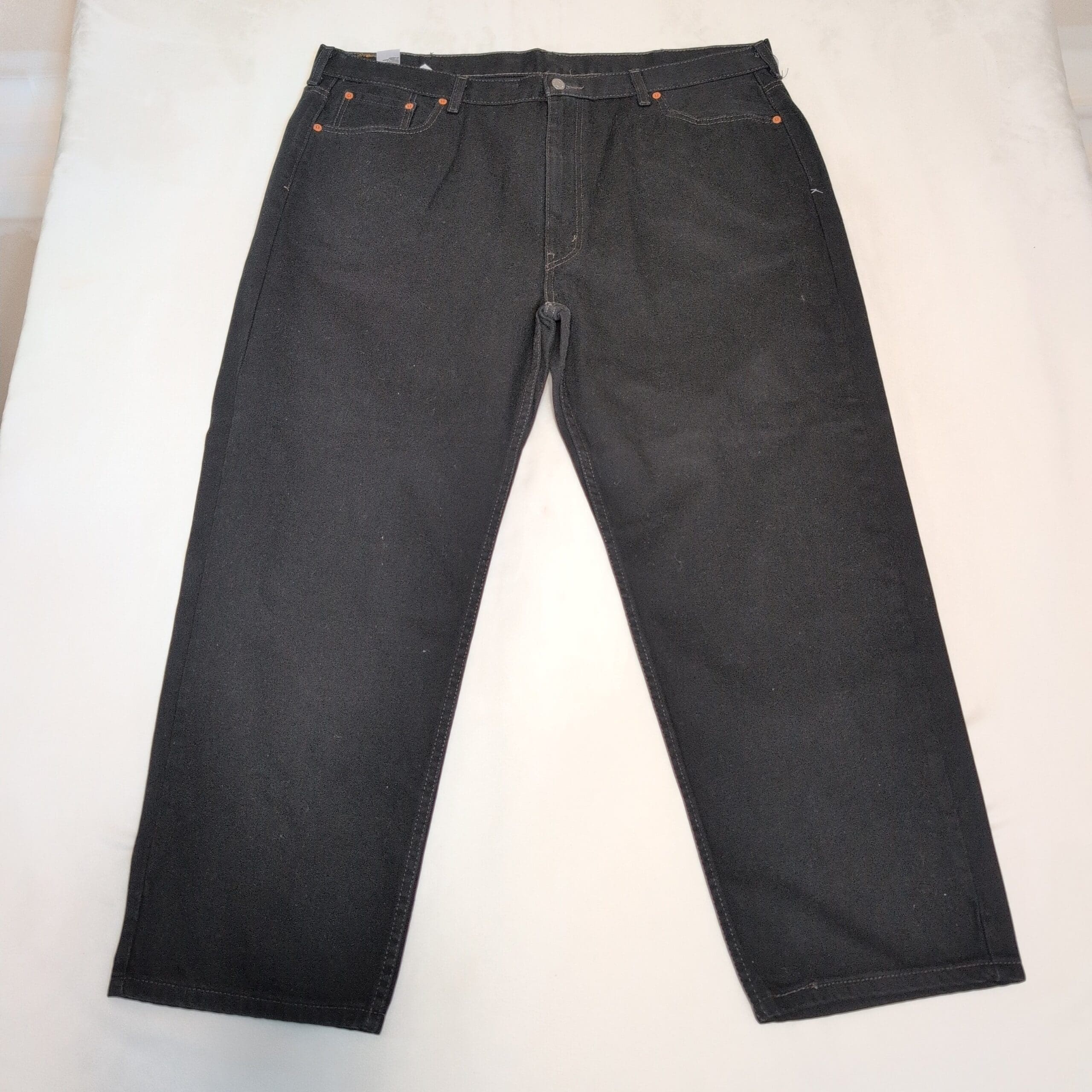 Levi’s men’s relaxed fit jeans in black — Waist 46 (Big & Tall). Classic relaxed leg with five-pocket styling, belt loops, and copper rivet accents. Durable denim ideal for everyday wear, work, or casual outfits. Pre-owned and gently used with light, normal wear consistent with prior use. Inseam not measured; please refer to photos and ask any sizing questions before purchase.