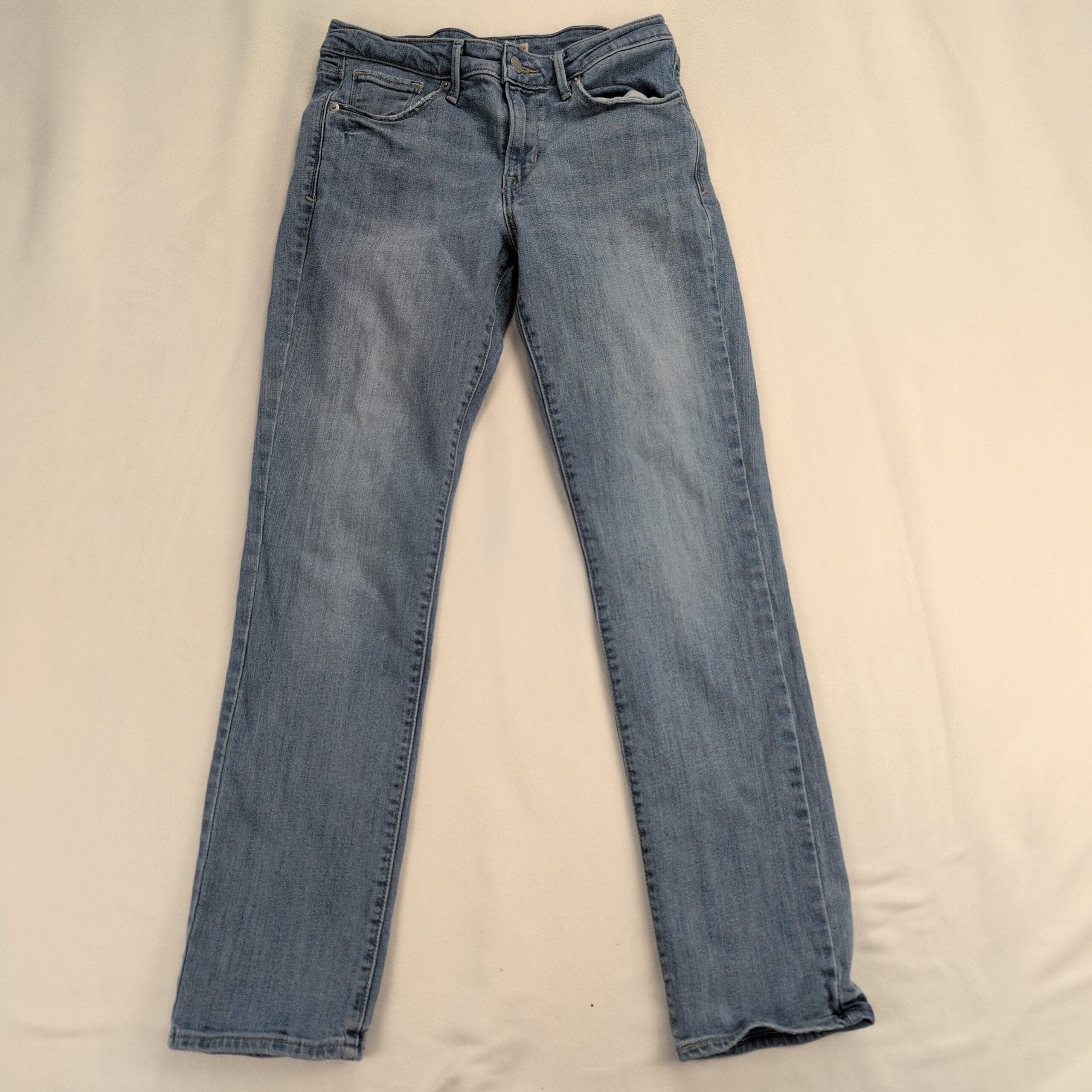 Levi’s women’s mid-rise skinny jeans — Size 28. Light blue wash with subtle fading for a casual, lived-in look. Slim skinny leg and mid-rise waist create a modern, flattering silhouette with classic five-pocket styling and durable denim construction.
