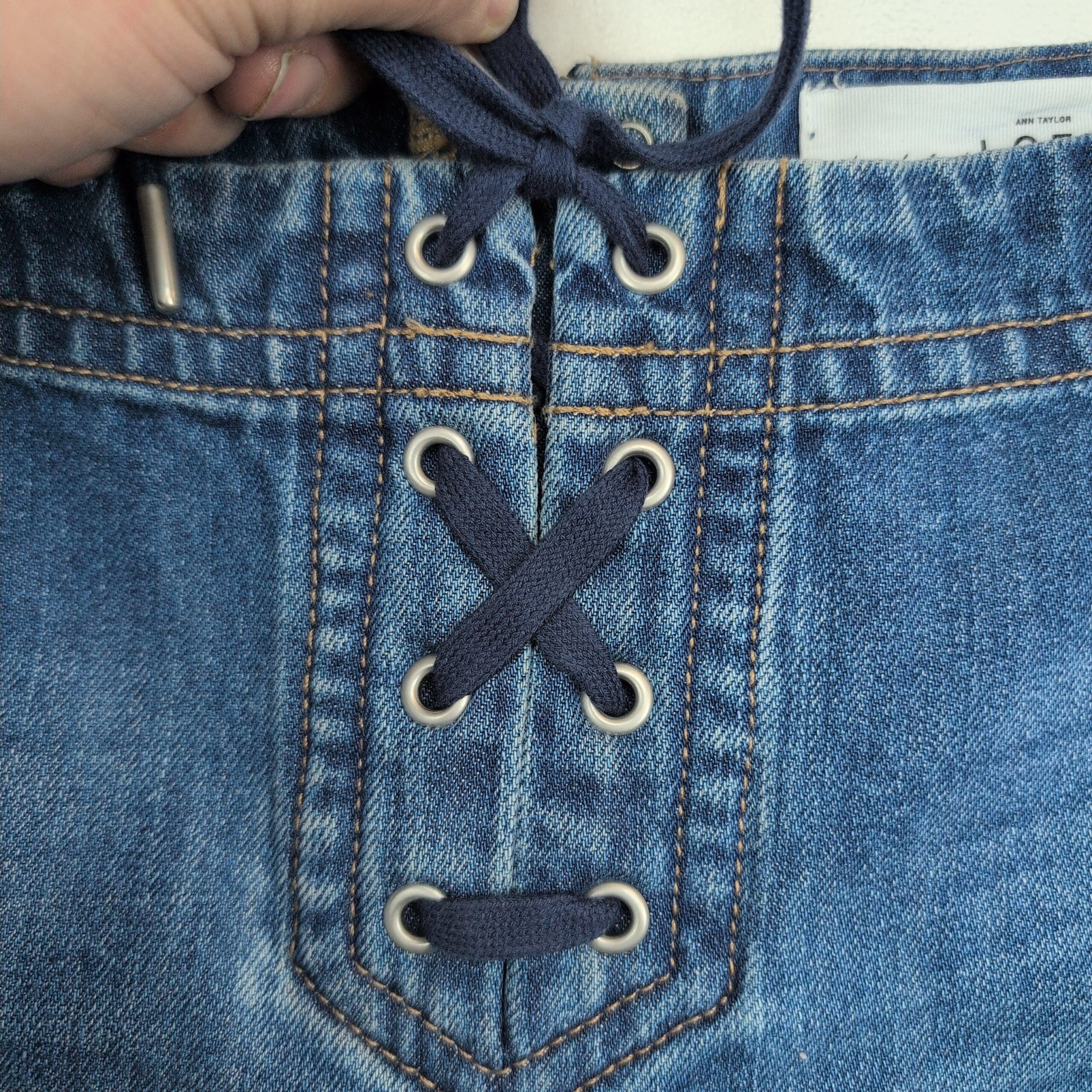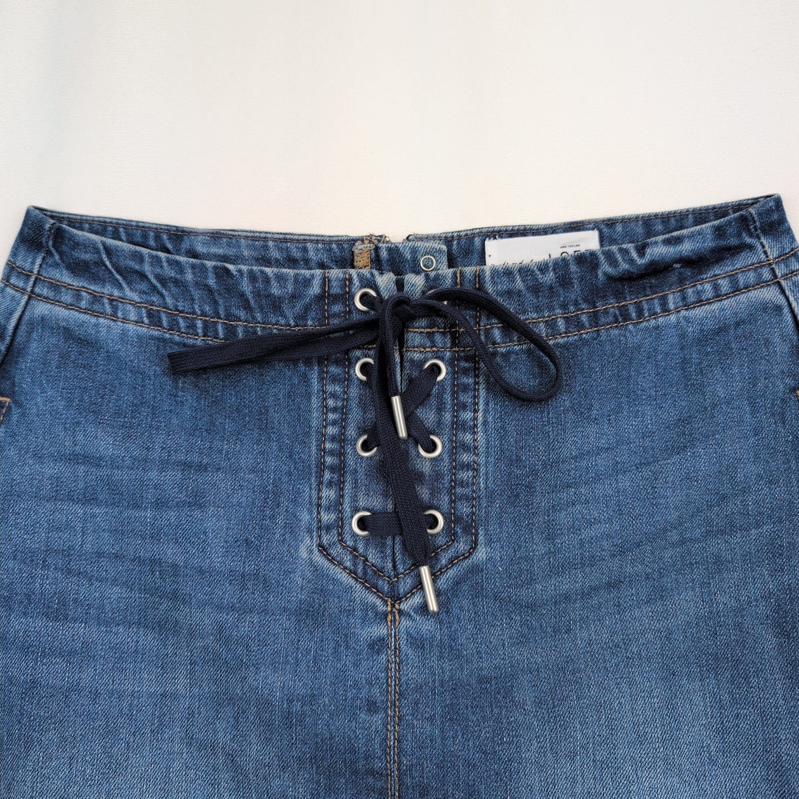 LOFT Lace-Up Denim Skirt Sz 2 A-Line Pockets