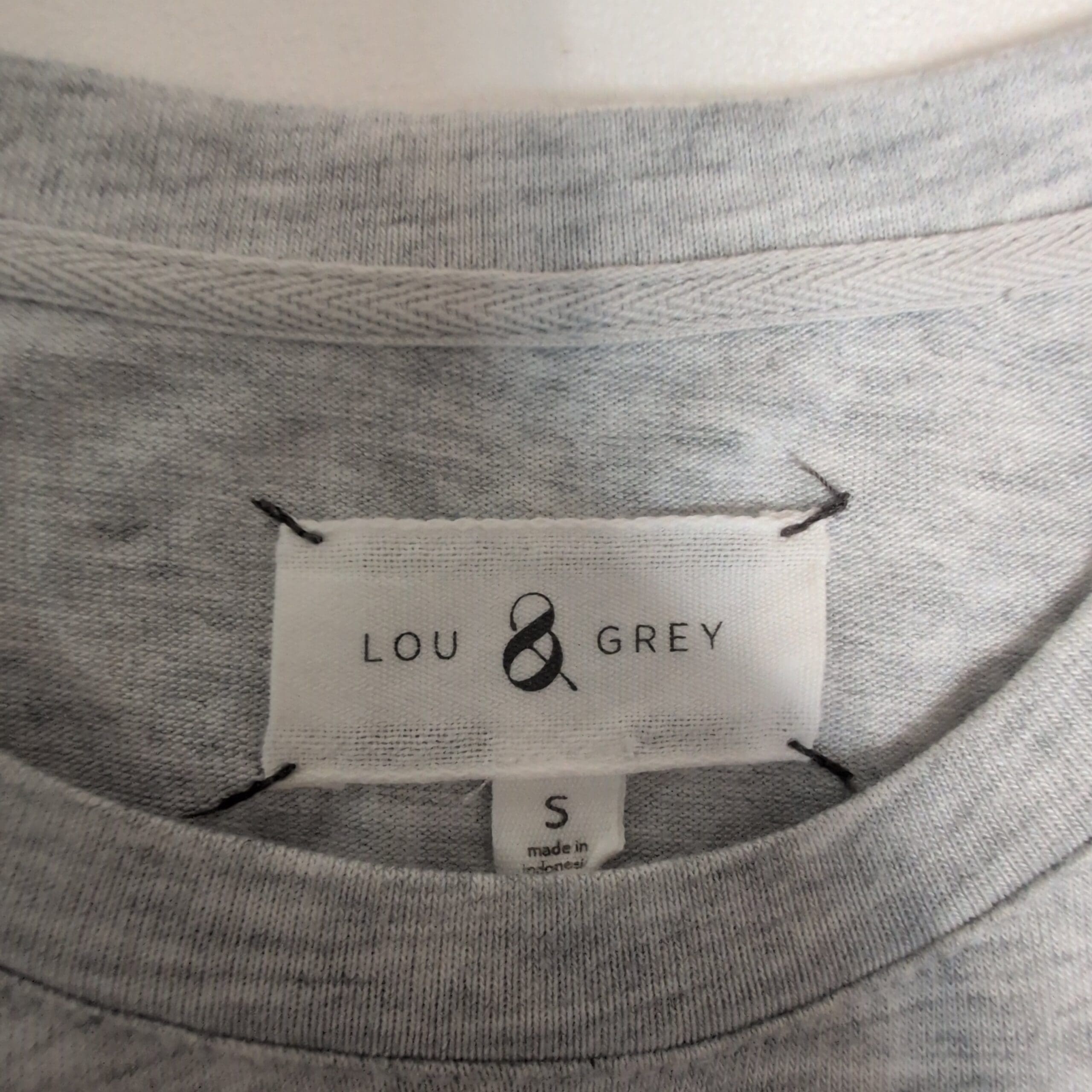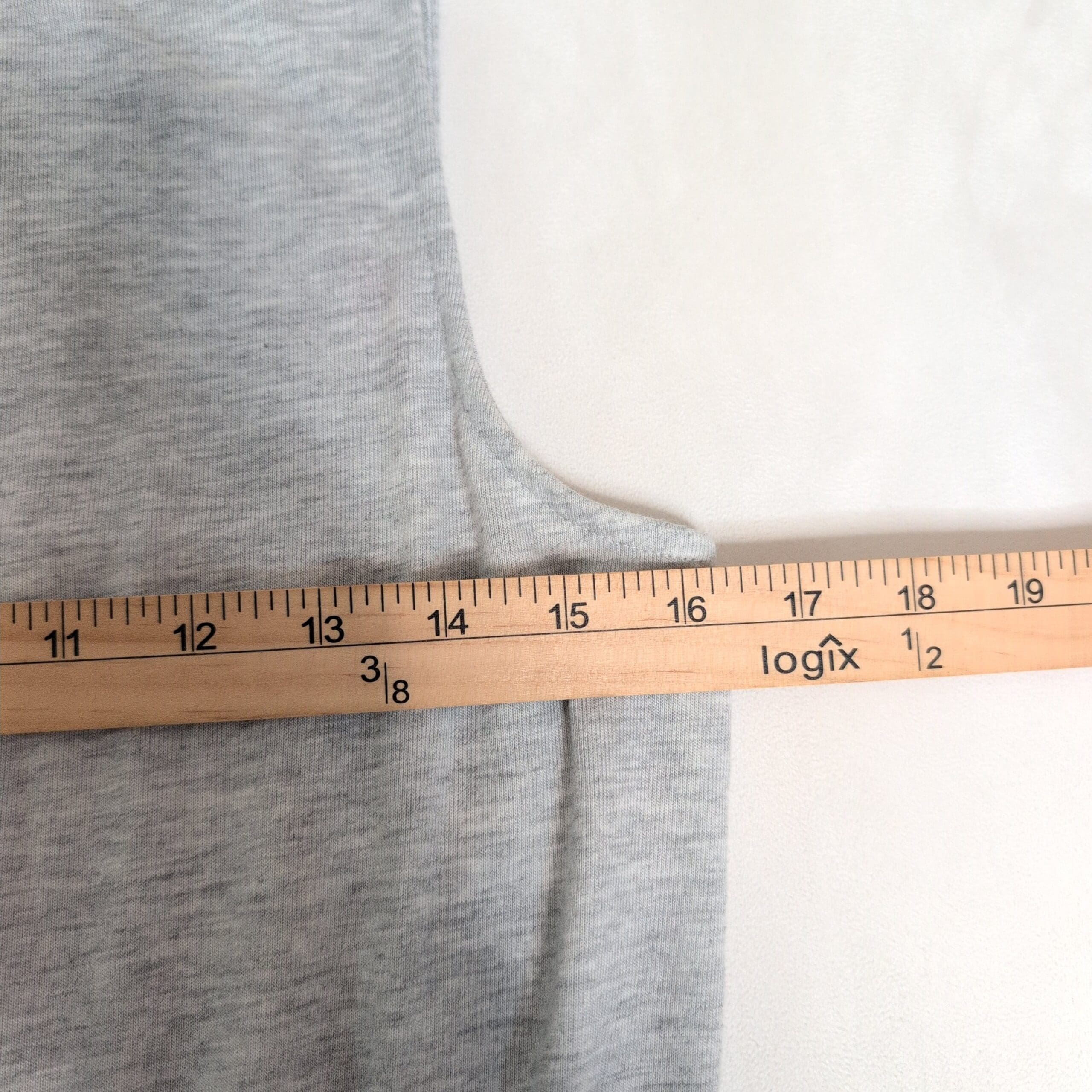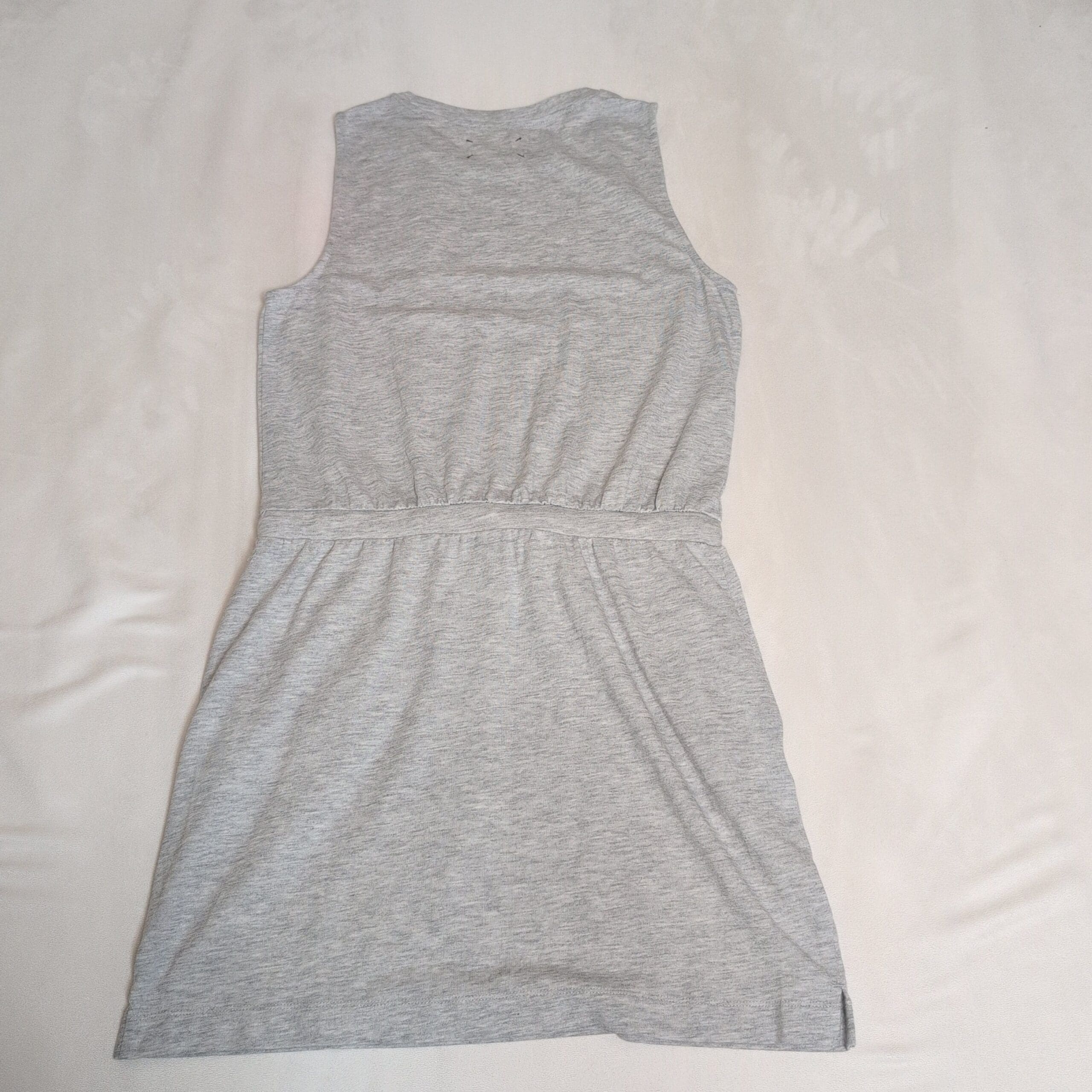 Relaxed sleeveless Lou & Grey dress in soft heather gray with a drawstring waist and side pockets for everyday comfort and easy styling. Casual jersey drape creates a lightly gathered waist for a flattering silhouette. Size: S (standard). Color: Gray. Great for errands, travel, or layering with a denim jacket or cardigan.