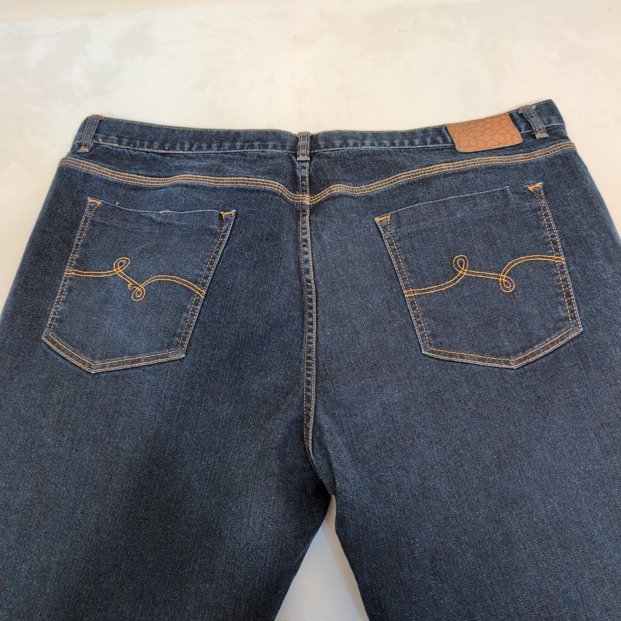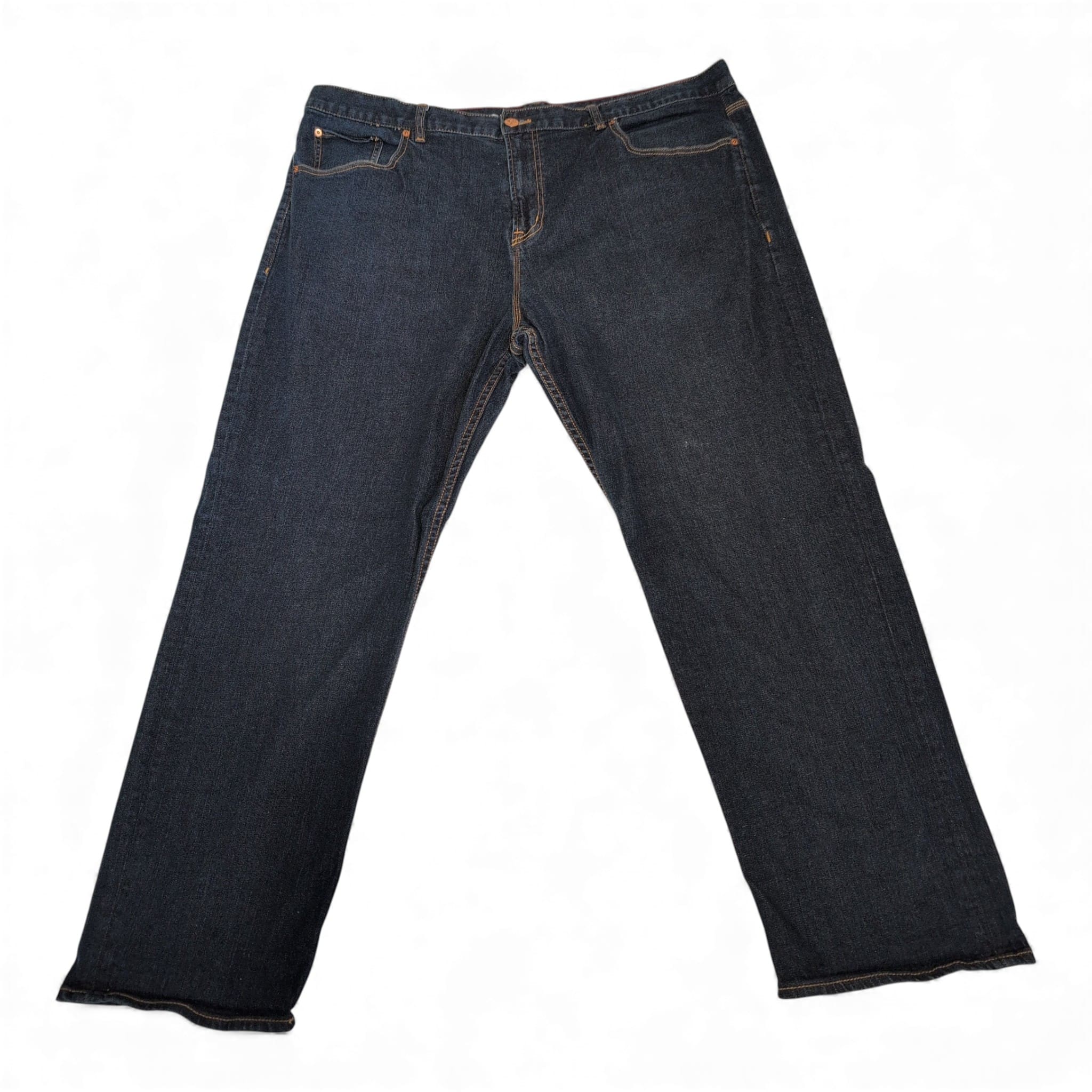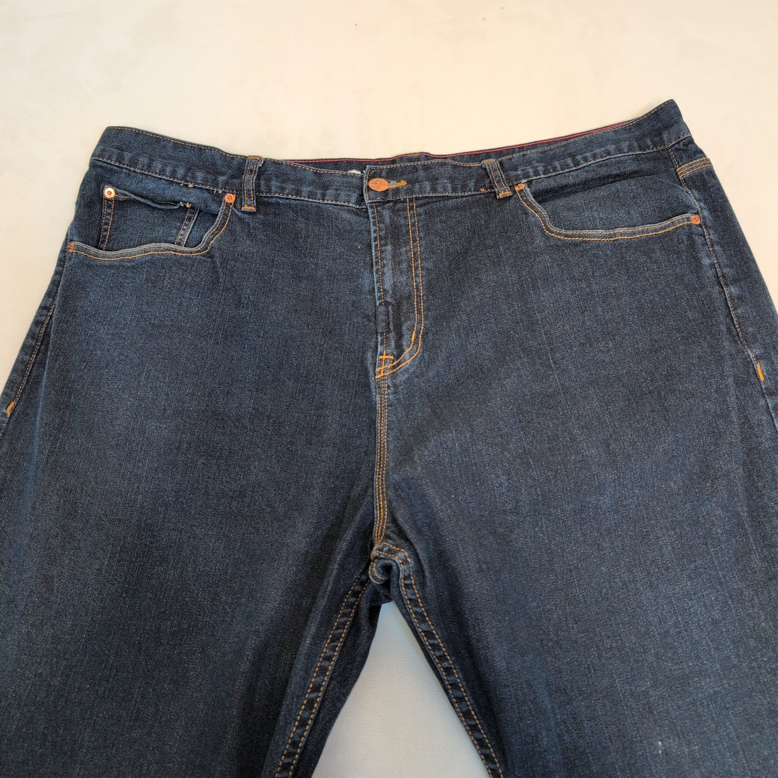 Classic LRG men’s relaxed-fit jeans in deep blue denim. Size: Waist 46 (Big & Tall). Comfortable relaxed cut with a straight leg — versatile for everyday wear. Five-pocket styling with contrast stitching and durable construction. Condition: pre-owned with a minor mark on the left leg; see photos for detail. Clean and ready to wear.