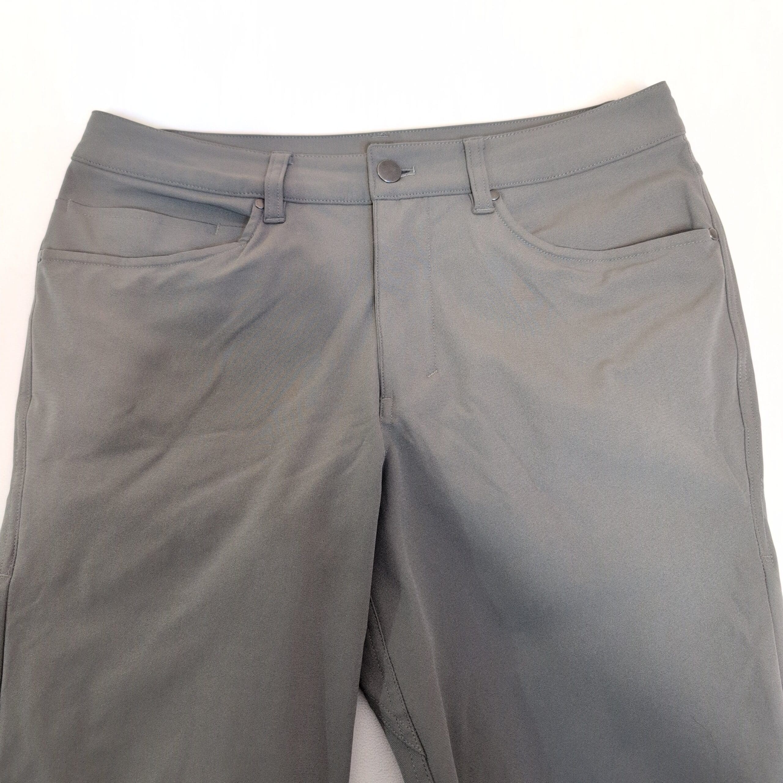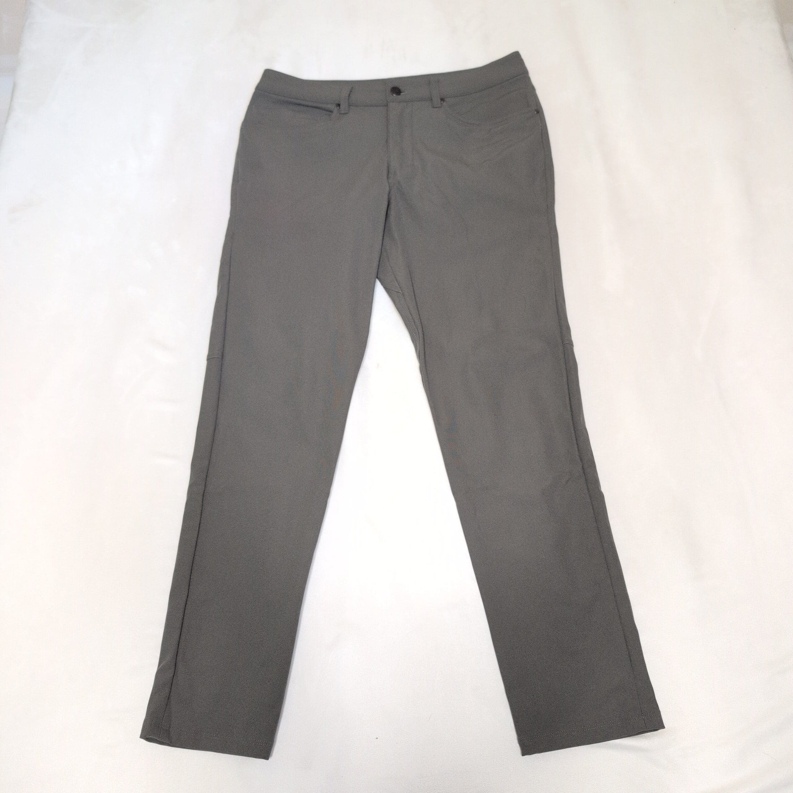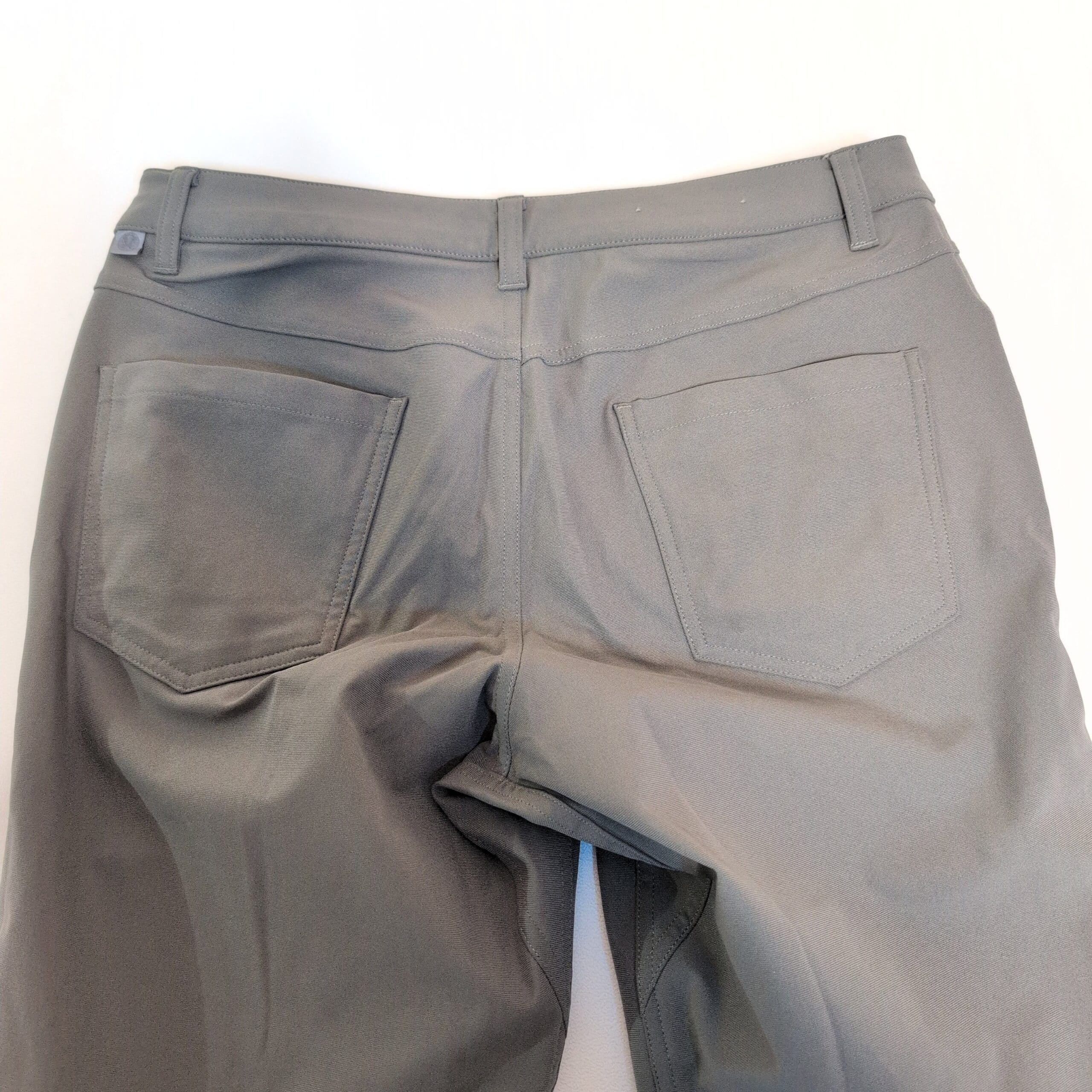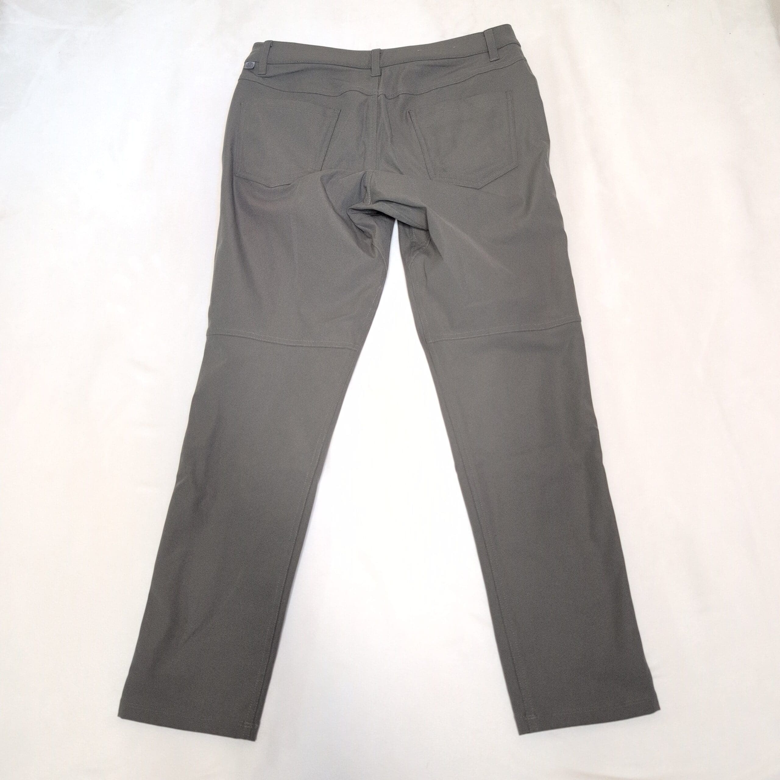 Classic Lululemon men’s stretch pants in a versatile green. Tailored slim-straight silhouette with belt loops, front pockets, and a button closure for a clean, polished look that works for work or casual wear. Size: Waist 31 (standard). Fabric offers comfortable stretch and good recovery for all-day mobility. Gently used, no flaws — typical light wear may be present.