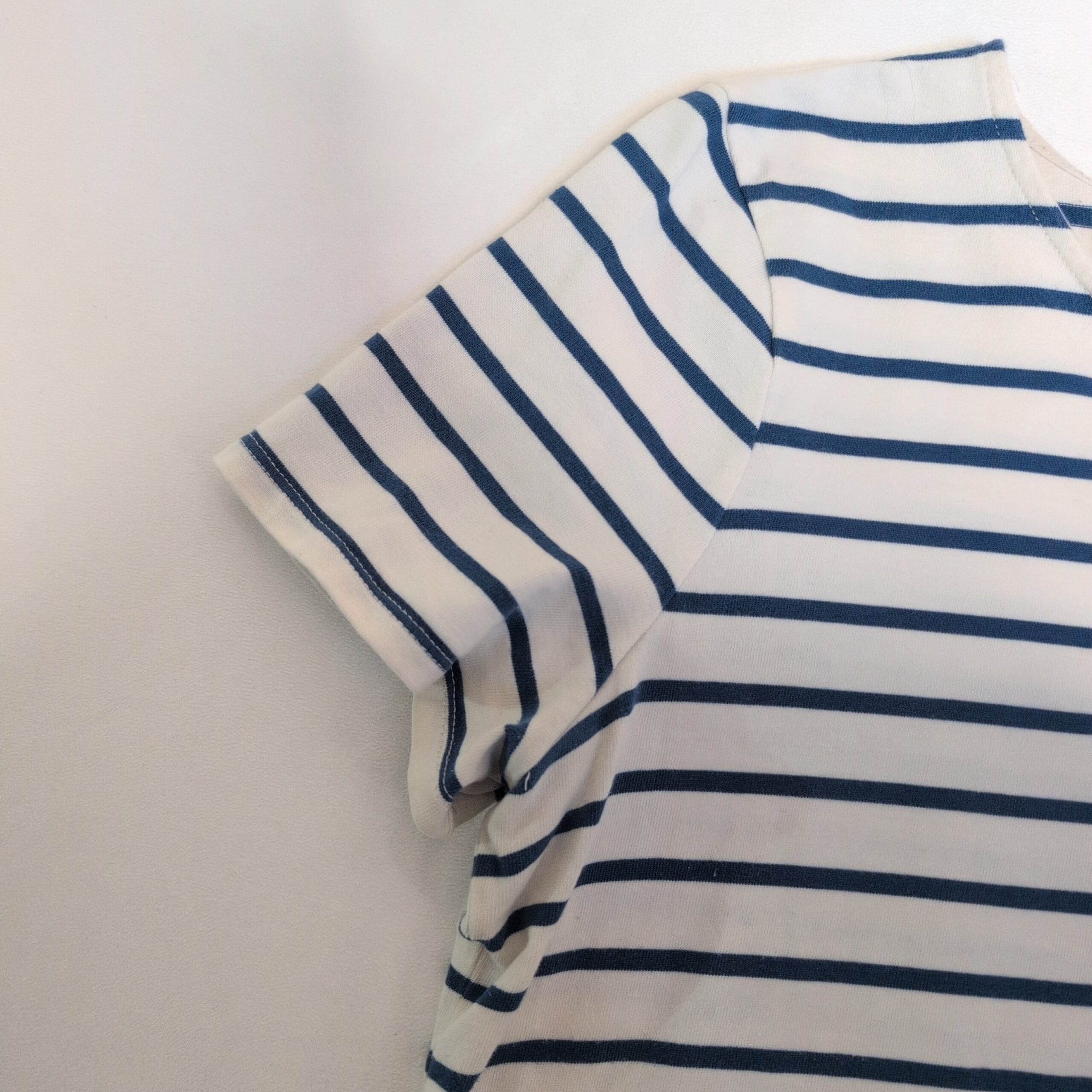 Madewell women’s short sleeve tee in blue and white stripes.