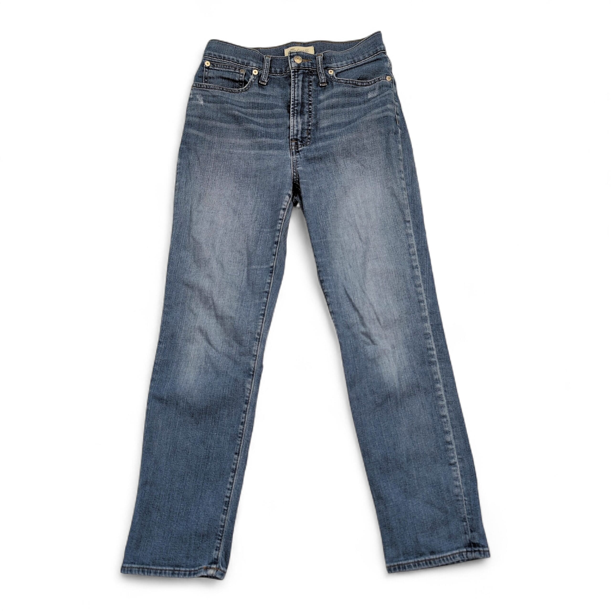 Madewell “The Perfect Vintage Crop” ankle jeans in women’s size 26. Medium blue vintage wash with subtle whiskering and gentle fading for a lived-in look. Classic five-pocket styling and belt loops — versatile cropped ankle silhouette perfect for everyday wear. Excellent used condition: free of major rips, tears, stains, or flaws; normal light wear consistent with prior use (see photos).