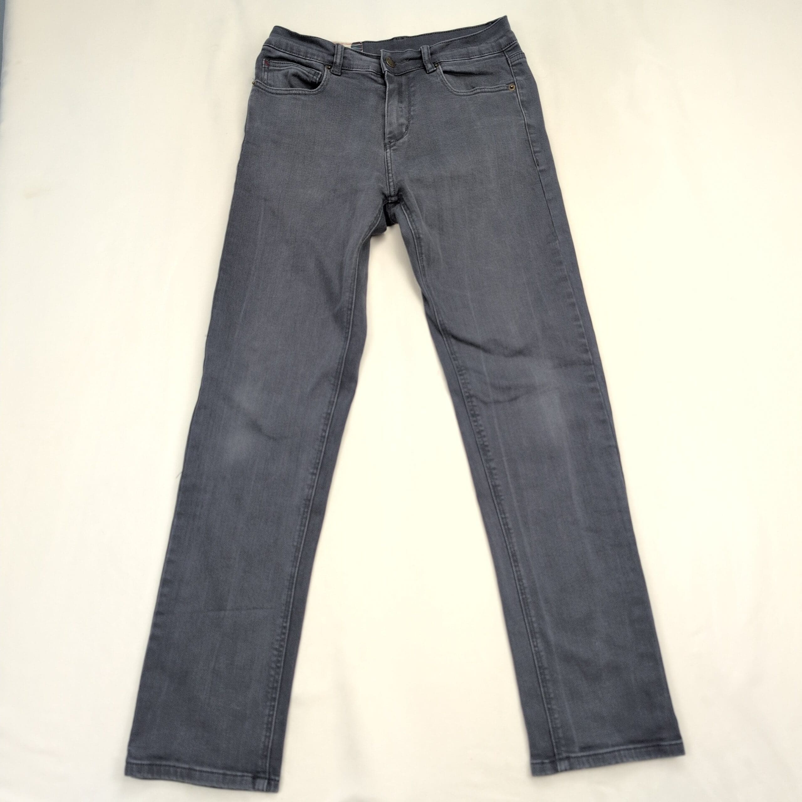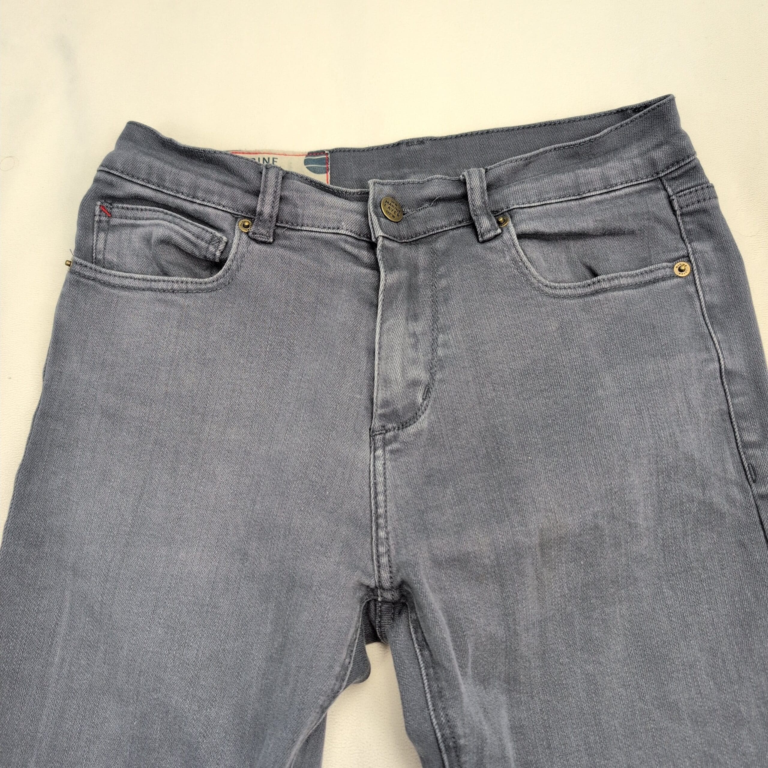Marine Layer men’s slim-straight jeans in versatile gray. Size: 30×30 (Waist 30, Inseam 30). Excellent used condition — free of major rips, tears, or stains; shows only light, normal wear. Slim through the thigh with a straight leg for a modern, everyday silhouette. Classic five-pocket design and a clean finish make these easy to style for casual or slightly dressier looks. See photos for close-up condition details.