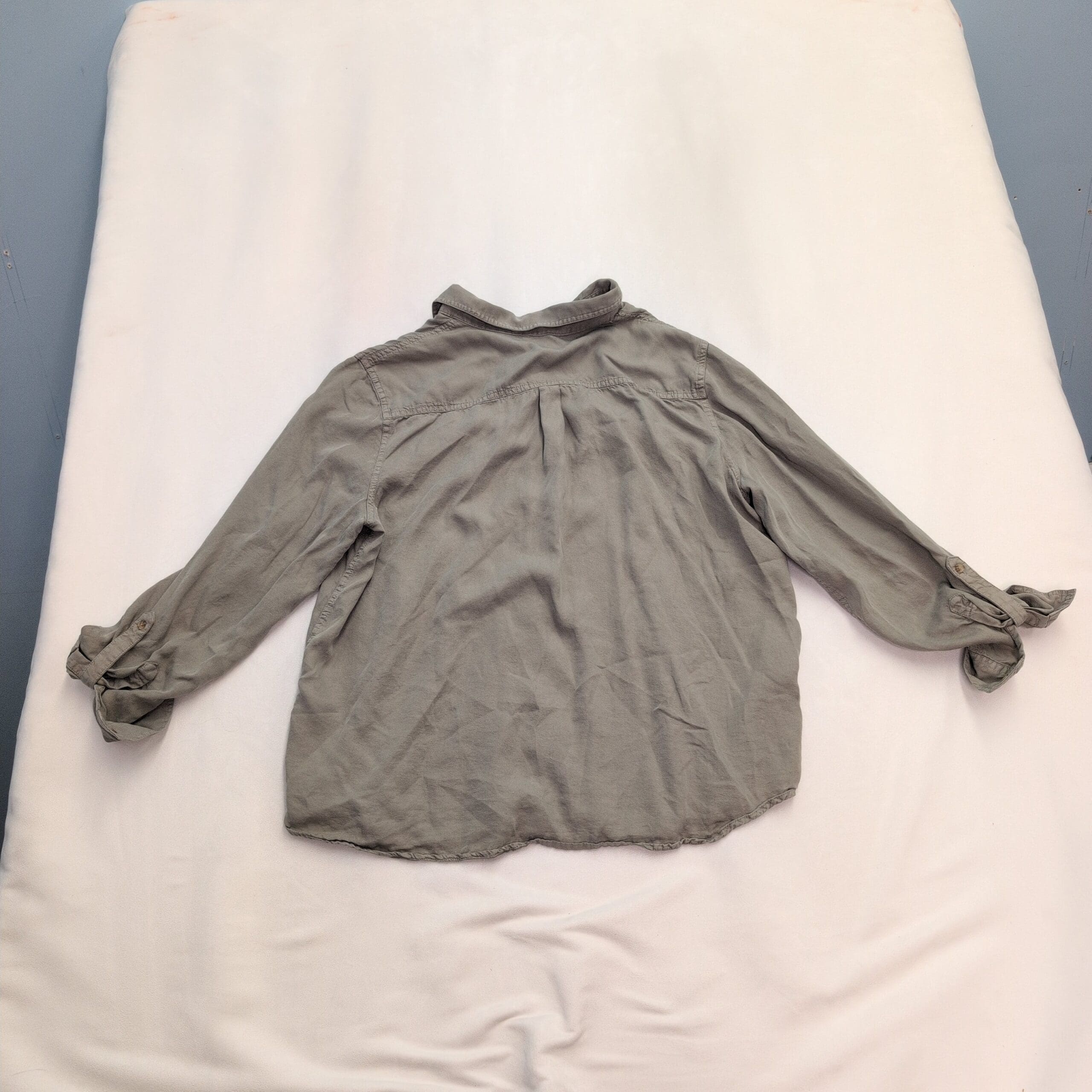 Gently used; free of major rips, tears, or stains. Shows light overall wear with a soft, broken-in texture, minor fraying at the hem, and light creasing consistent with normal wear.