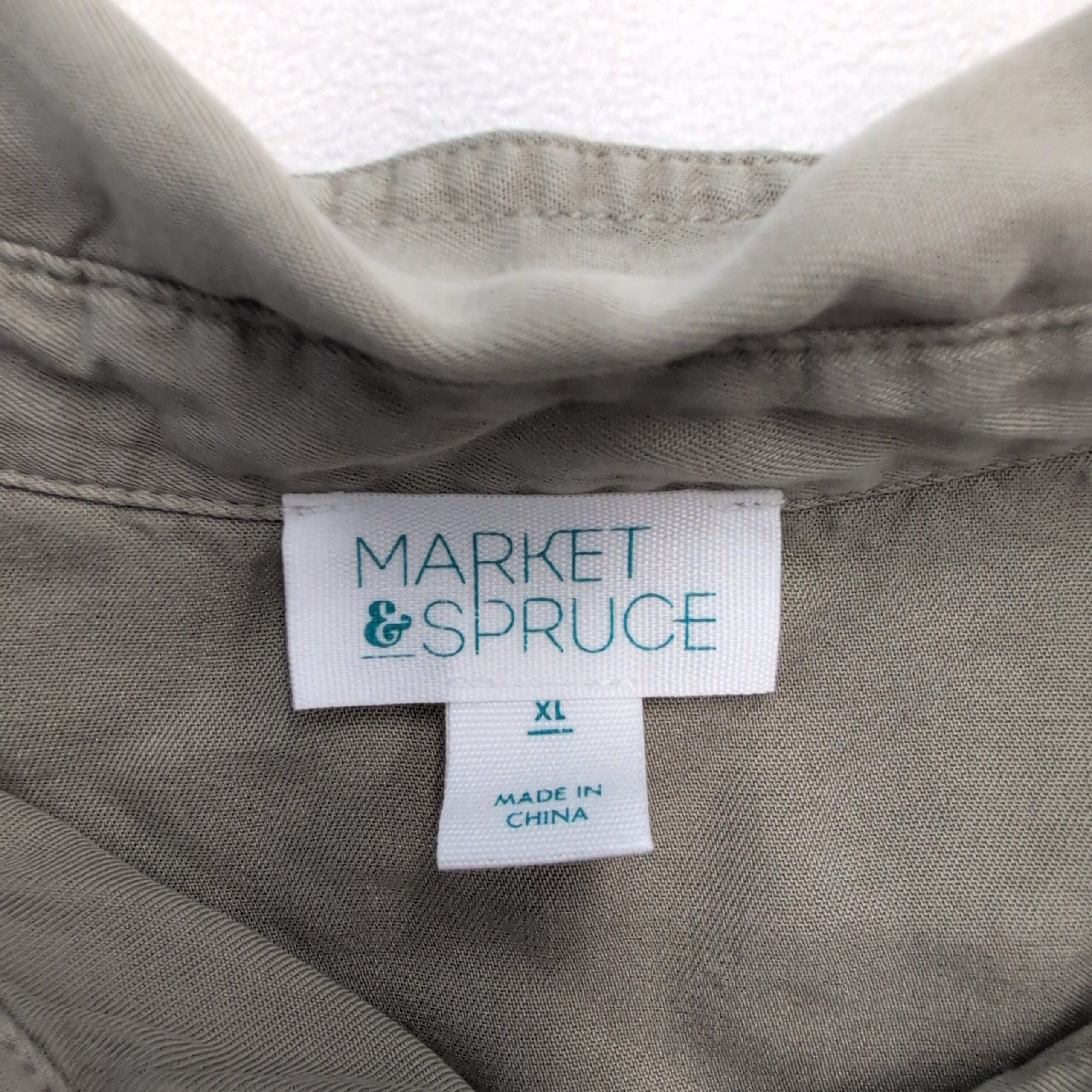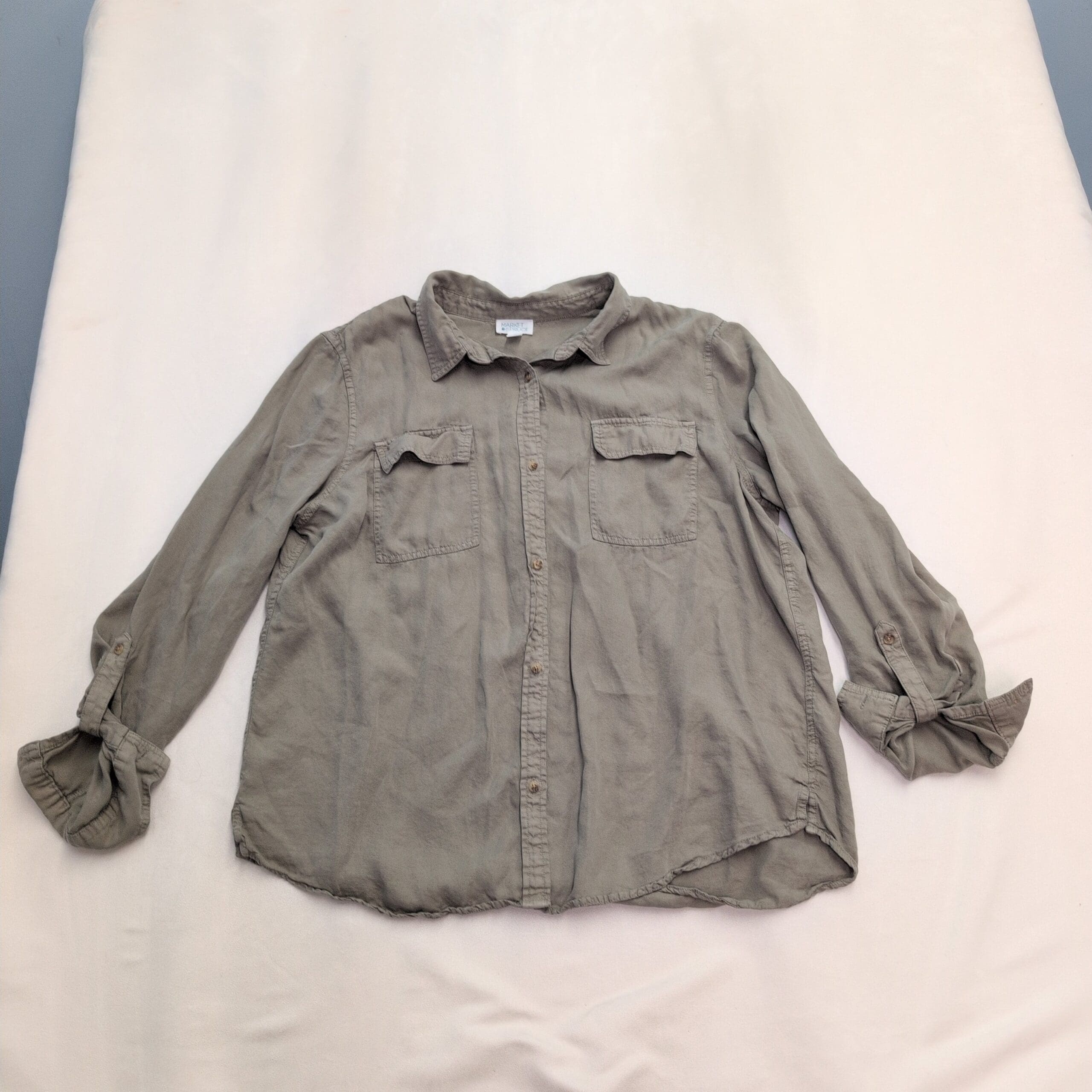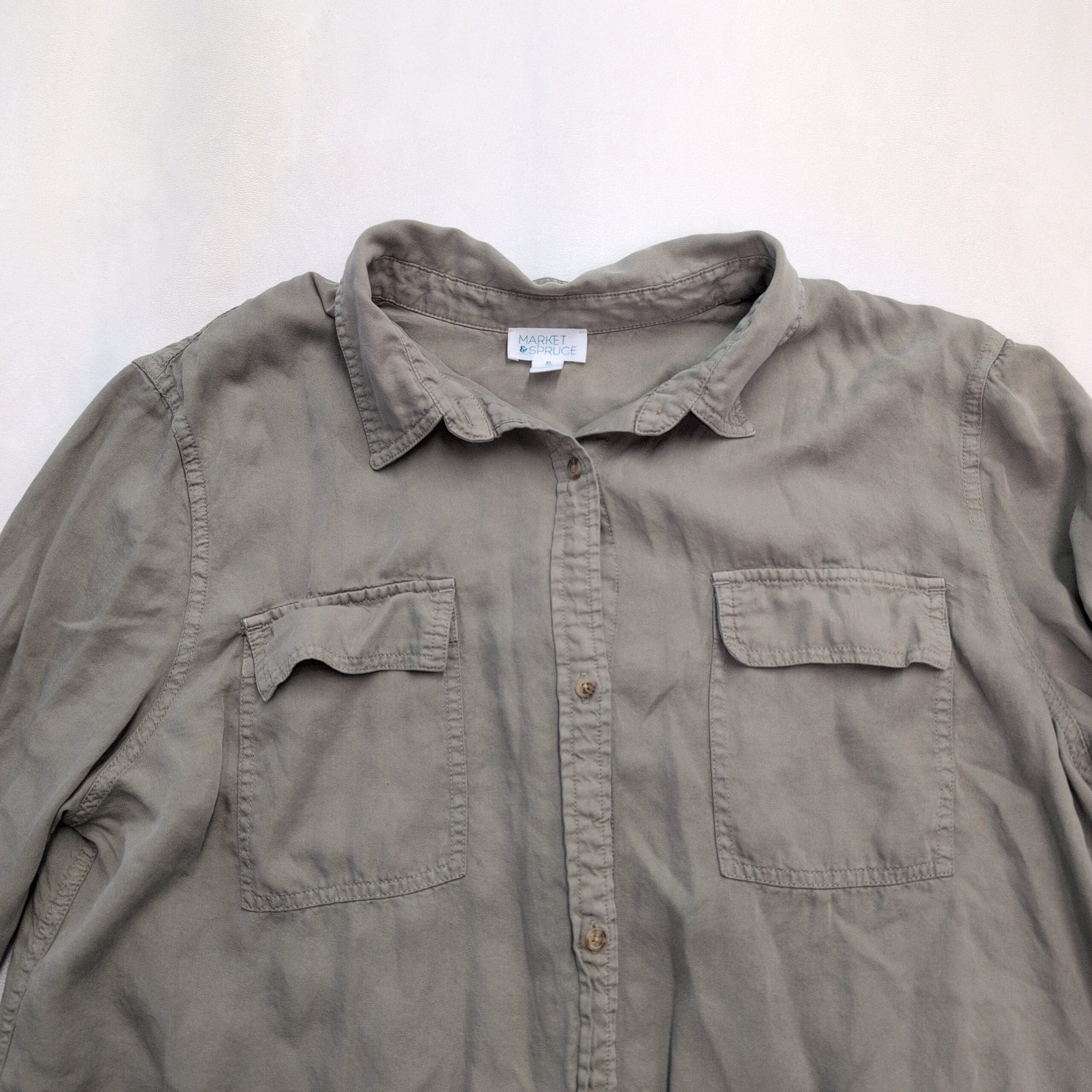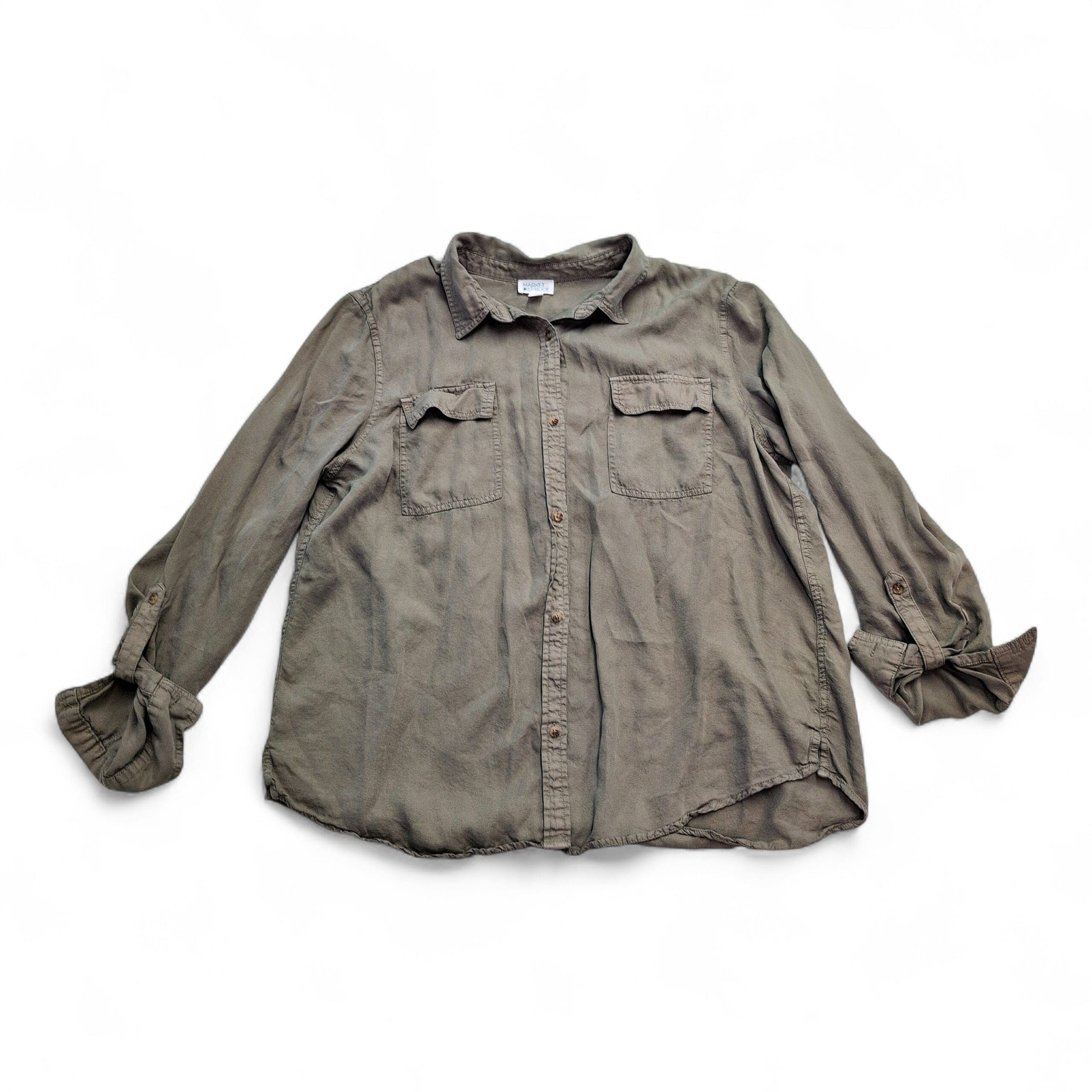 Market & Spruce Olive Button-Front Utility Shirt XL
