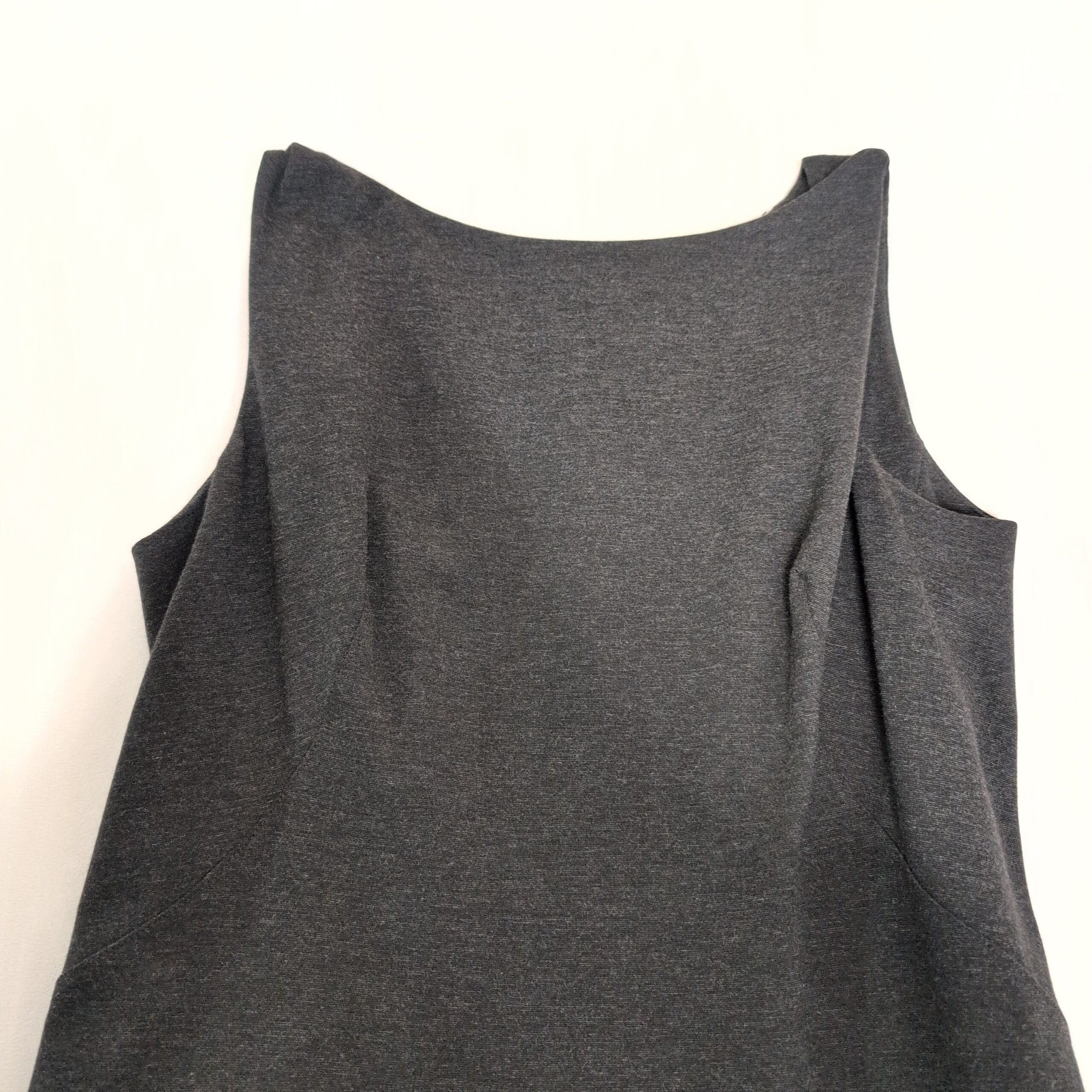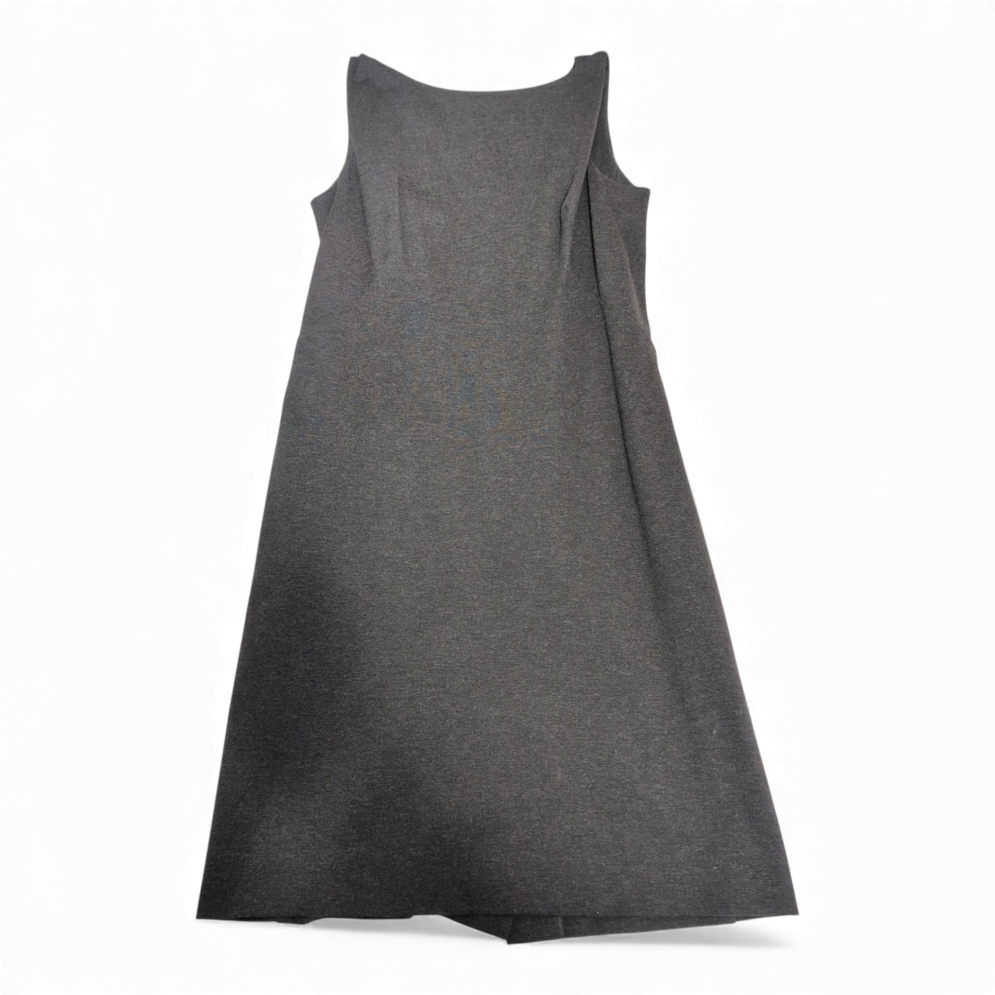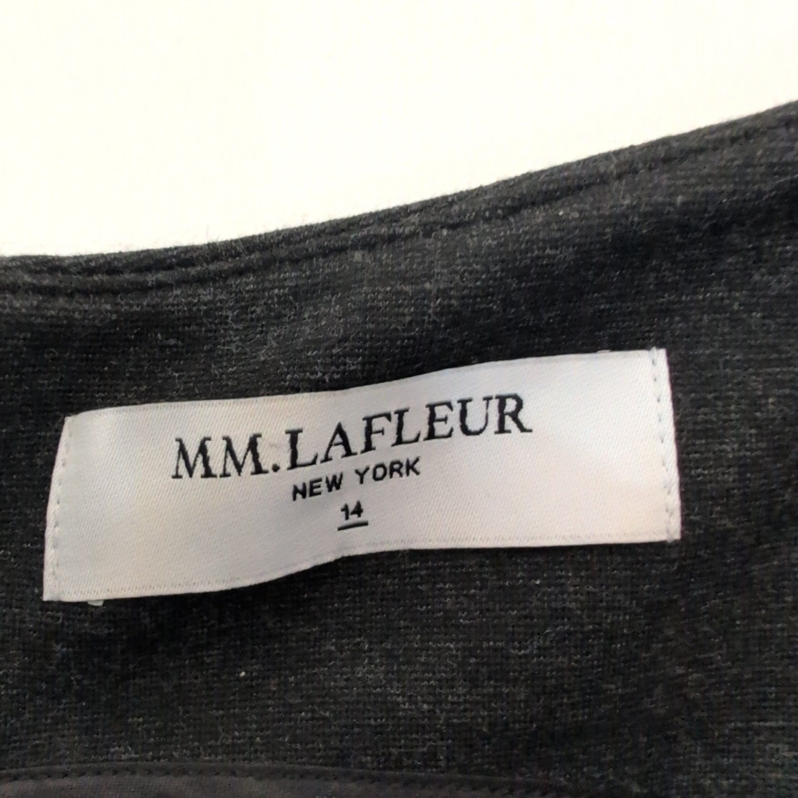 Classic MM.LaFleur sleeveless A-line dress in gray, size 14 (Plus). Features a flattering boat neckline and clean, tailored lines that skim the body into a graceful flare — ideal for the office, presentations, or dressed-up events. Subtle textured finish gives a refined, professional look. Gently pre-owned and in excellent condition; please review photos for details. Measurements are not provided.