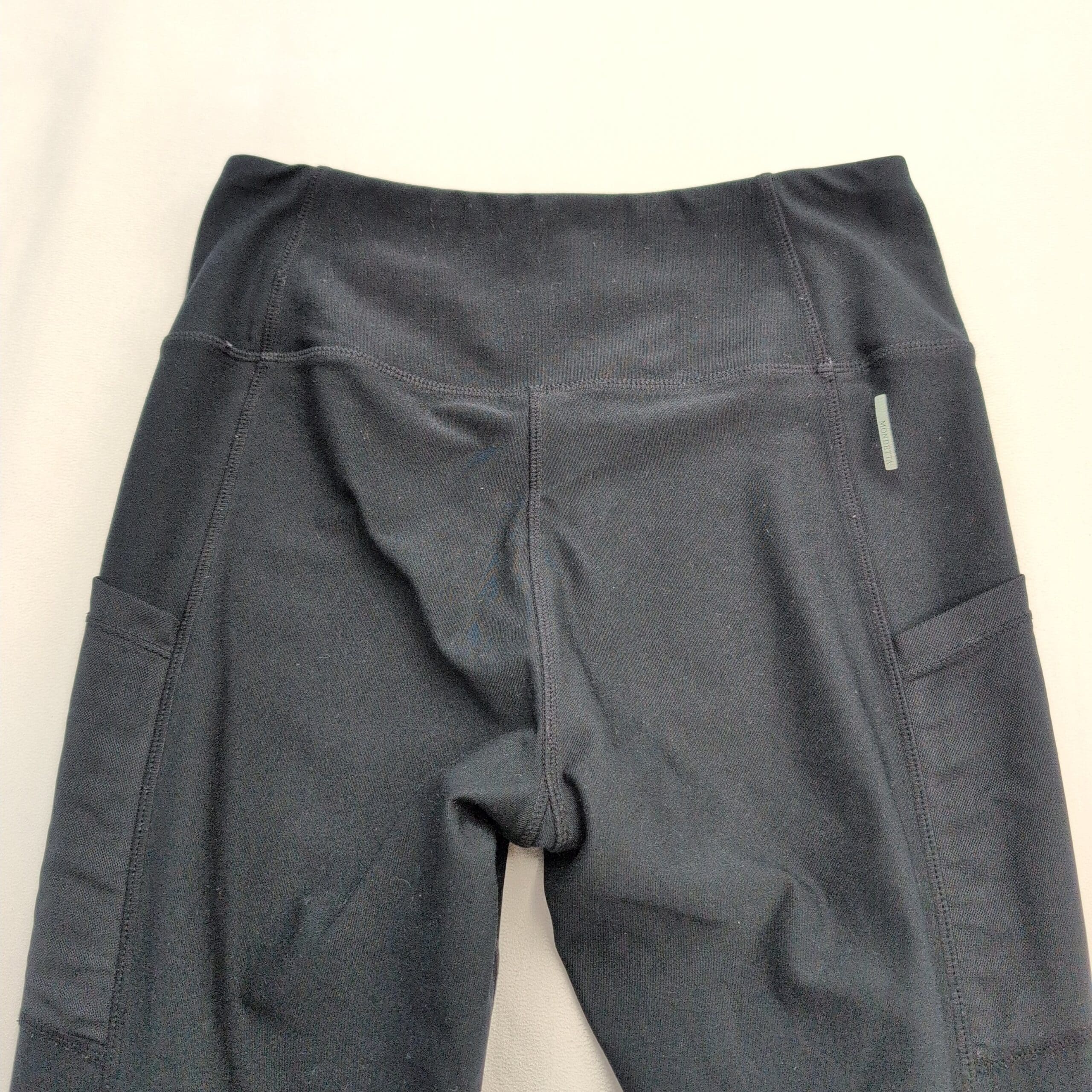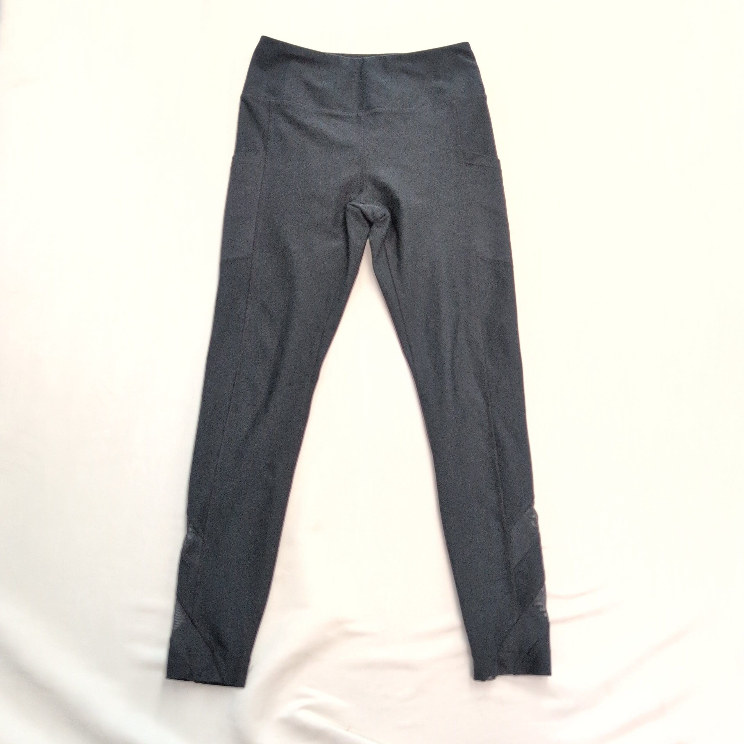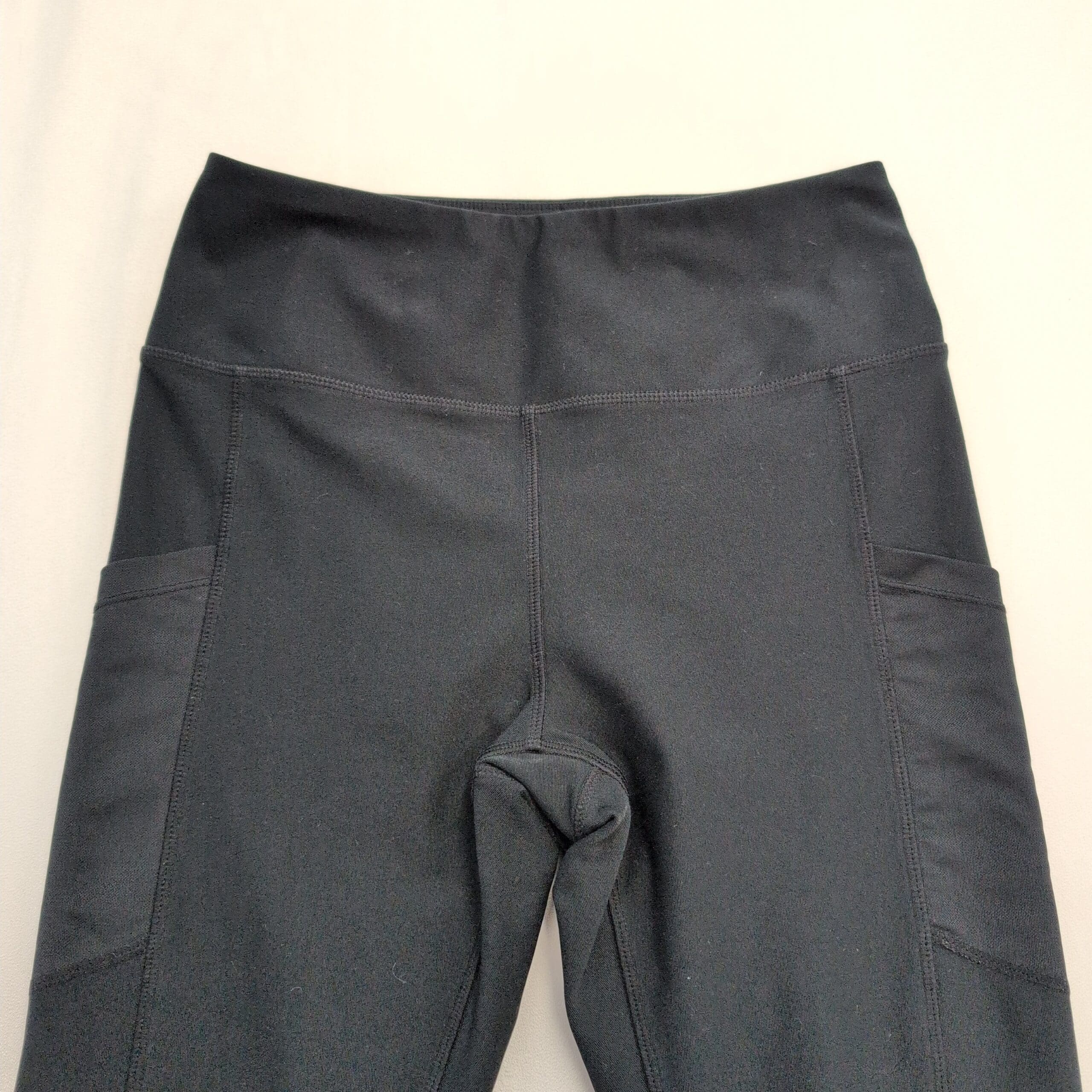 Mondetta women’s black performance leggings in Size S. Features a high-rise wide waistband for comfortable support, side utility pockets, flat-seam construction and subtle panel details at the ankles. Stretchy, breathable fabric ideal for workouts, yoga, or everyday wear. Gently used condition — free of major rips, tears, stains, or flaws; typical wear may be present.