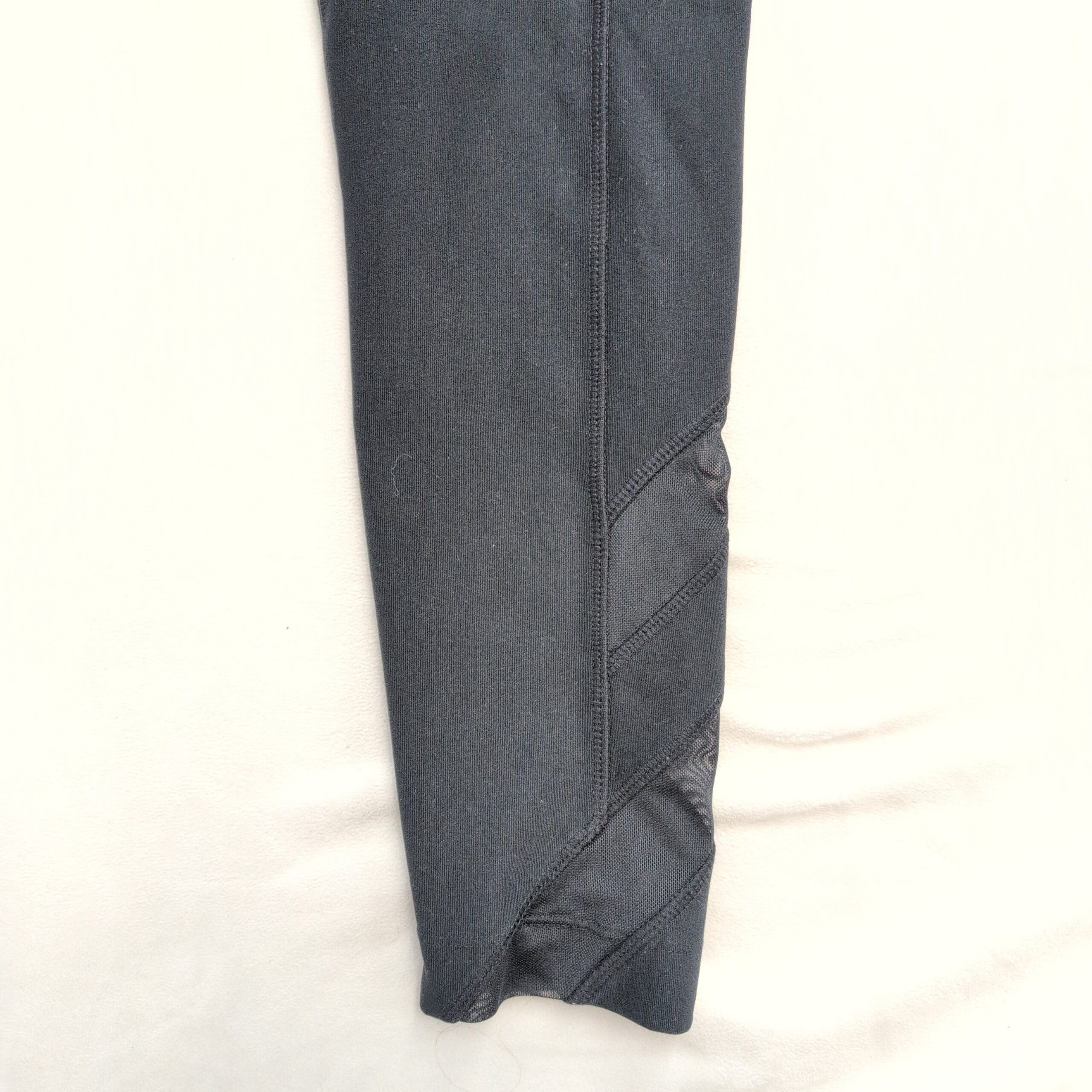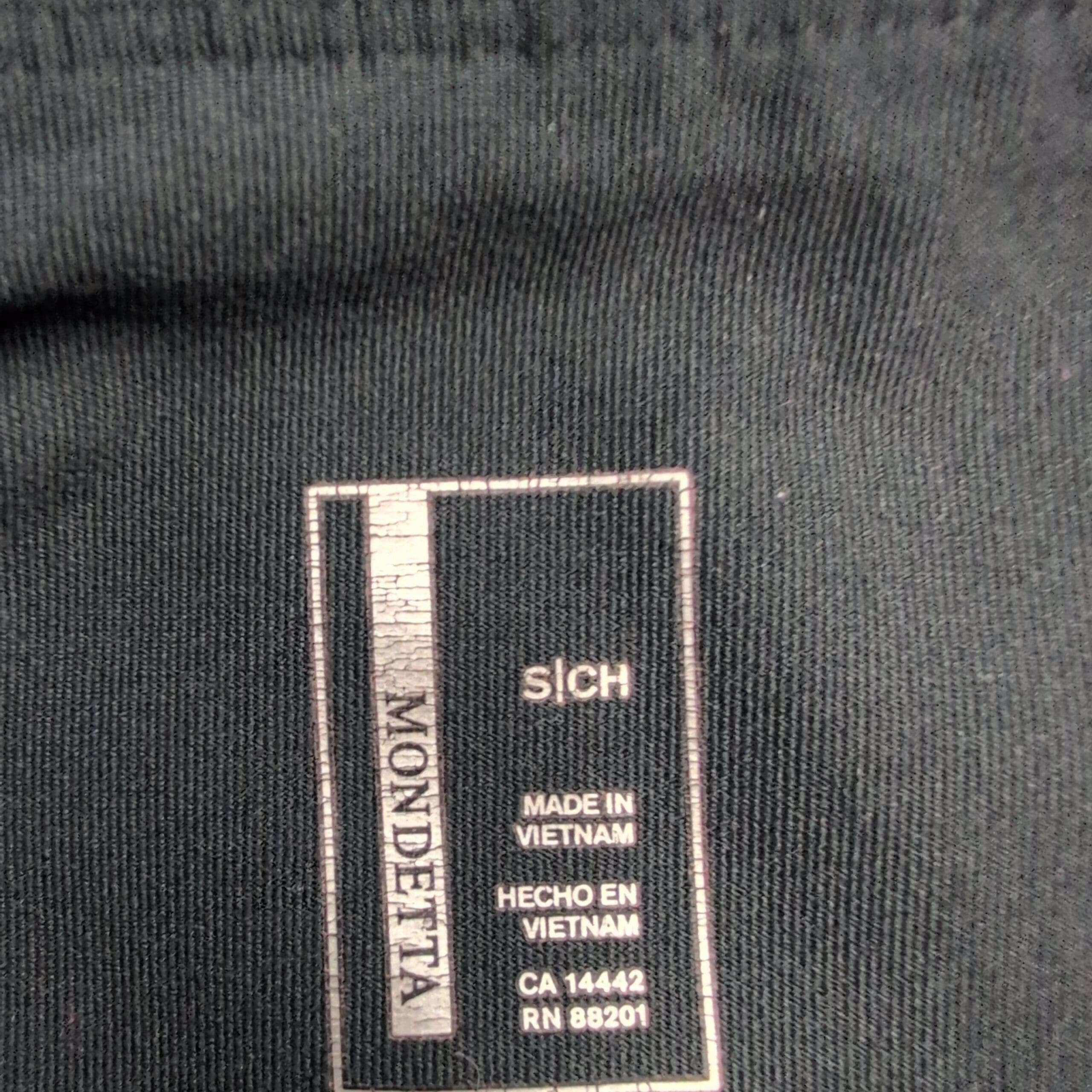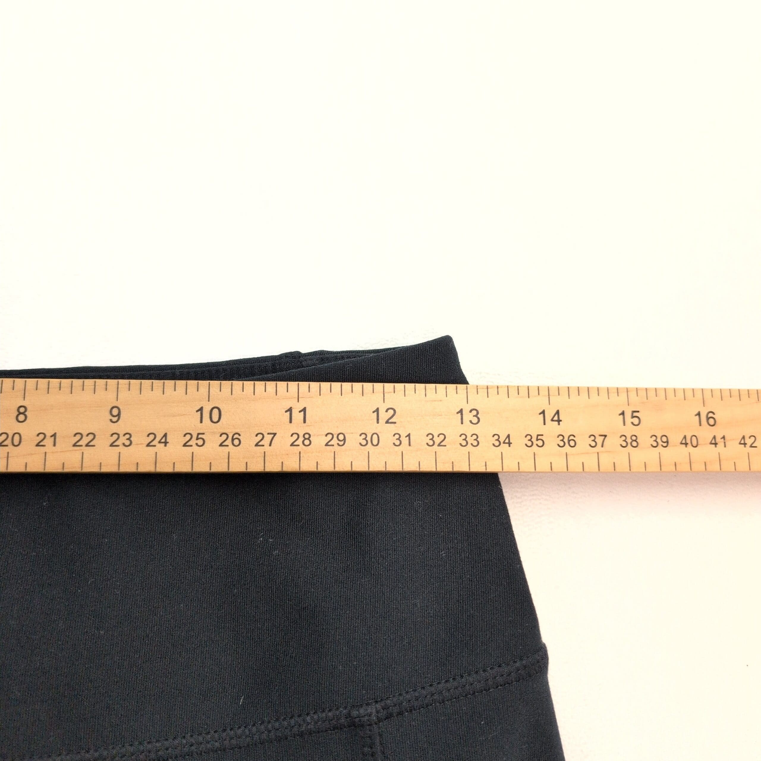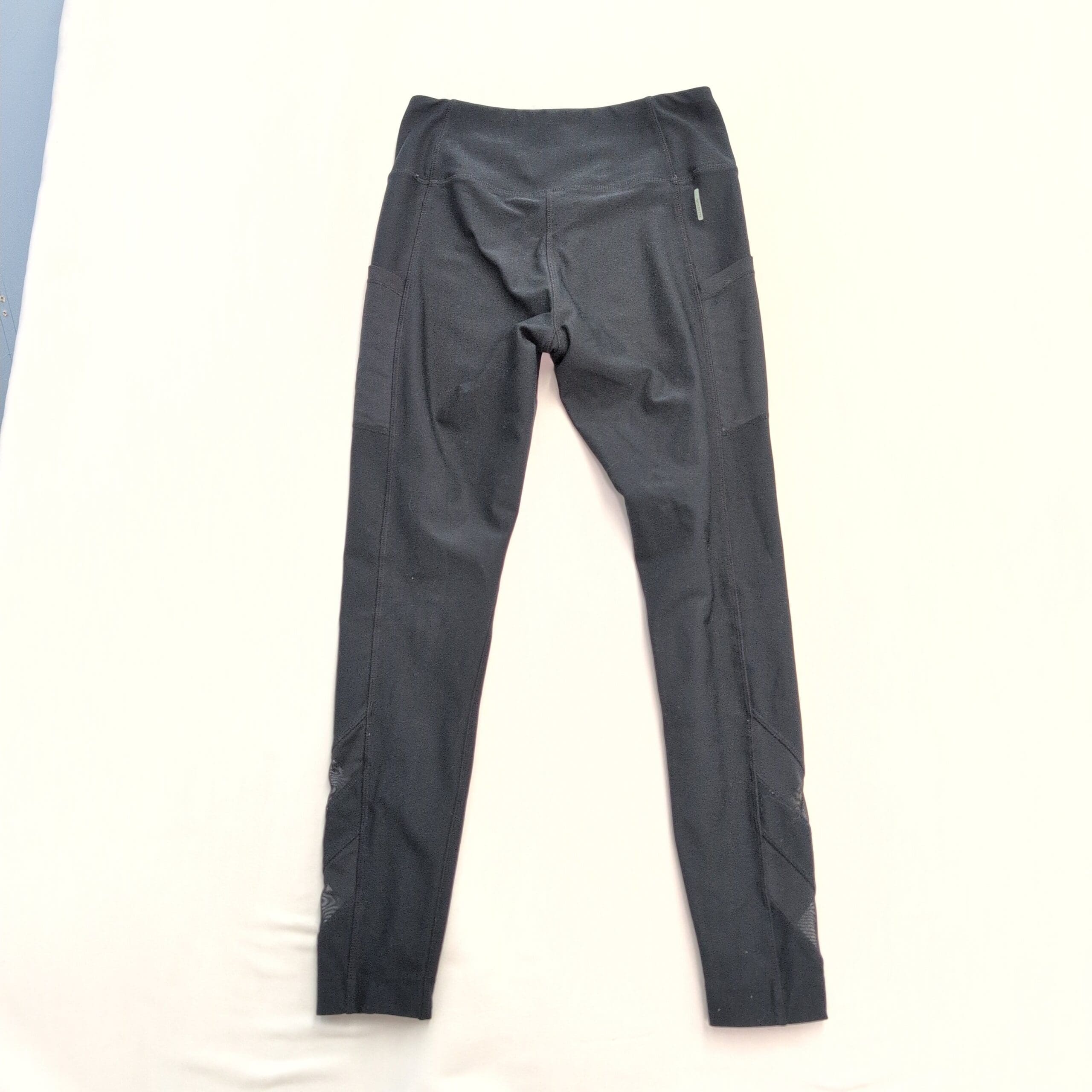 Mondetta women’s black performance leggings in Size S. Features a high-rise wide waistband for comfortable support, side utility pockets, flat-seam construction and subtle panel details at the ankles. Stretchy, breathable fabric ideal for workouts, yoga, or everyday wear. Gently used condition — free of major rips, tears, stains, or flaws; typical wear may be present.