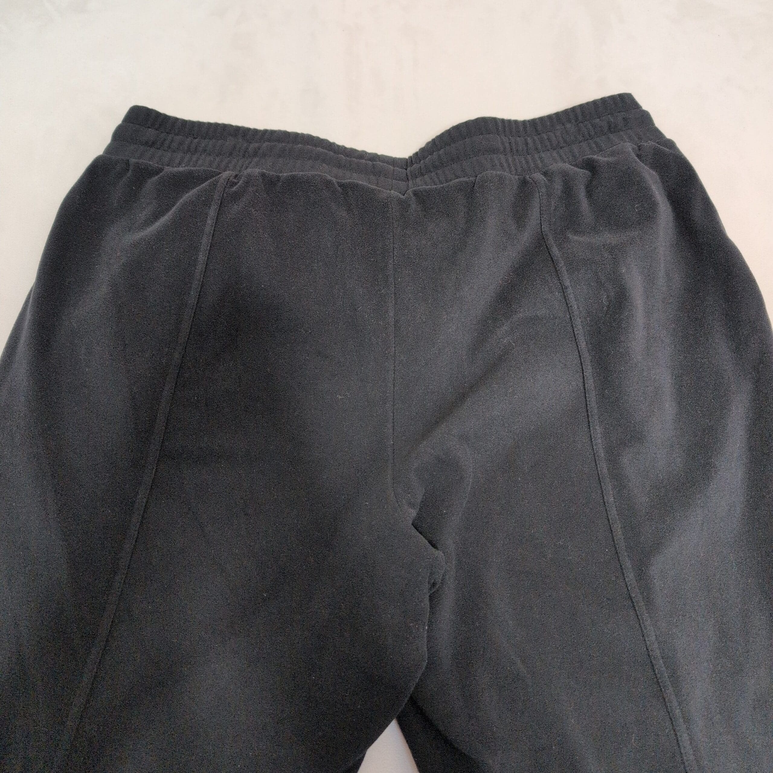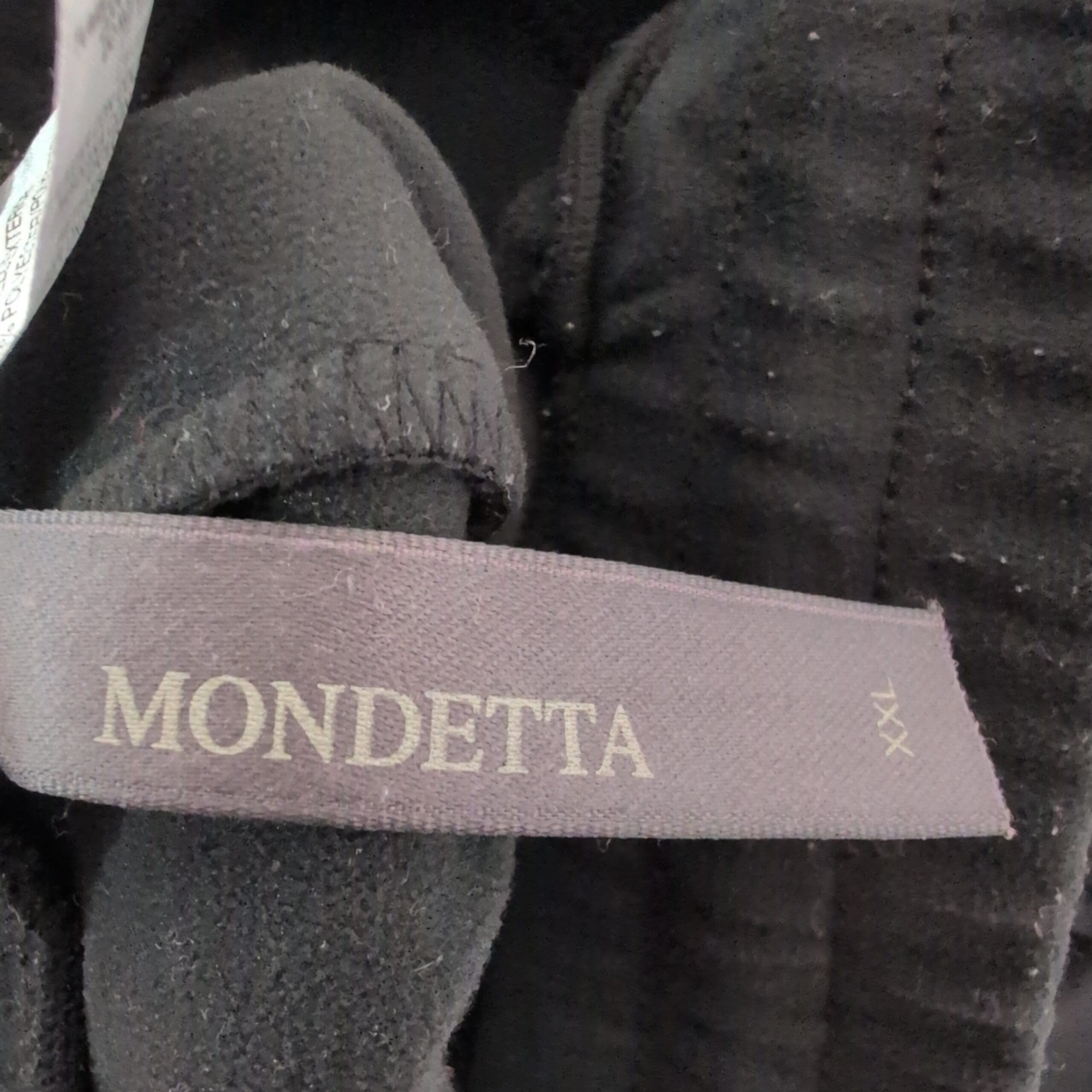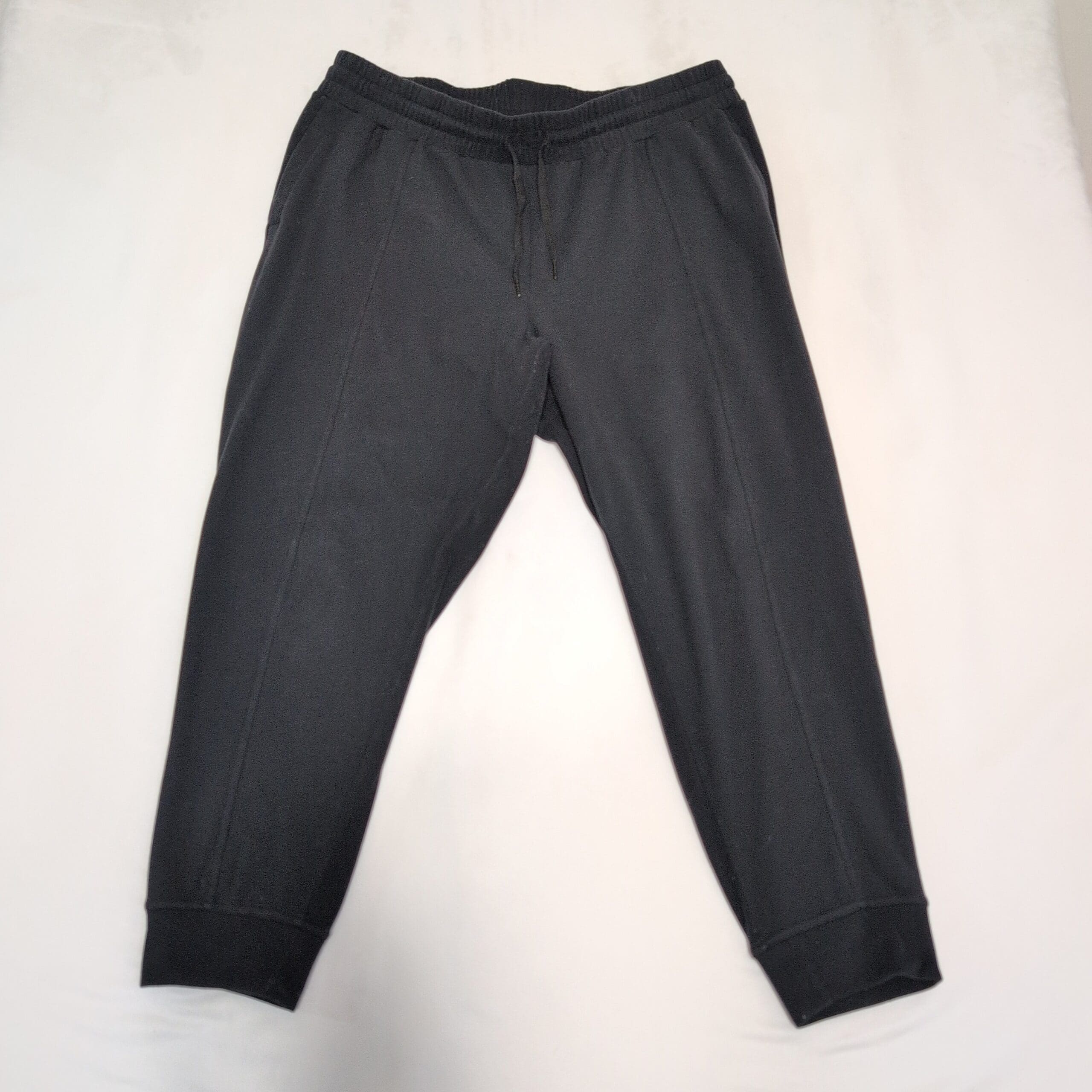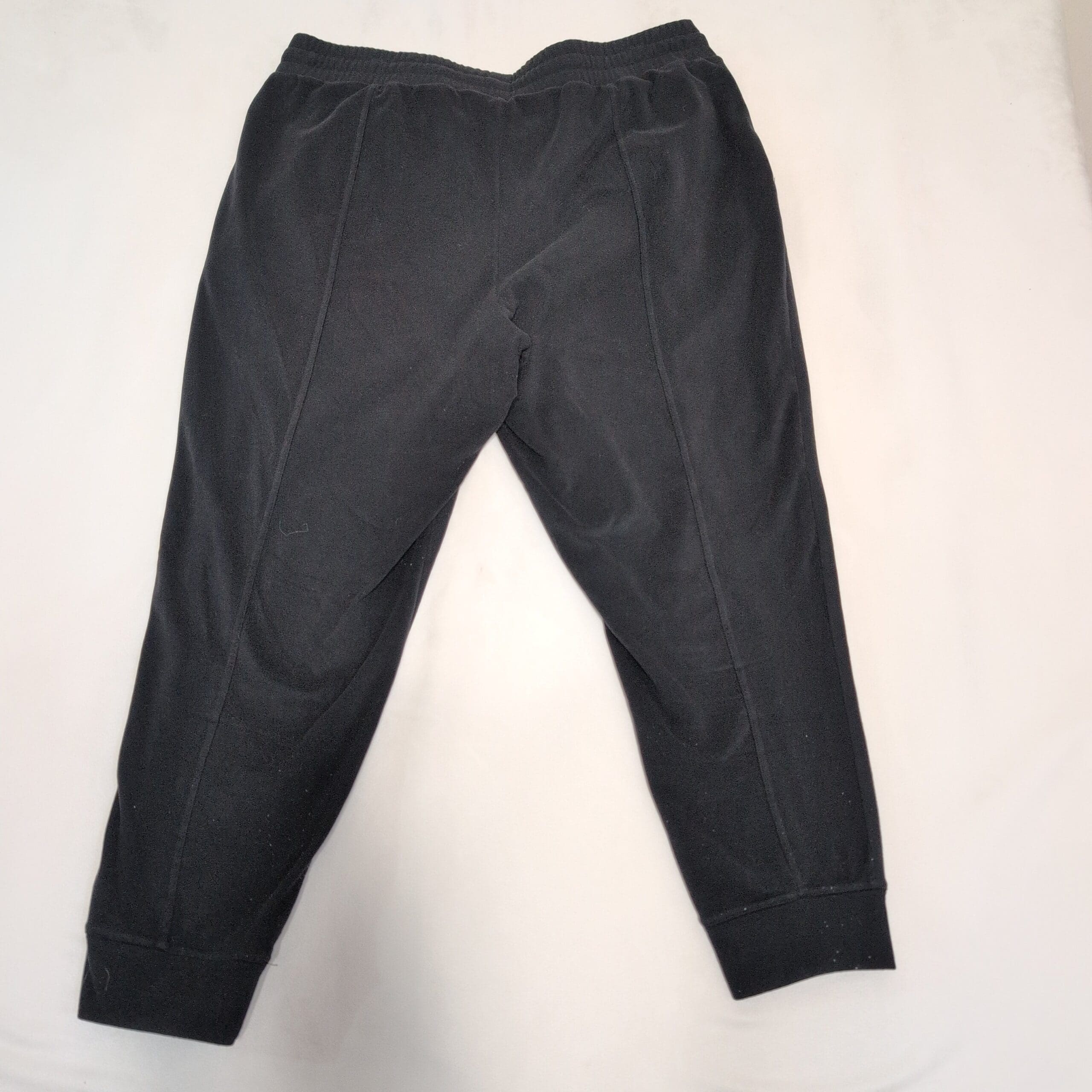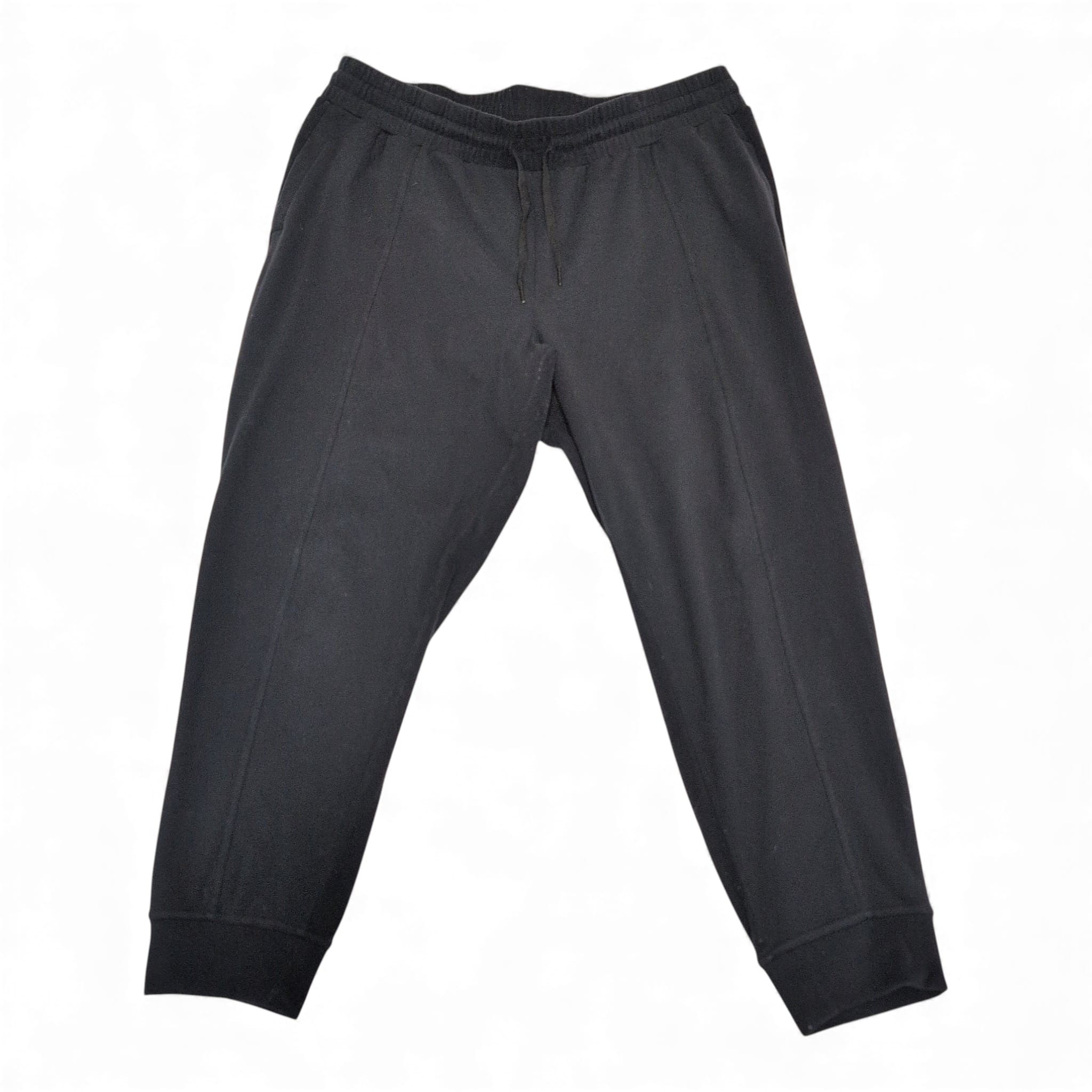 Mondetta women’s black track joggers in size 2X (Plus). Classic tapered silhouette with elastic drawstring waistband, side pockets, stitched front seam detail and ribbed ankle cuffs for a secure fit. Versatile for workouts, travel, or everyday lounging. Pre-owned — overall good condition with normal light wear; please review photos for details.