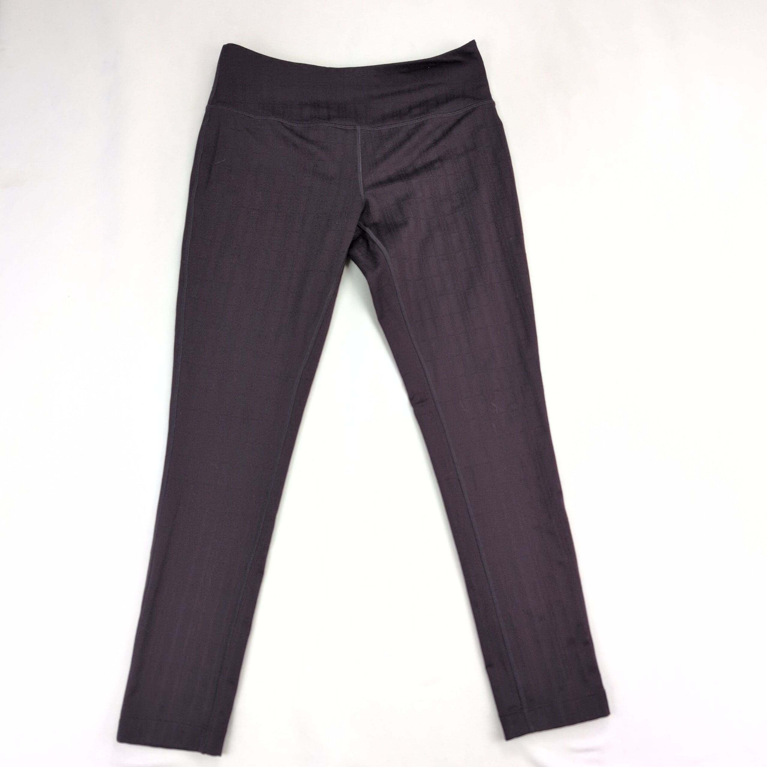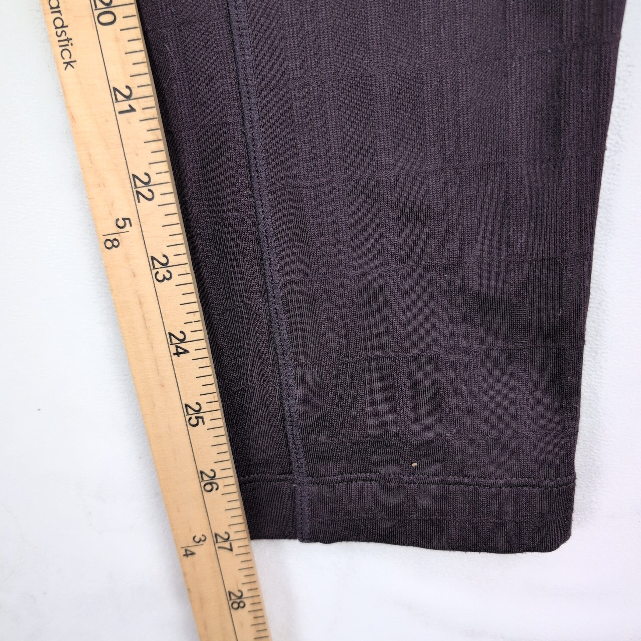 Mondetta women’s leggings in size L. Dark charcoal stretch knit with a subtle vertical texture for a streamlined look. Full-length, slim silhouette with a comfortable elastic waistband — versatile for everyday wear or low-impact workouts.