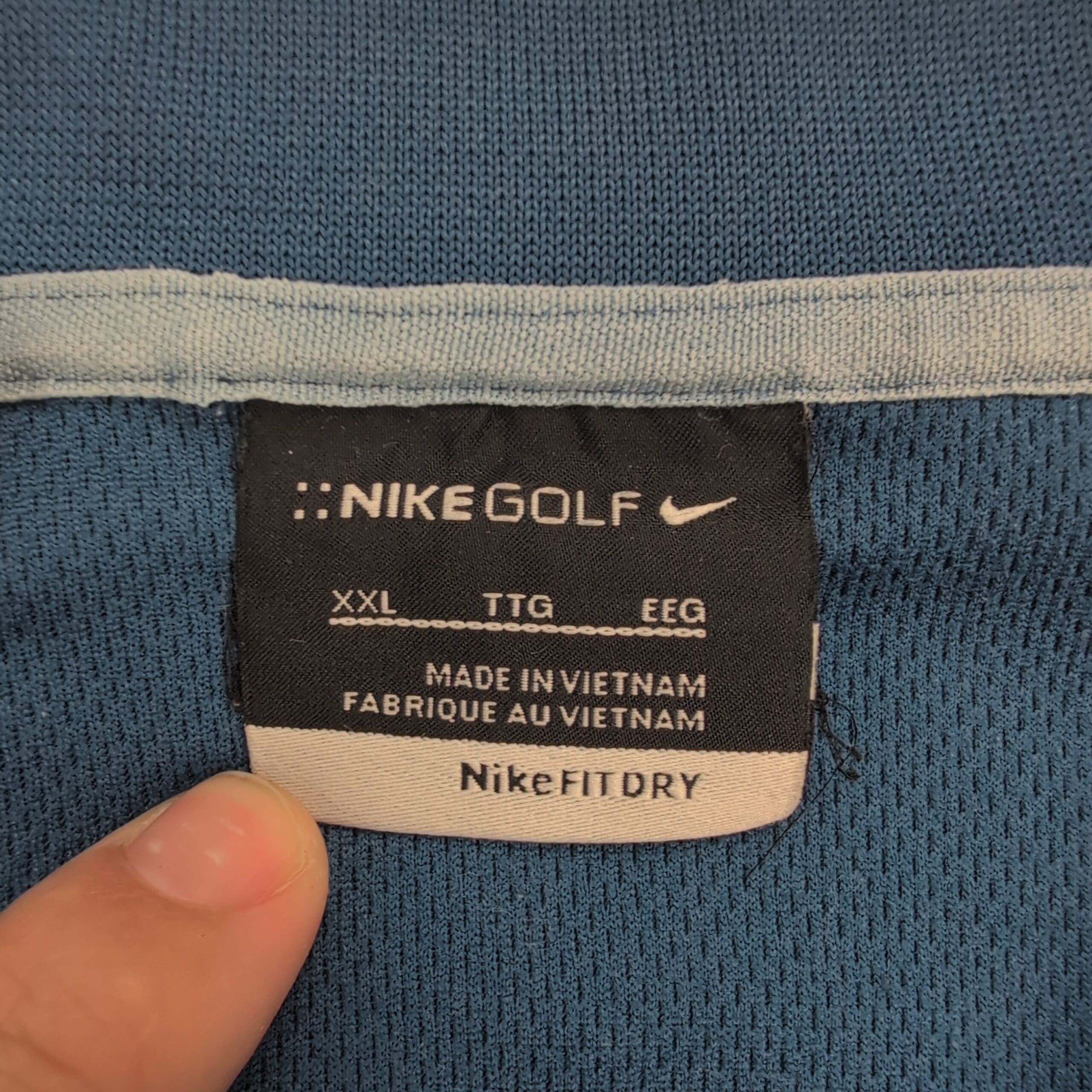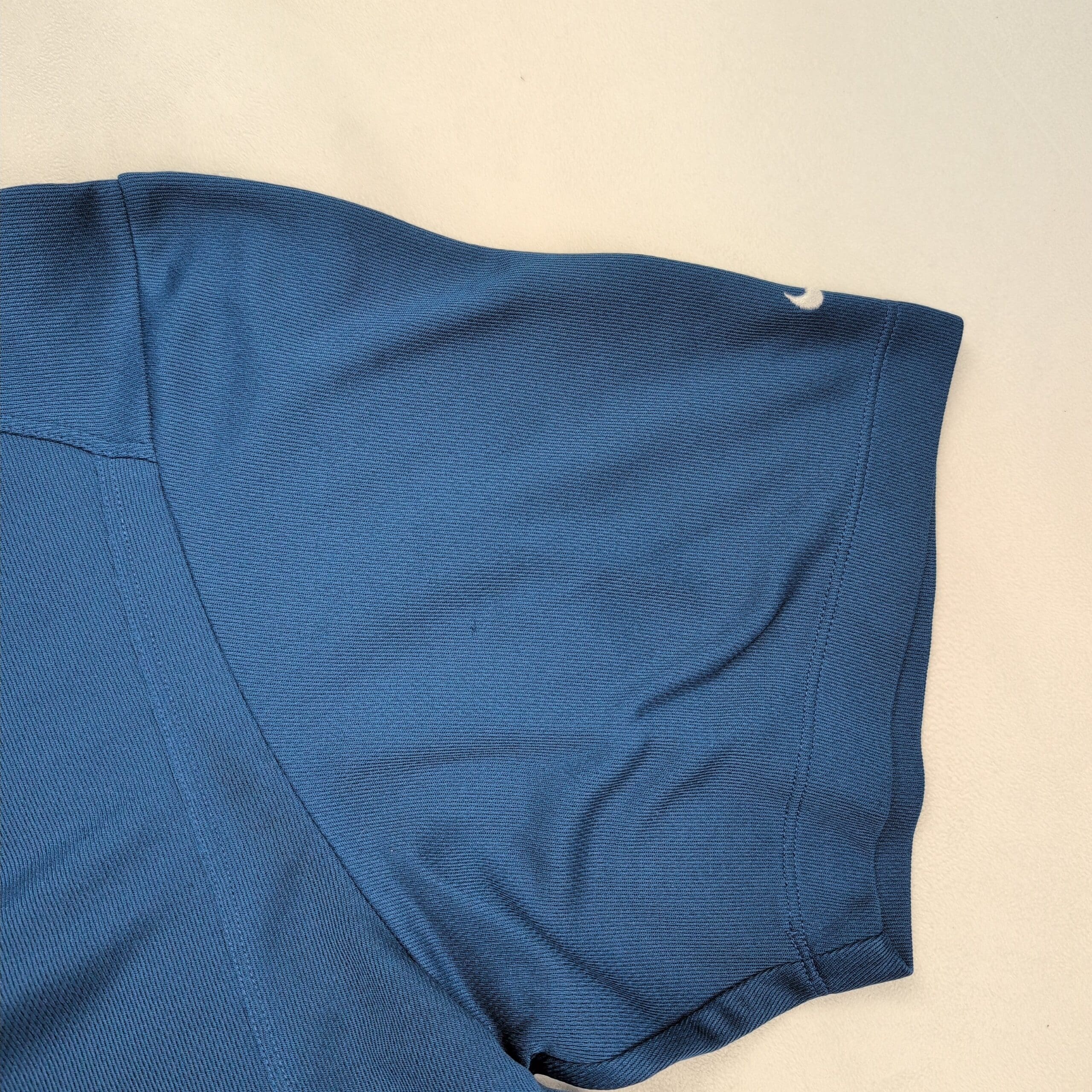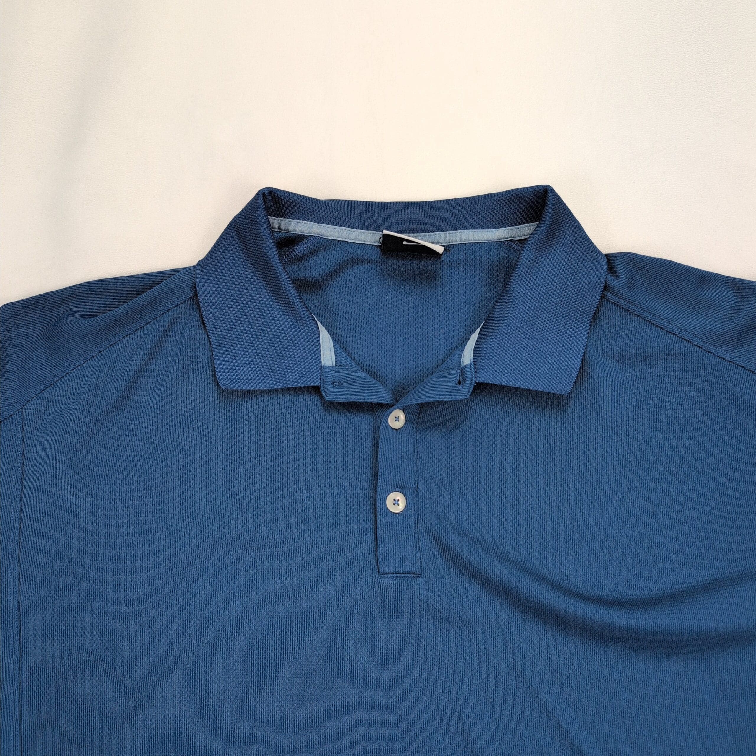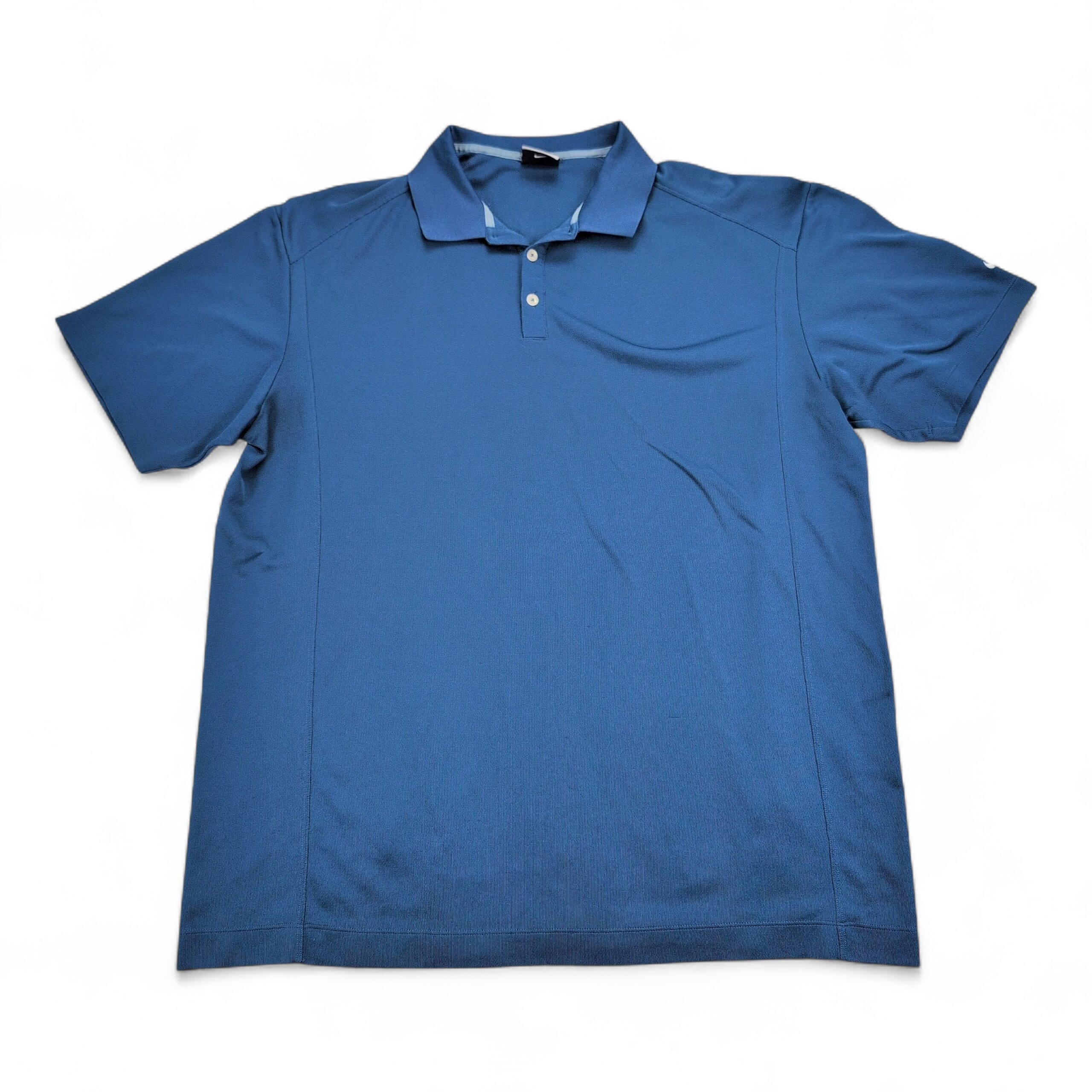 Nike Dri-FIT men’s golf polo in XXL (Big & Tall). Medium blue moisture-wicking performance fabric with a 3-button placket and embroidered Swoosh on the sleeve. Lightweight, breathable, and great for on-course or everyday wear. Excellent used condition with minor thread pulling consistent with general use (see photos for detail). Free of major rips, tears, or stains.
