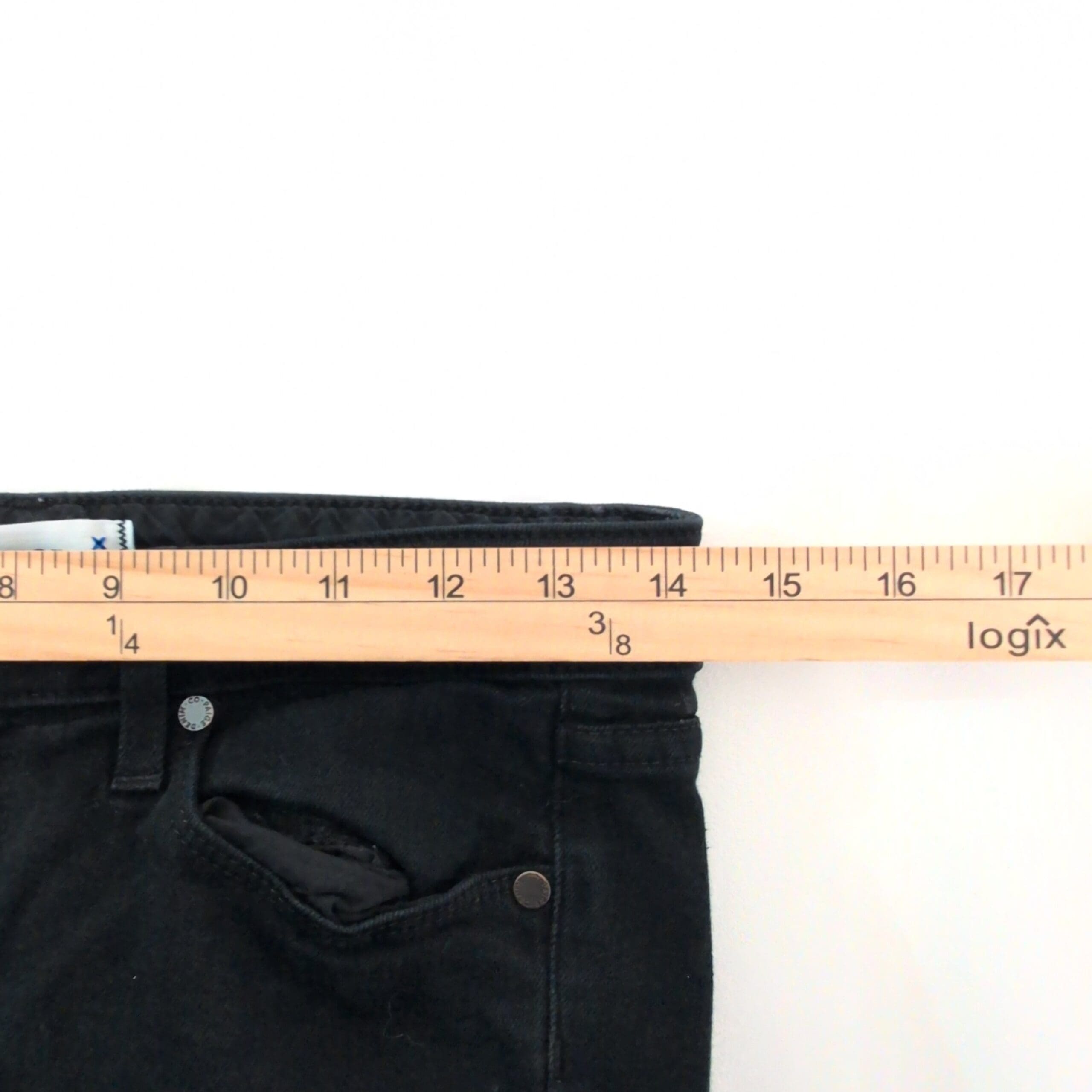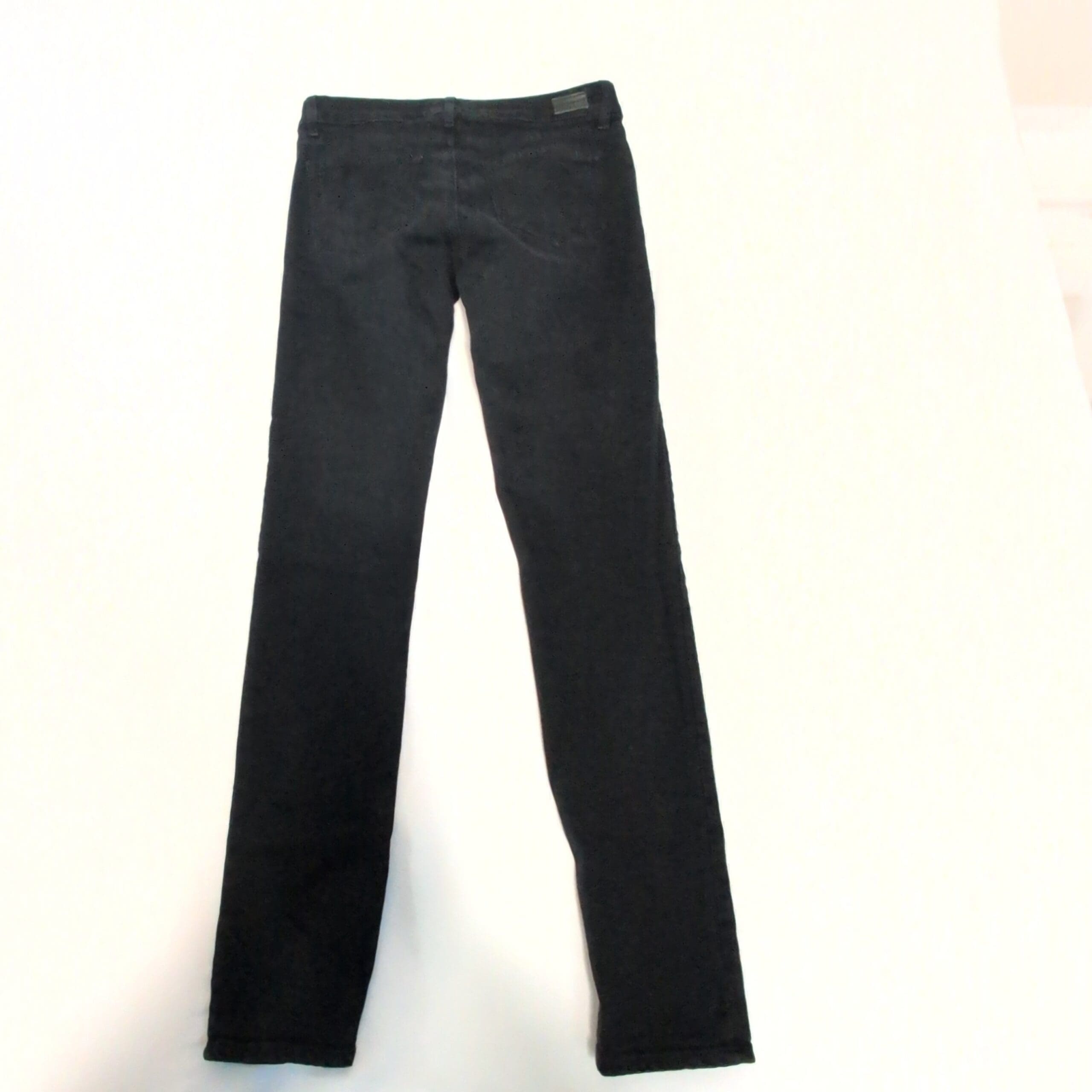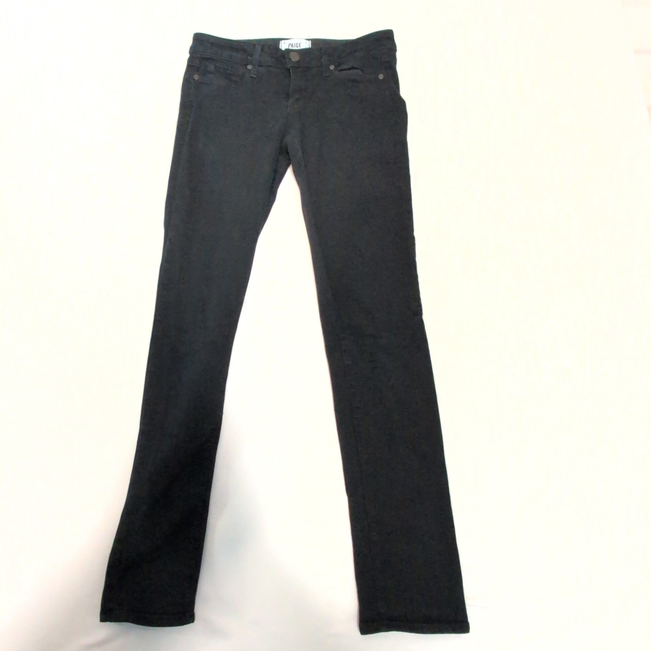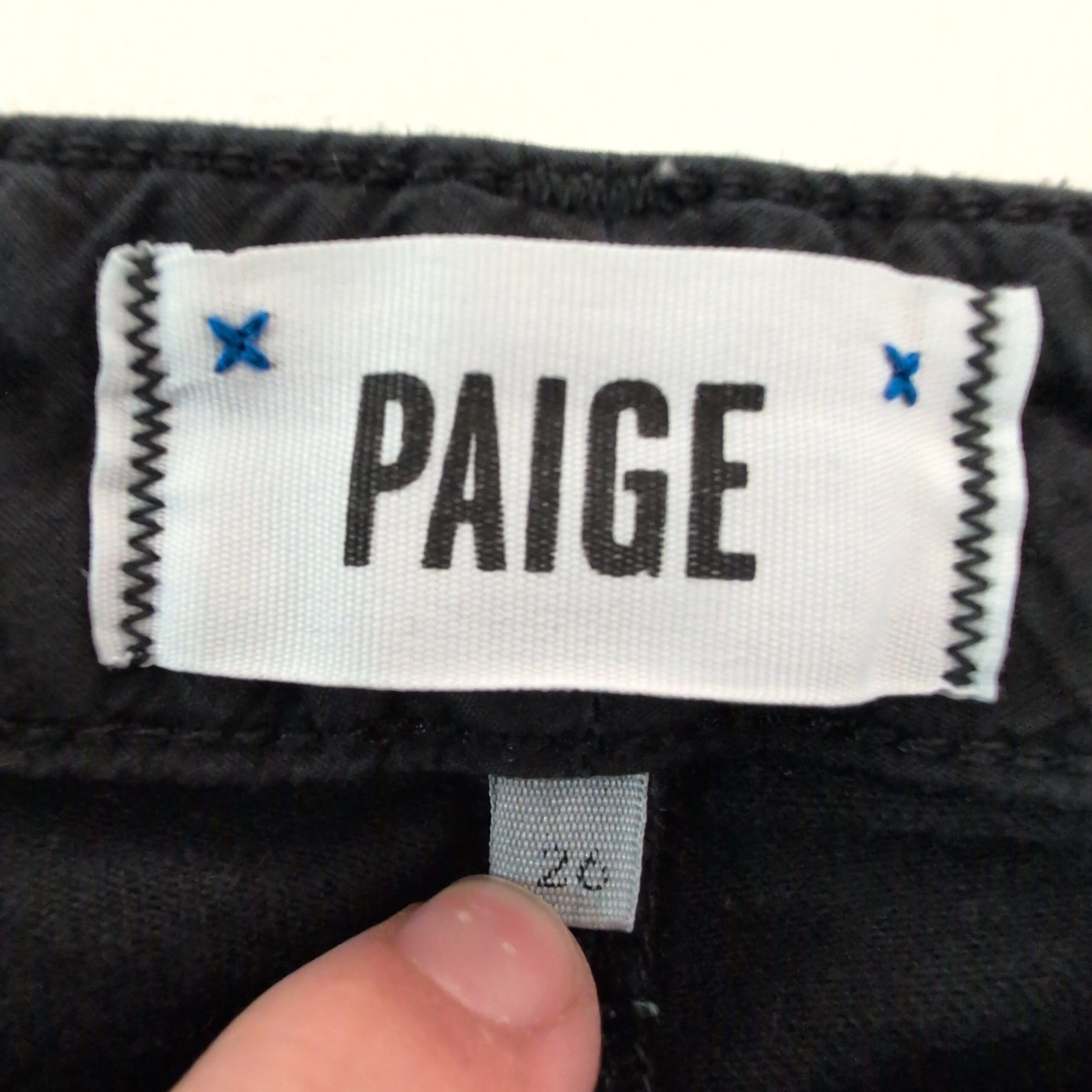Paige Skyline Skinny black women’s jeans, size 26. Classic skinny silhouette in a clean black wash with five-pocket styling and tonal hardware. Gently used and in good condition with no flaws noted. Versatile wardrobe staple that can be dressed up or down — pairs well with boots, flats, or heels.