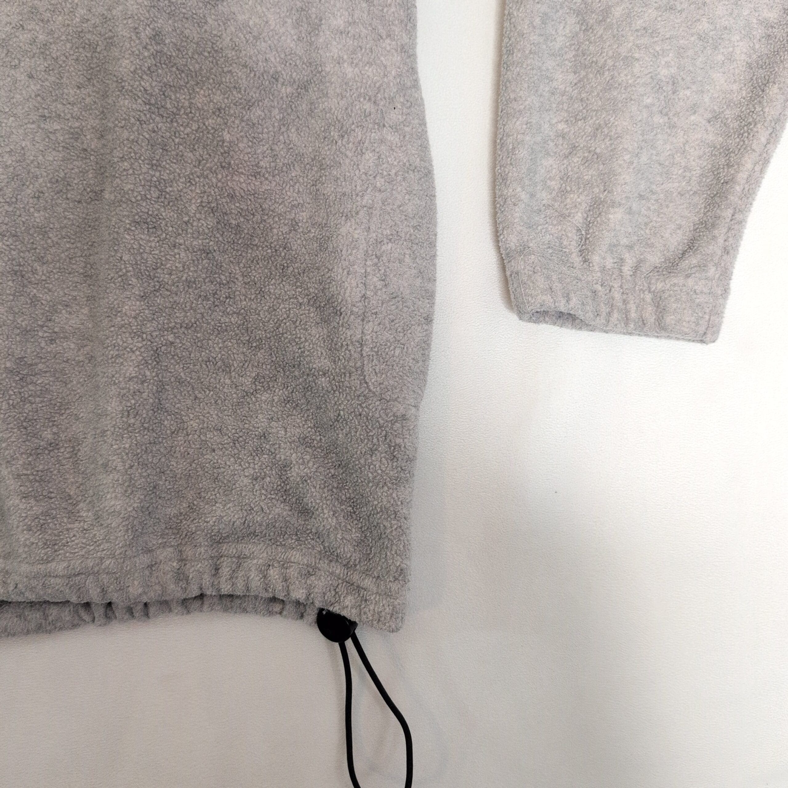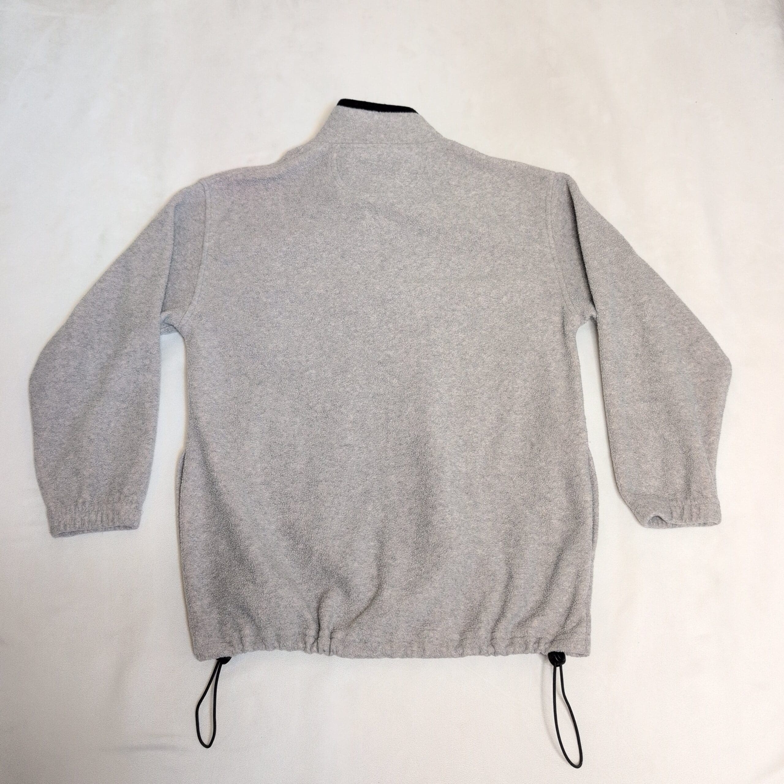 Palmettos women’s gray half-zip fleece pullover in size S. Soft, midweight fleece with a funnel collar and black contrast interior, half-zip closure, elastic cuffs, and adjustable drawcord hem for a customizable fit. Clean, gently used condition with no major rips, tears, or stains; typical light wear may be present. Perfect for layering on cool days or casual weekend wear.