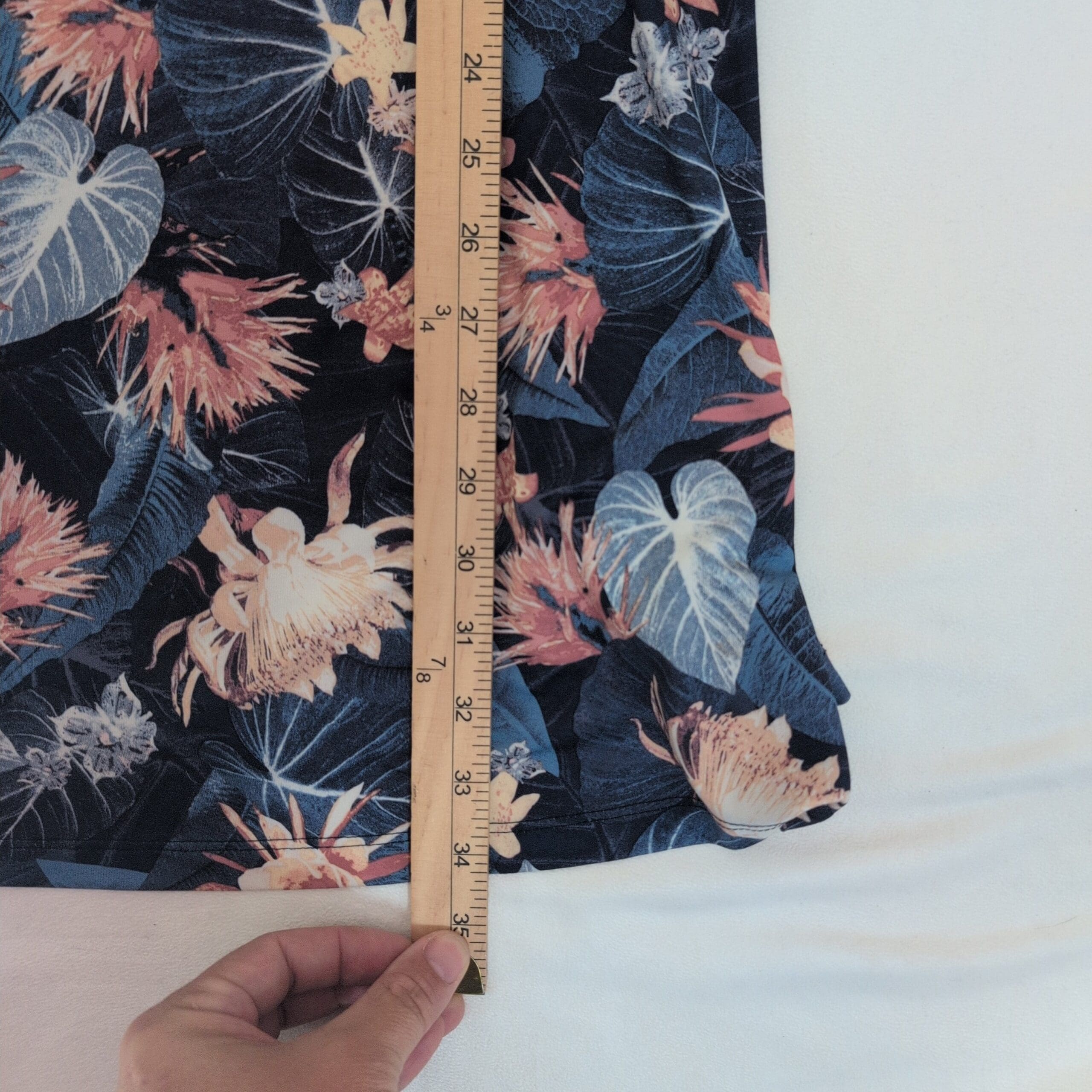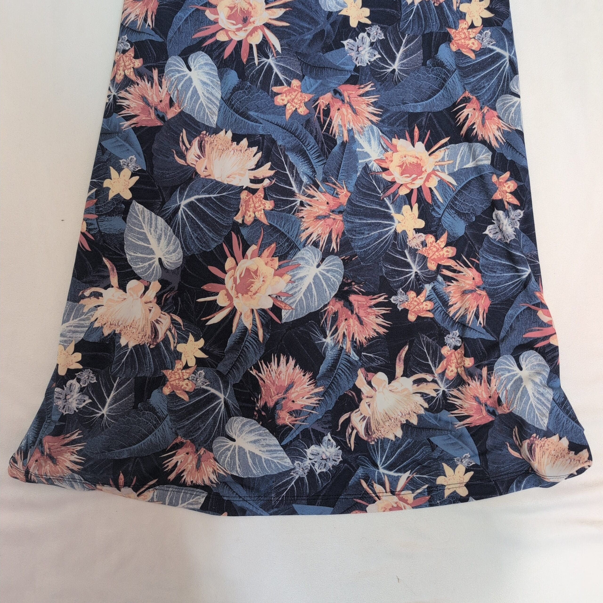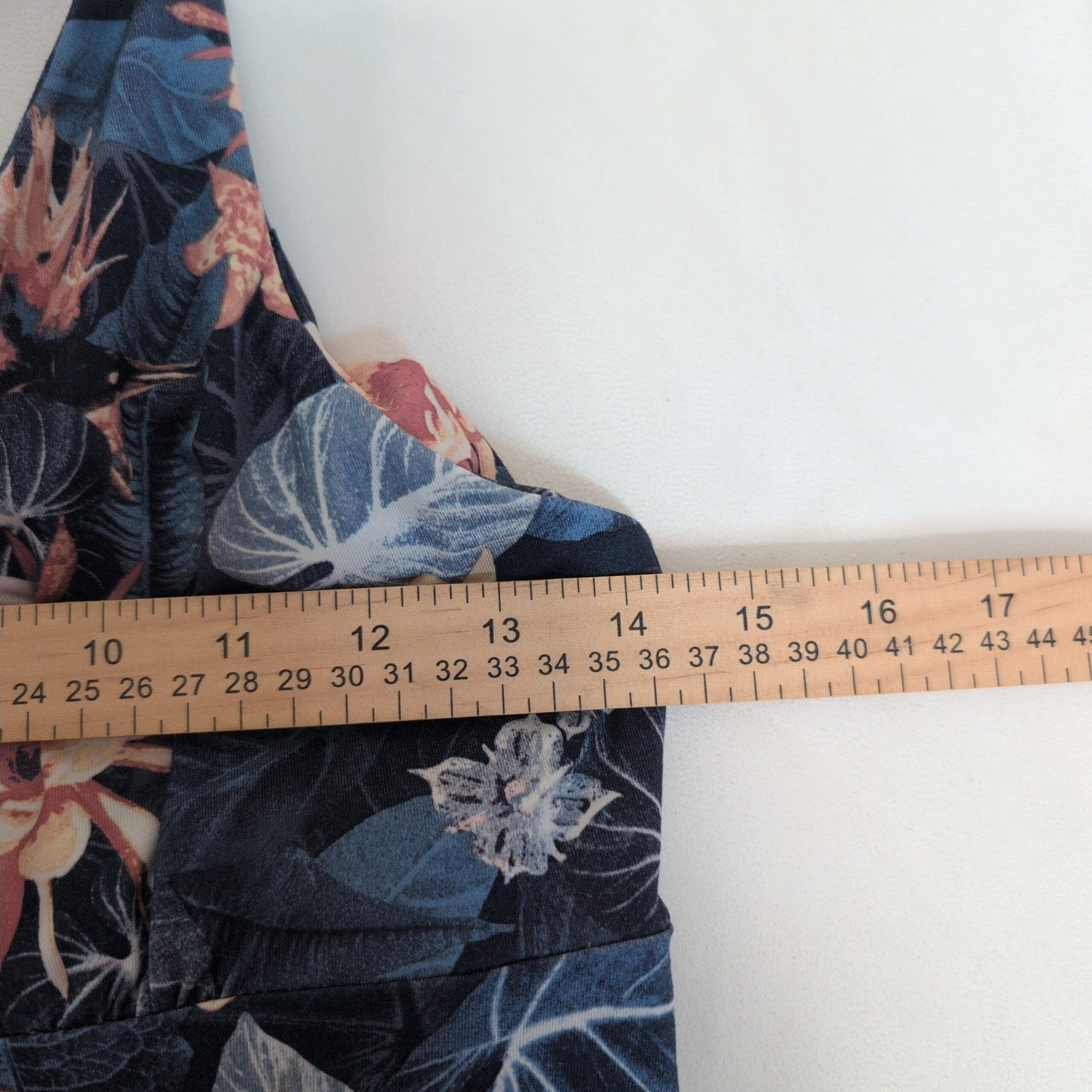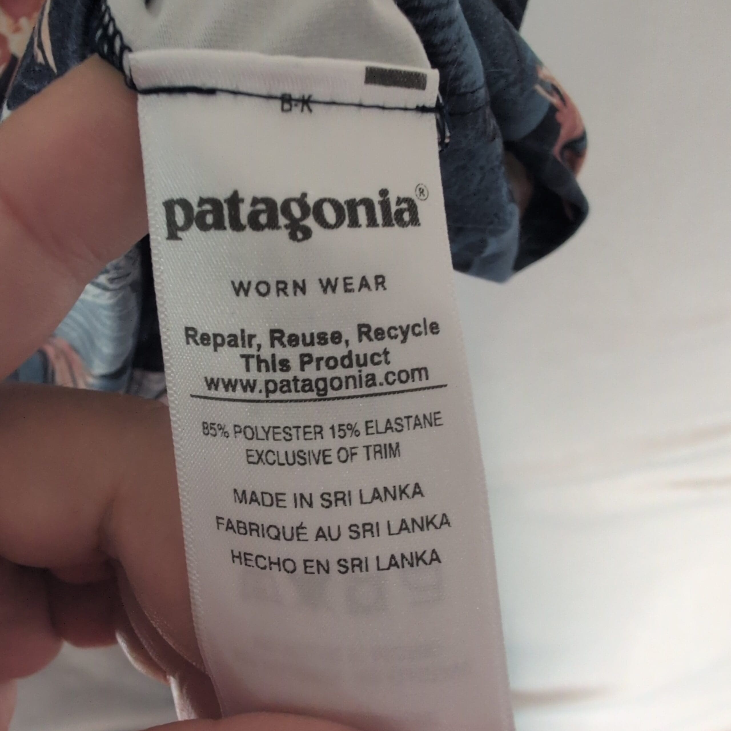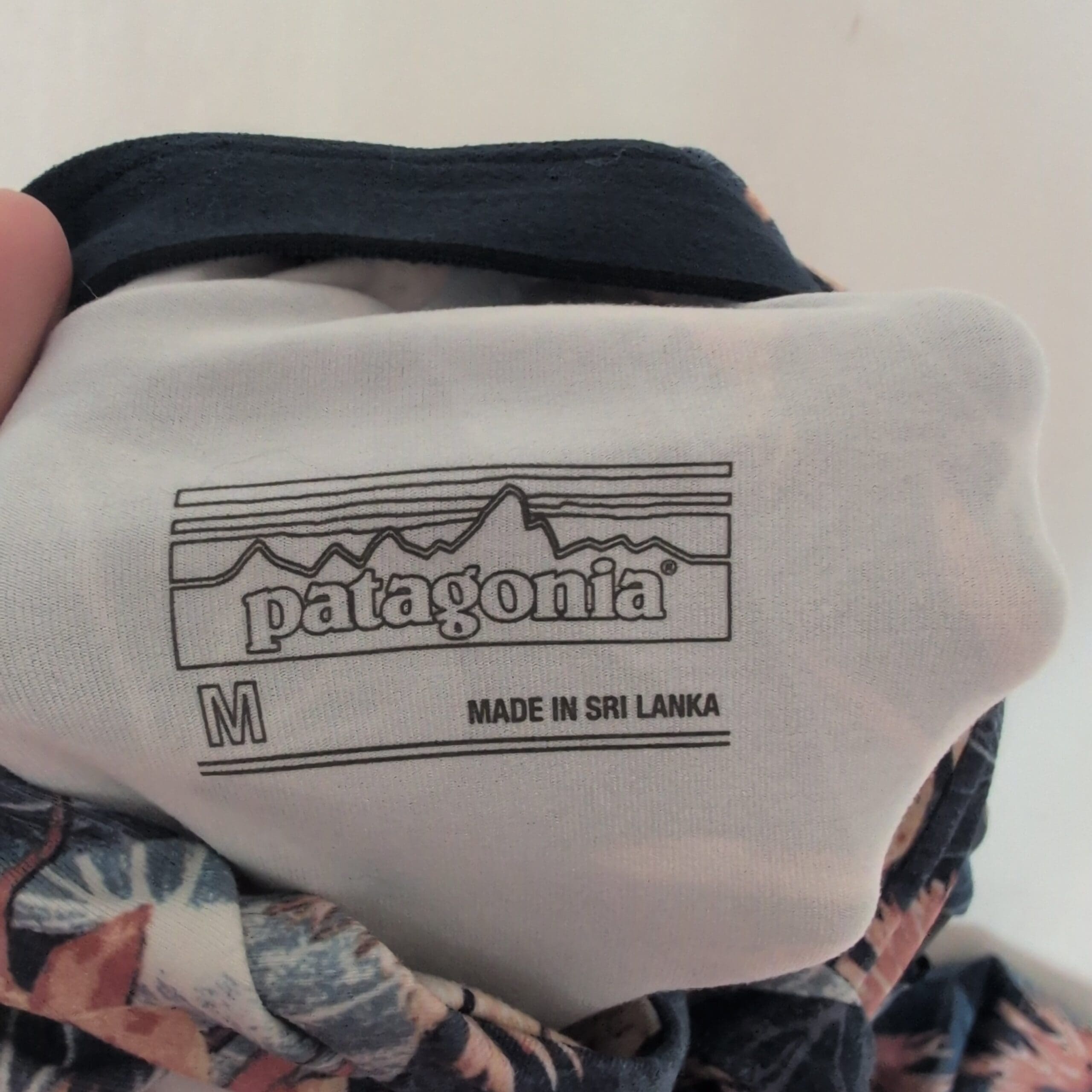 Lightweight Patagonia women’s sundress in a navy-blue tropical floral print. Features a fitted bust with an empire seam, crossed back straps for added support, and a relaxed A-line skirt that drapes nicely for casual days or travel. Size M (standard). Fabric has a soft hand and comfortable stretch—see photos for pattern and condition details.