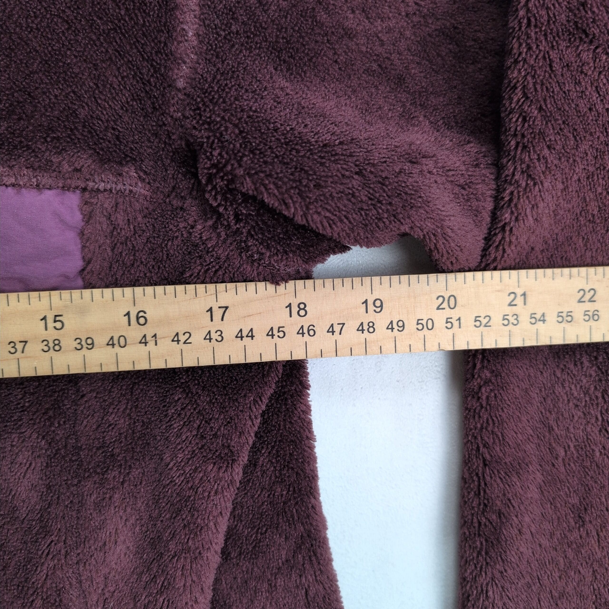 Condition: Fair pre-owned — noticeable piling and worn nap across the body and sleeves with light fading consistent with regular use. No major rips, holes, or visible stains. Sold as-is.