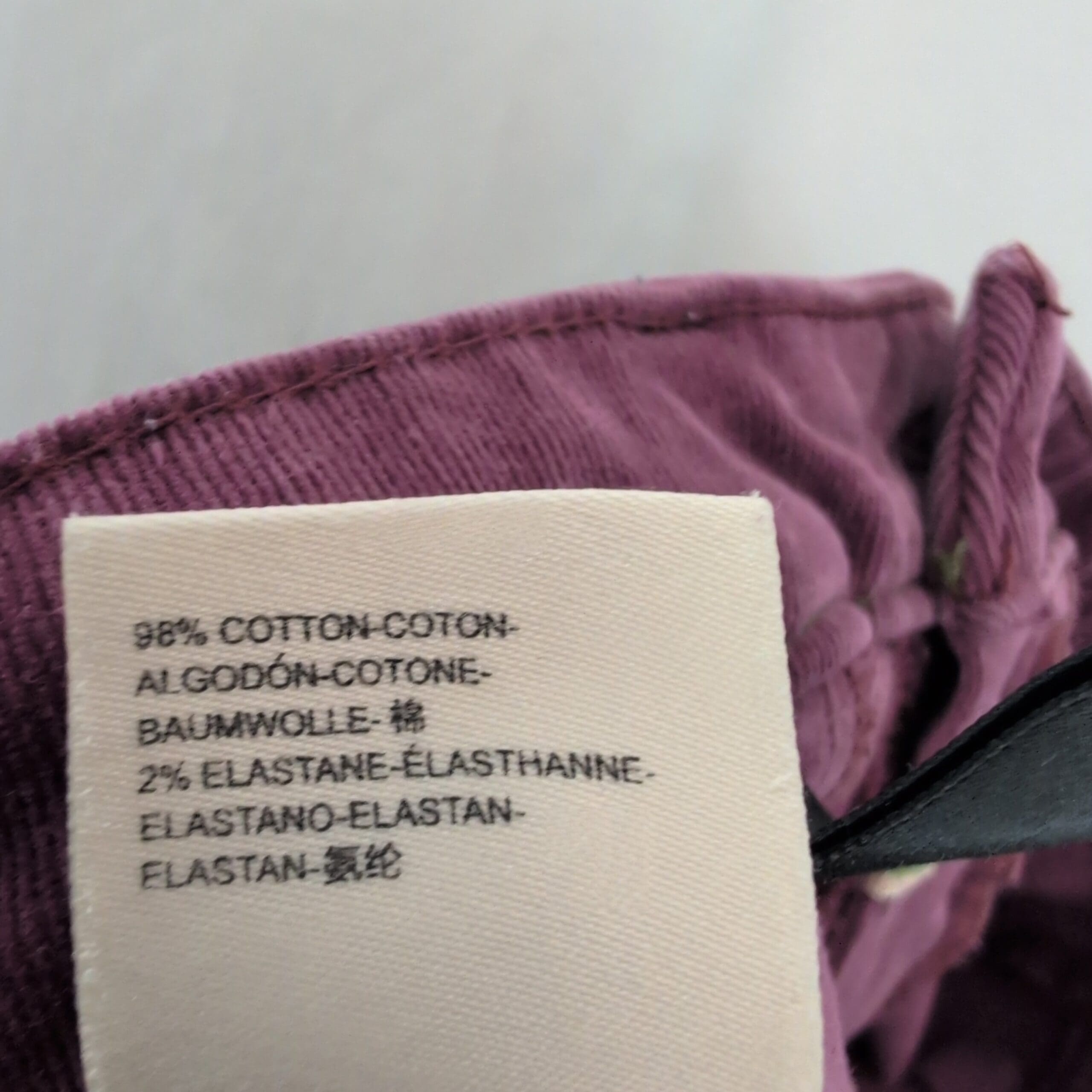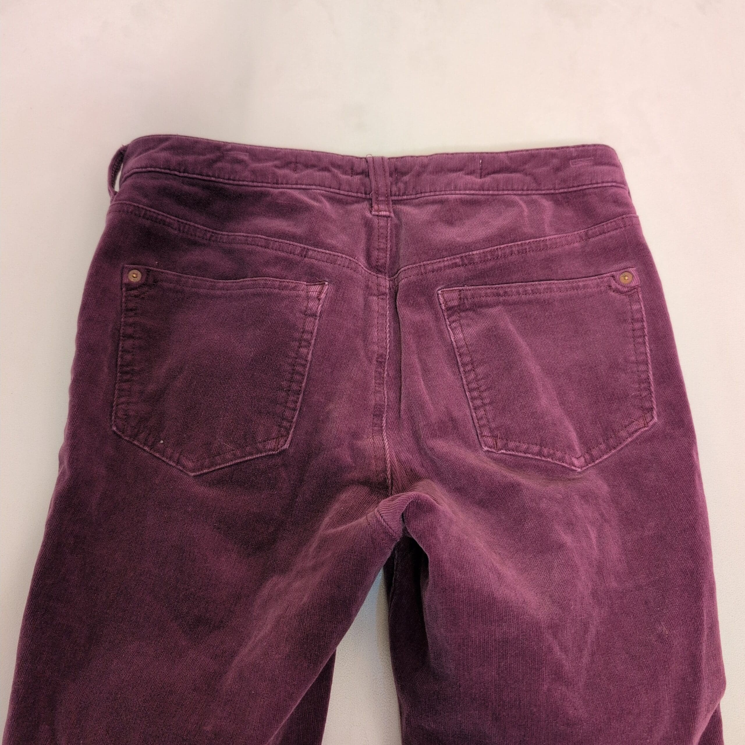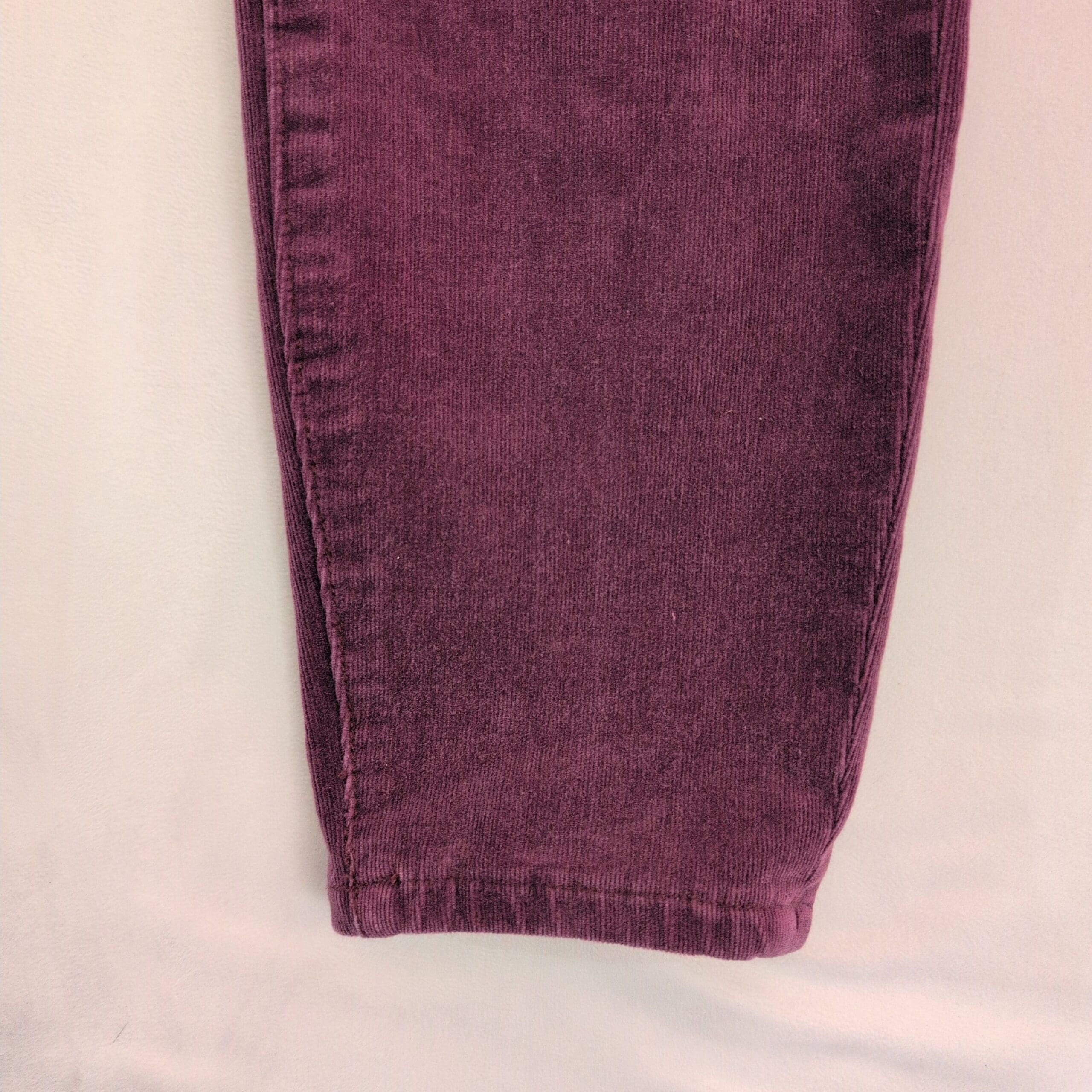 Pilcro corduroy skinny pants in a rich pink-purple color. Size 29 (women). Slim, tapered silhouette with a five-button front closure and classic five-pocket styling. Soft corduroy fabric provides texture and seasonal warmth while maintaining a polished casual look. Good used condition — free of major rips, tears, or stains; typical light wear may be present. Color may vary slightly from photos due to lighting.