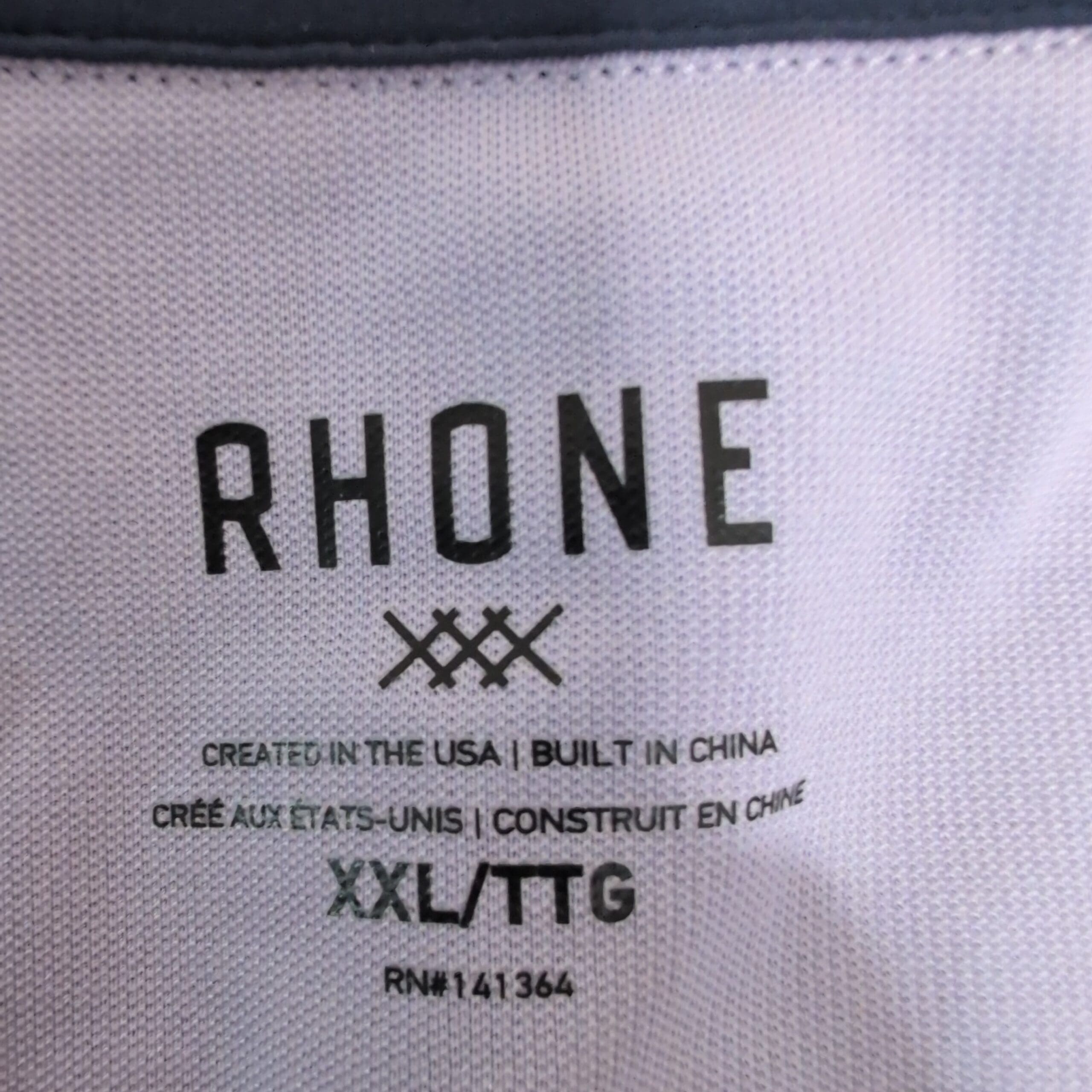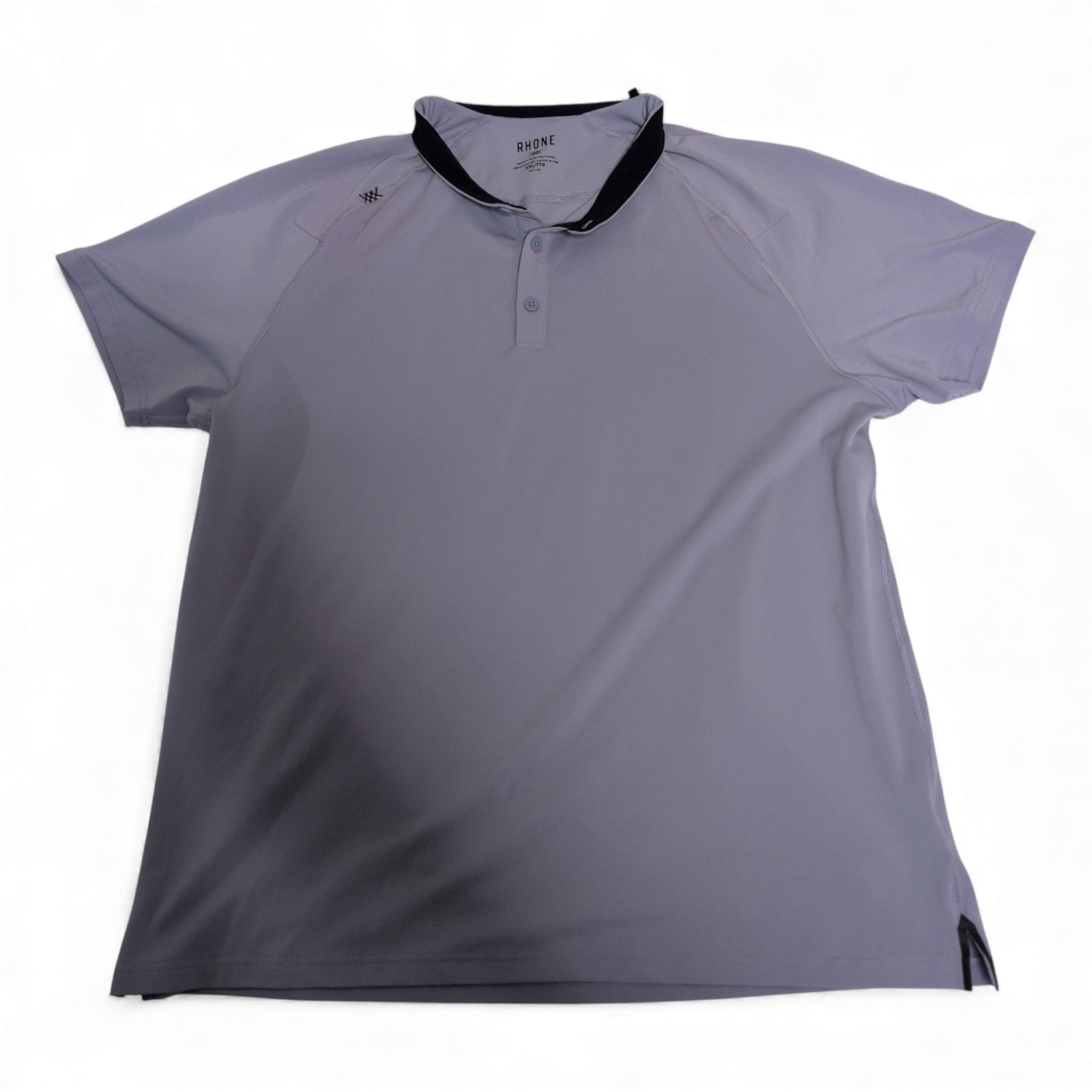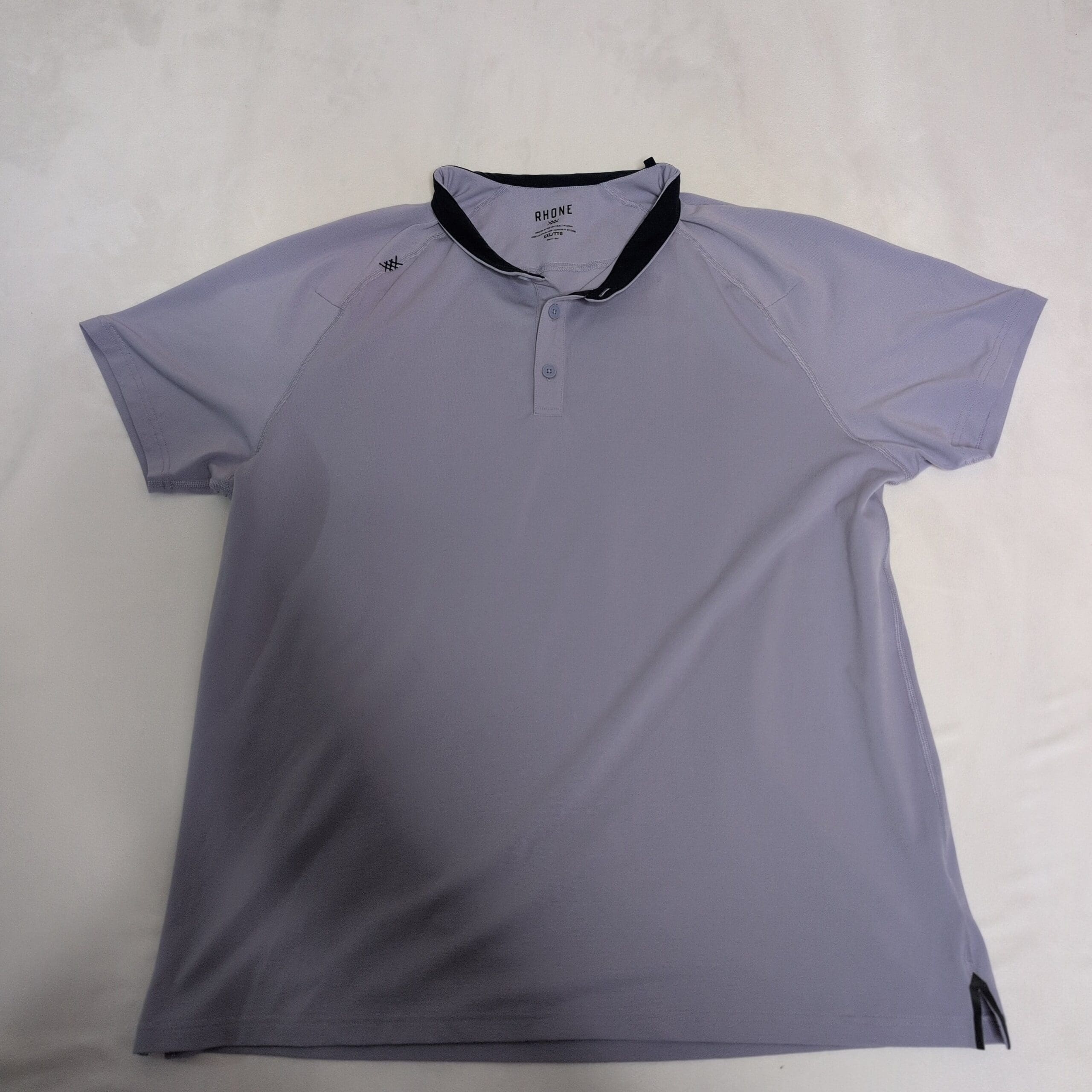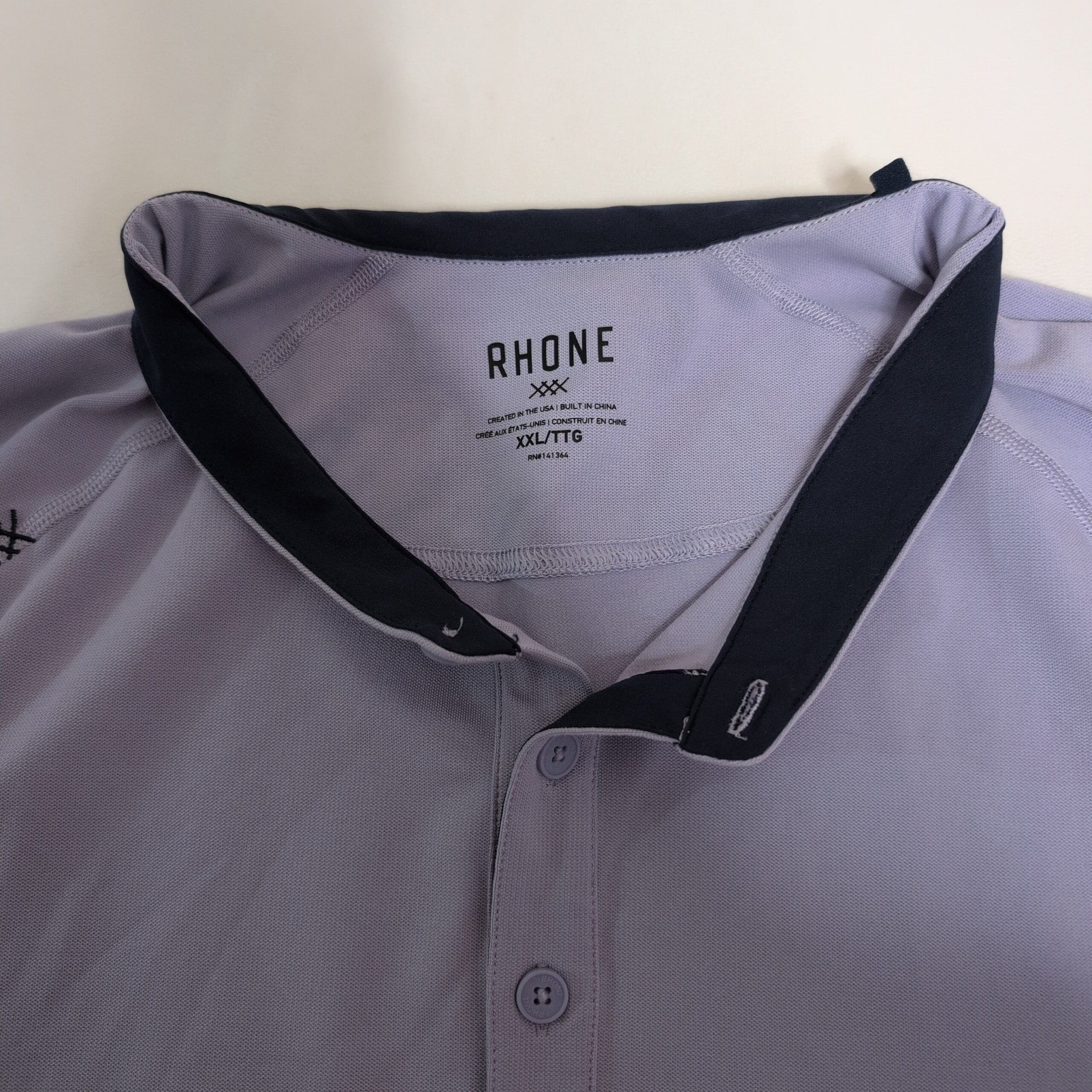 Rhone men’s purple performance polo in XXL (Big & Tall). Short sleeves with a clean, modern silhouette, button placket, and contrast black inner collar. Subtle Rhone branding at the neck and a small embroidered mark on the shoulder. Side vents with a reinforced tab at the hem for added movement. Performance knit with stretch—great for golf, travel, or everyday wear. Pre-owned; please review photos for condition and details.