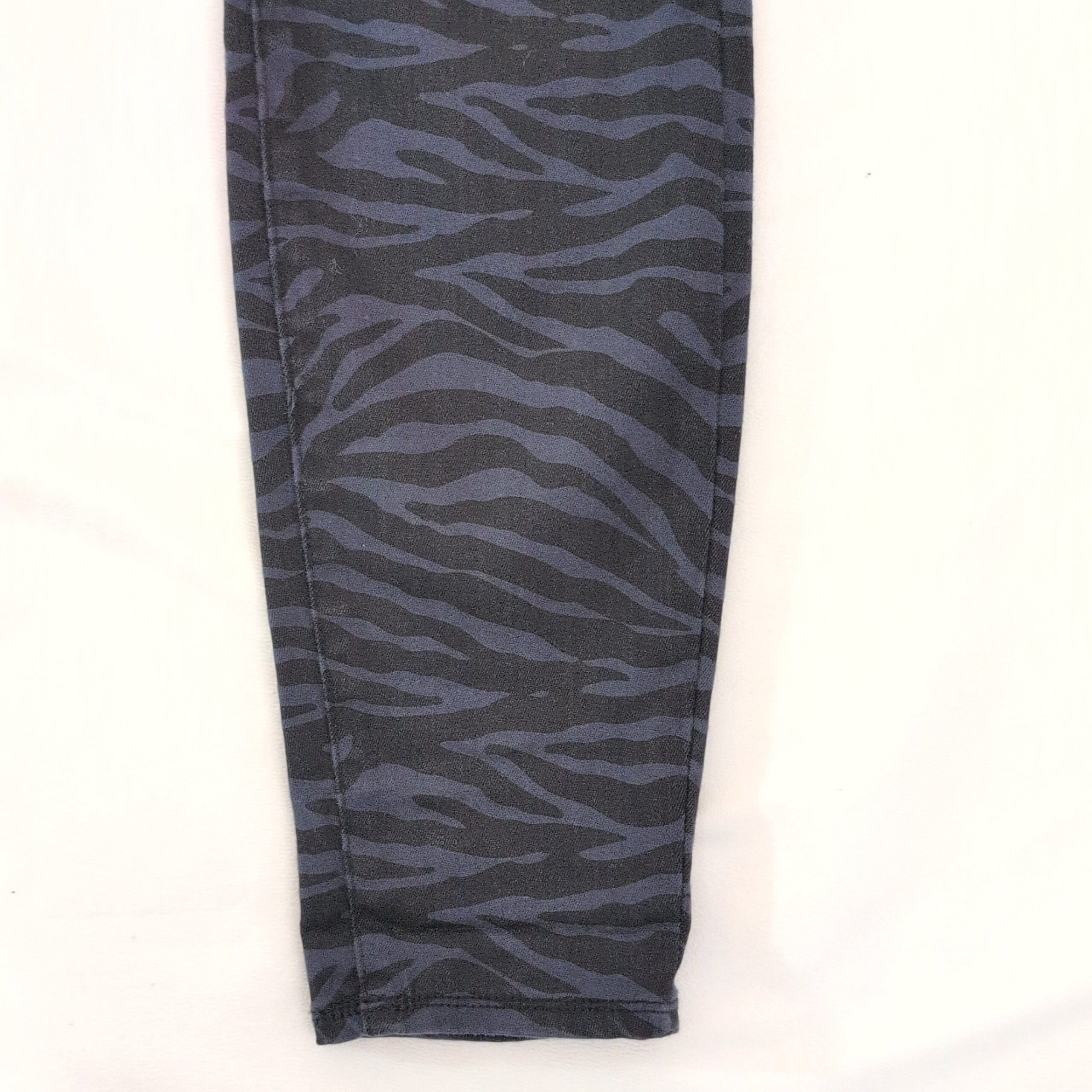 Rock & Republic women’s blue zebra-print jeggings in Size 8 (standard). Stretchy pull-on silhouette with a wide elastic waistband and a slim, ankle-length cut that flatters the leg. Bold navy/black animal print makes these a versatile piece for casual or dressed-up looks. Gently used — free of major rips, tears, stains, or flaws; typical light wear may be present. Please review photos for details.