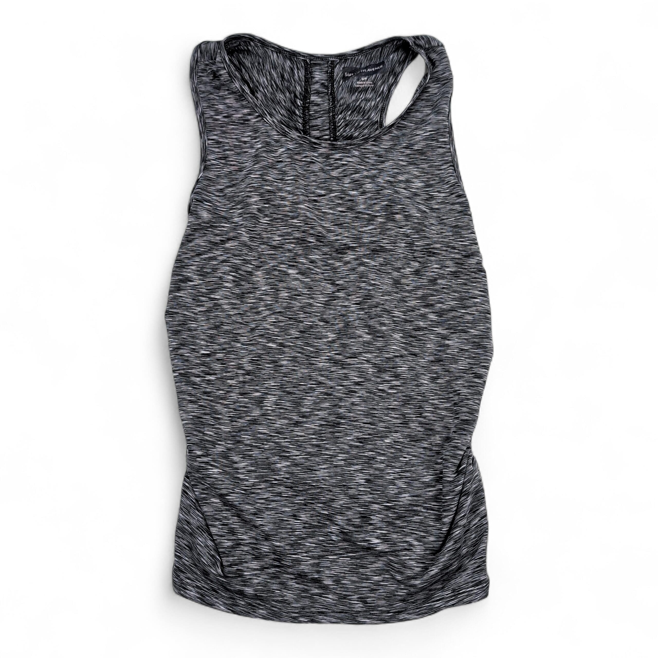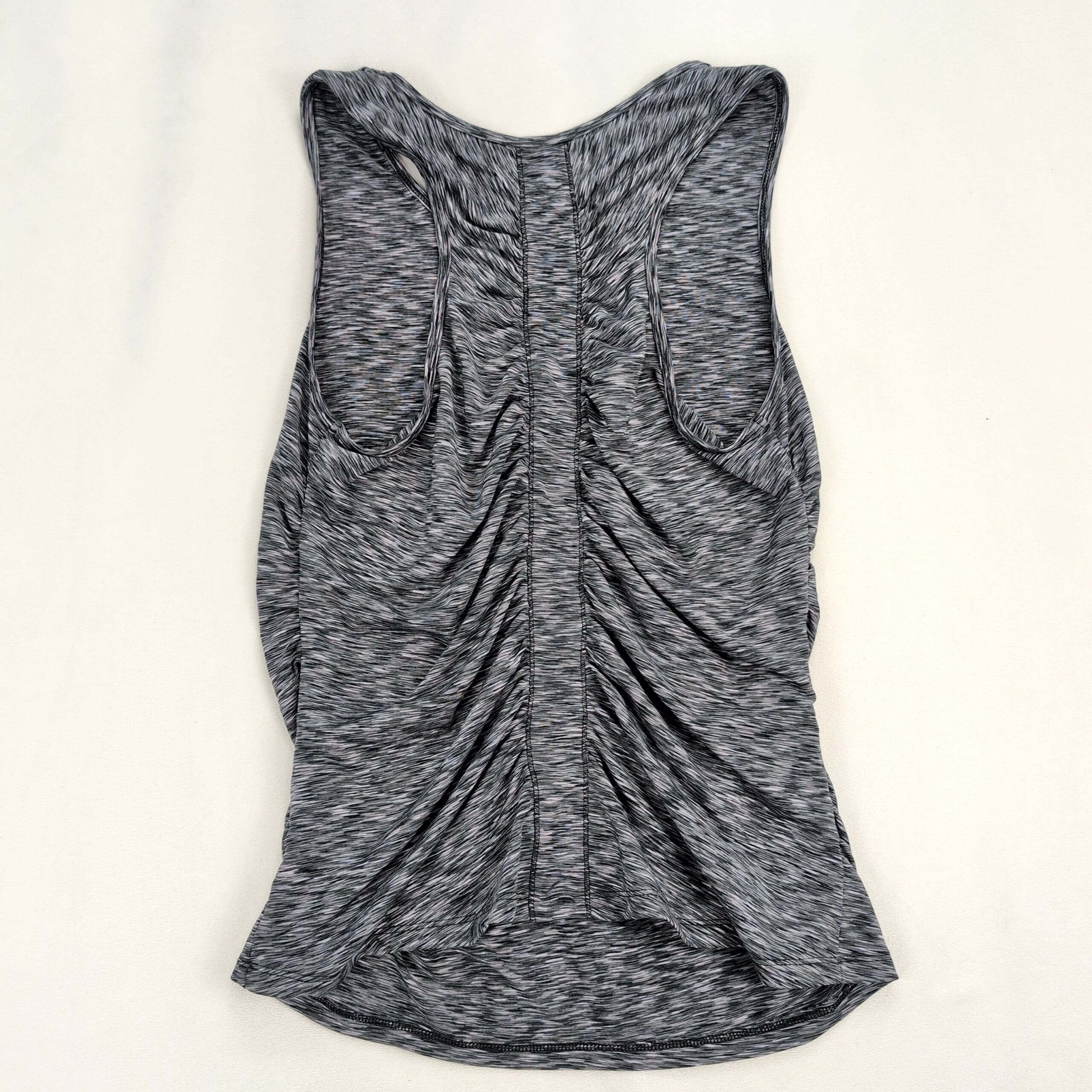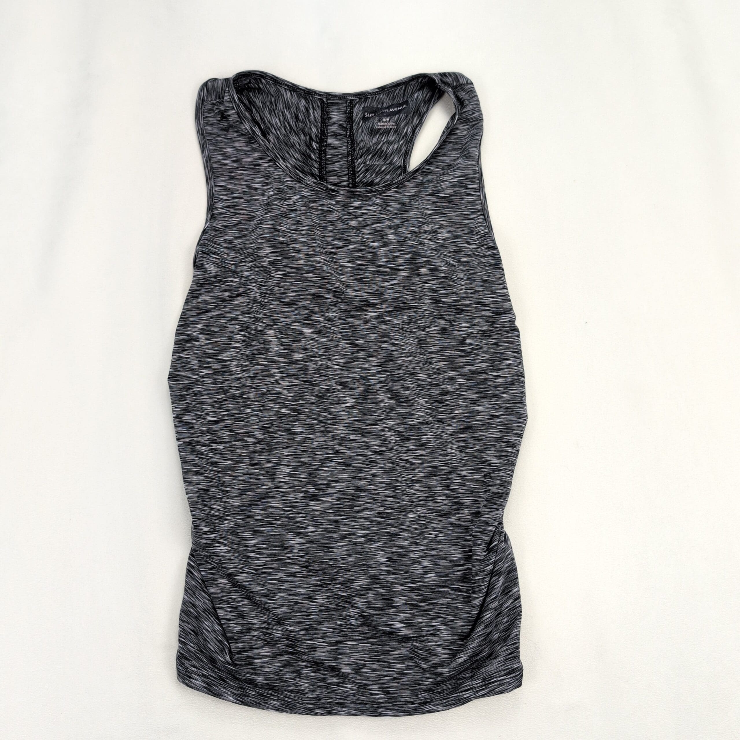 Saks Fifth Avenue women’s racerback tank top in Size S. Gray/black space-dye pattern with a scoop neckline and racerback silhouette for a sporty, streamlined look. Lightweight, stretchy knit with a breathable feel — great for workouts, yoga, or everyday layering. Excellent used condition; free of major rips, tears, stains, or flaws. Typical light wear consistent with normal use.
