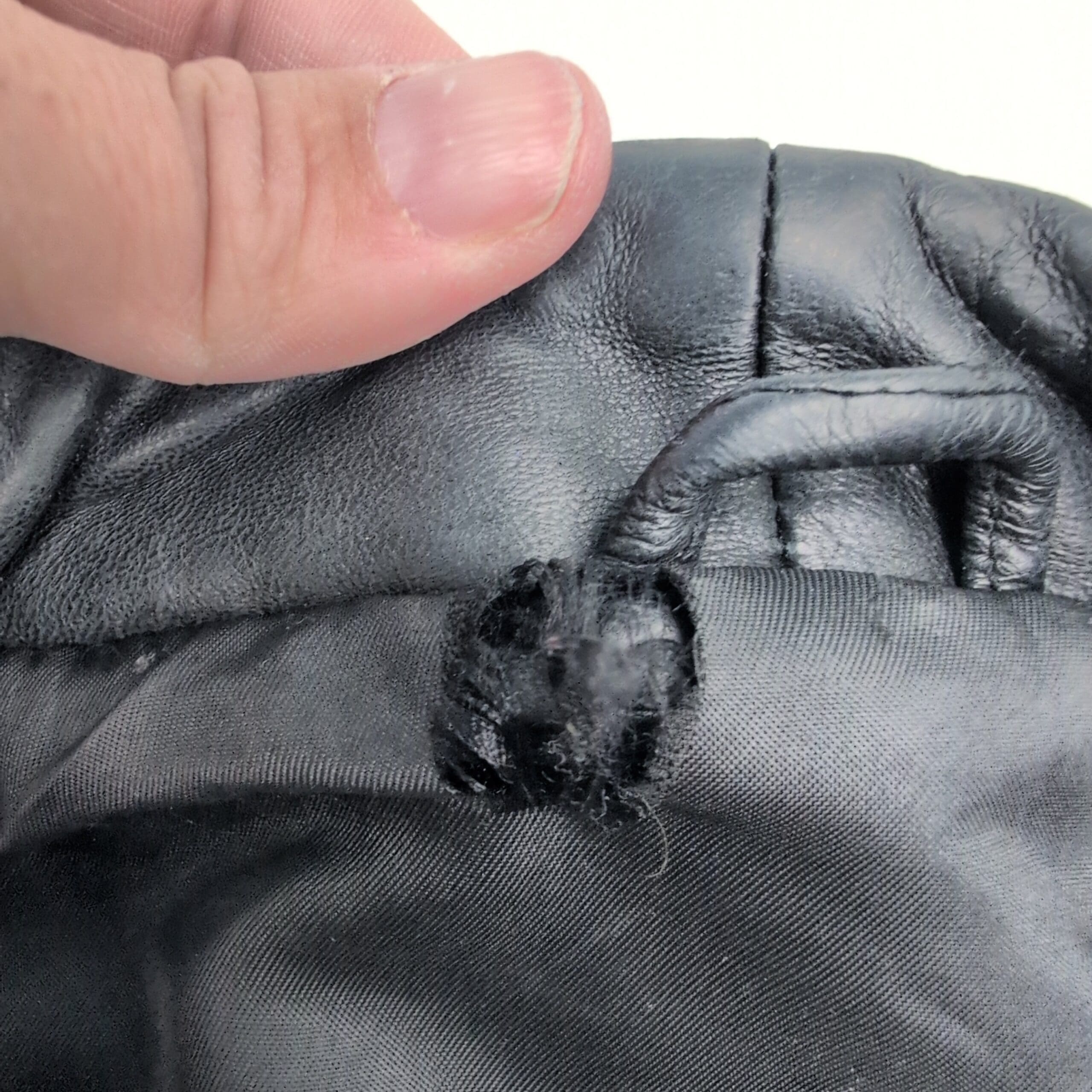 Condition: Fair used condition. Exterior leather is in good shape with normal surface wear; no major rips, stains, or exterior flaws. Inside lining has a handful of holes/tears (see photos) and shows wear. Sold as-is; please review images for lining detail.