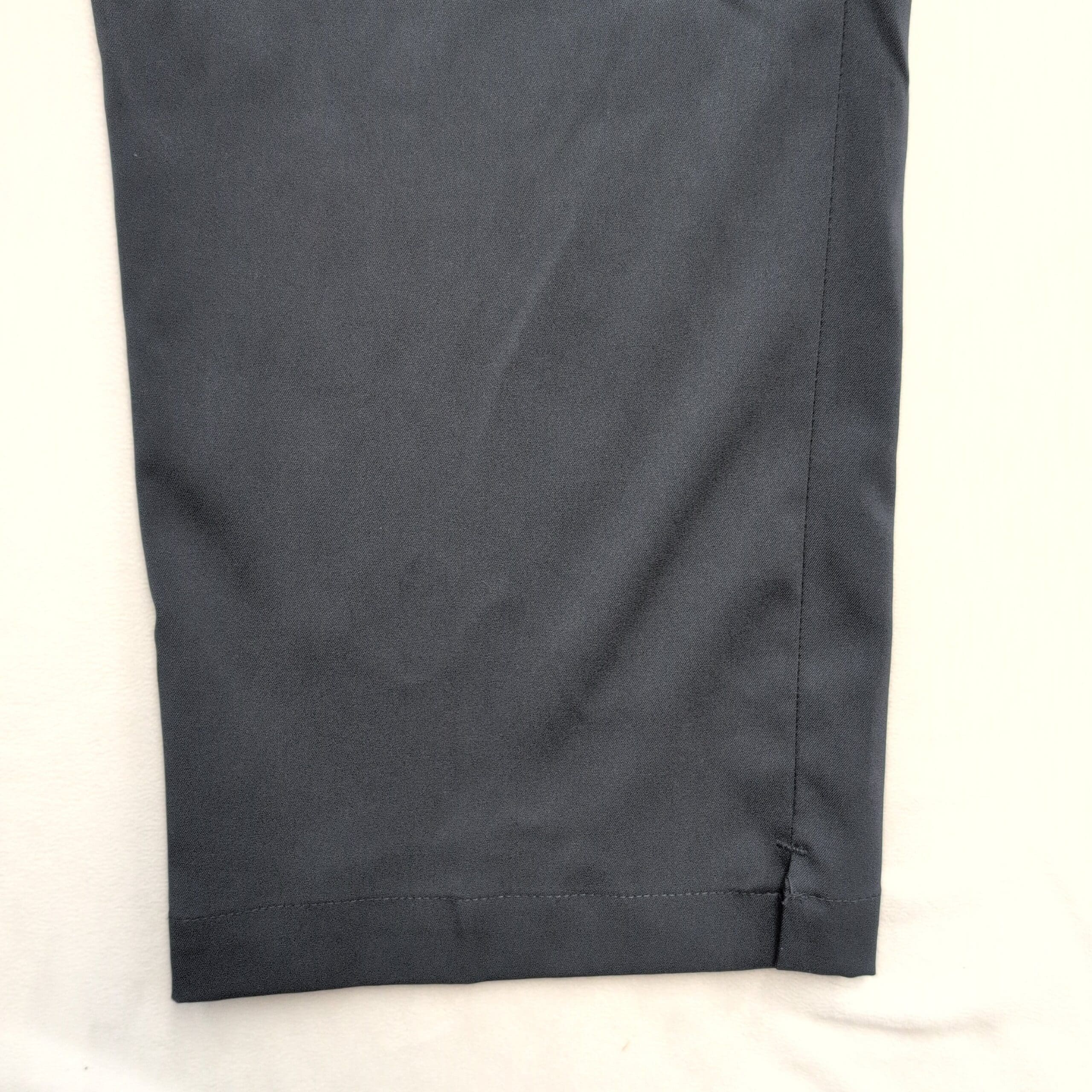 Slazenger men’s dress pants in charcoal, size Waist 34 (standard). Classic flat-front, straight leg design with belt loops and zip-fly with button closure for a clean, tailored look. Durable, versatile pair suitable for office or smart-casual wear. Excellent used condition — free of major rips, tears, stains, or flaws; shows only typical light wear from previous use.