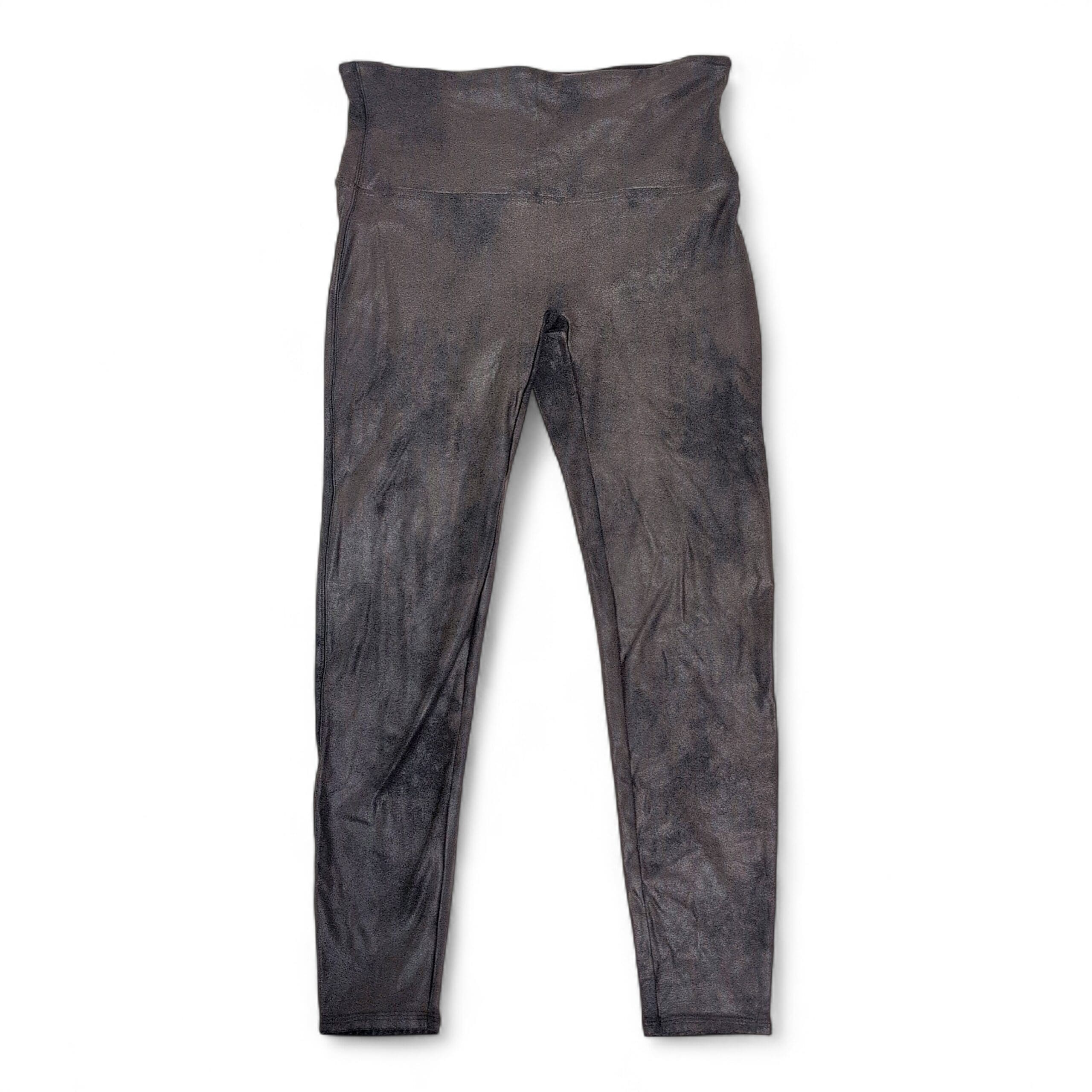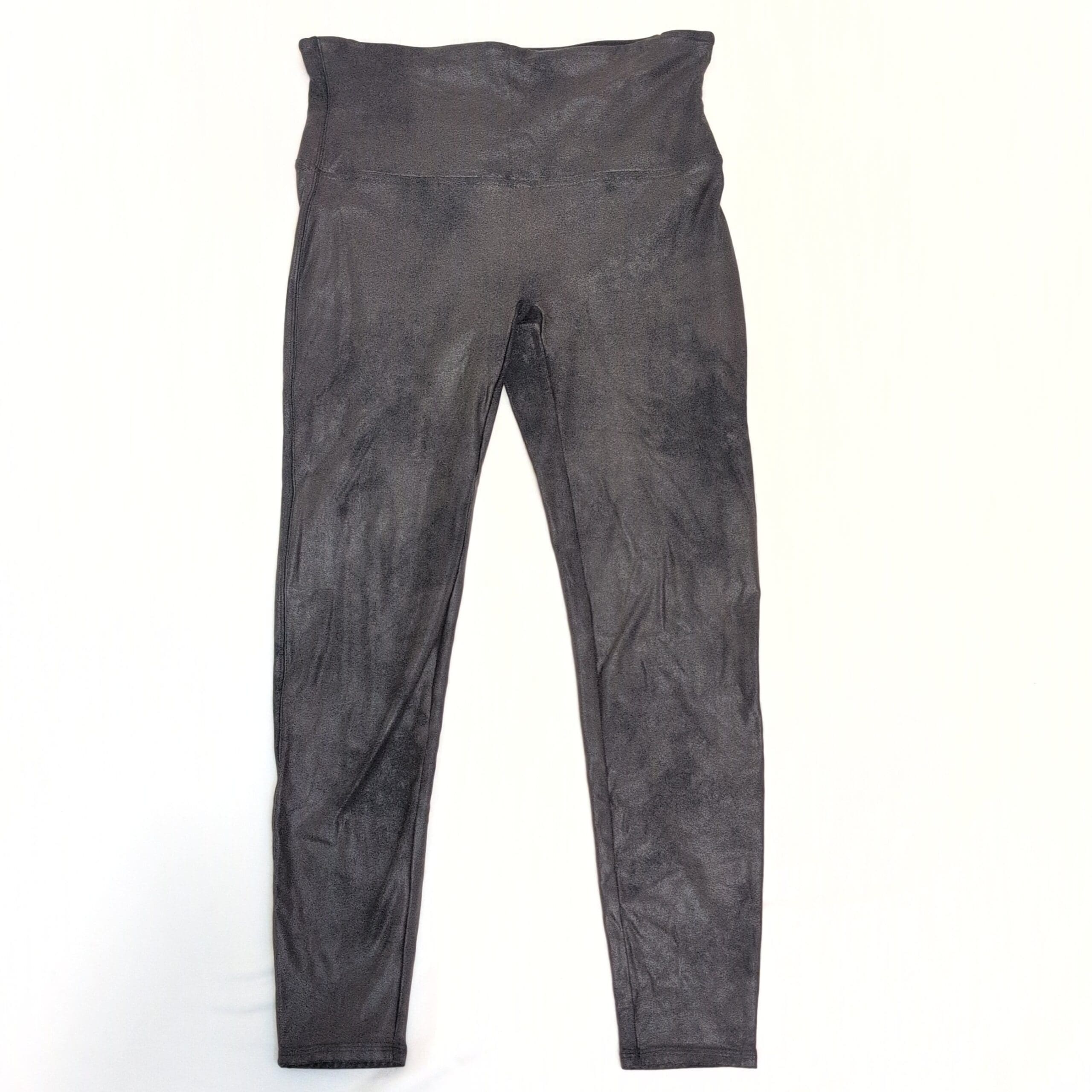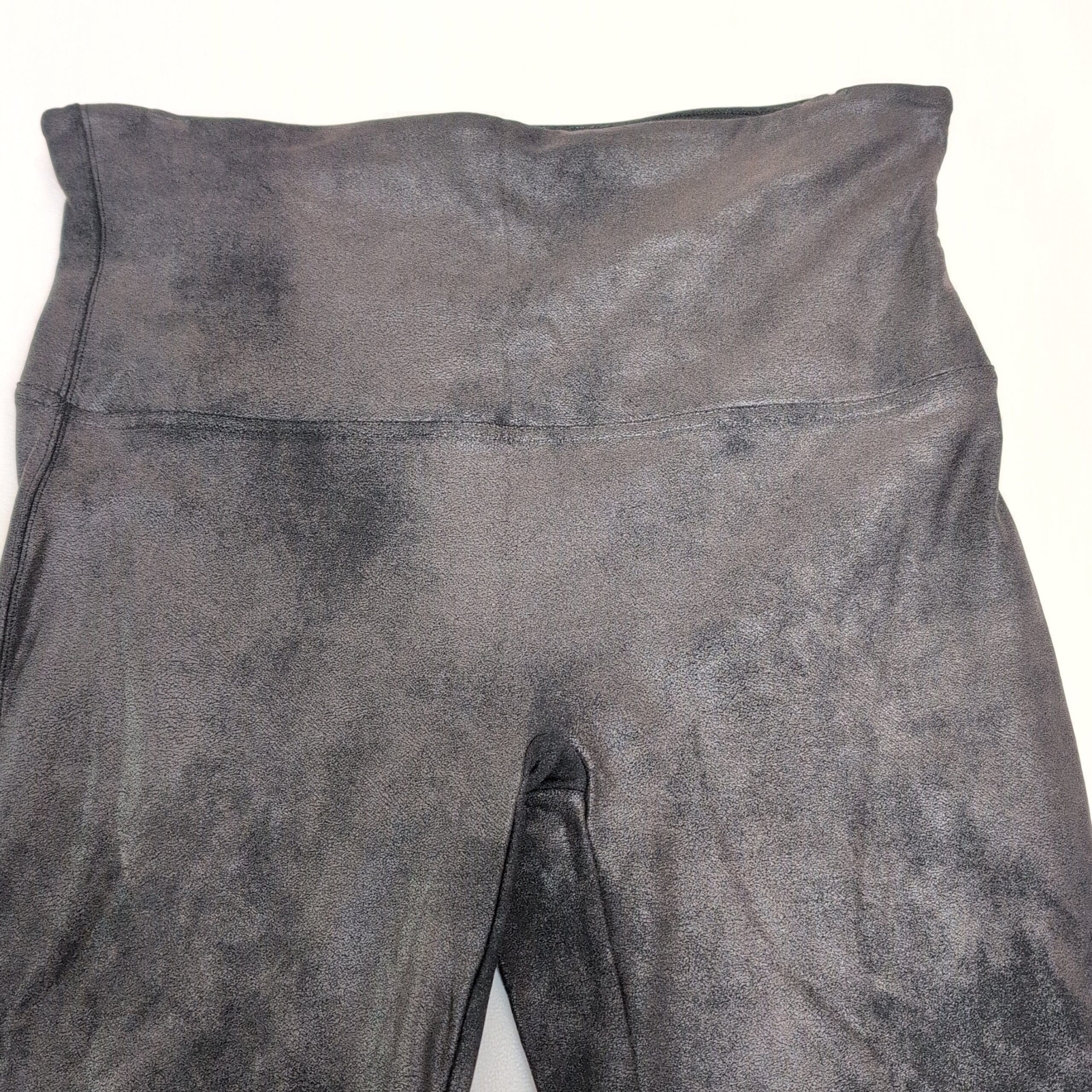 Classic black Spanx high-waist shaping leggings in size 2X (plus). These full-length leggings feature a supportive wide waistband designed to smooth and flatter the midsection while providing stretch for comfortable all-day wear. Gently used and free of major rips, tears, stains, or flaws; typical wear from normal use may be present—please review photos for condition details. Versatile for everyday outfits or dressed-up looks.