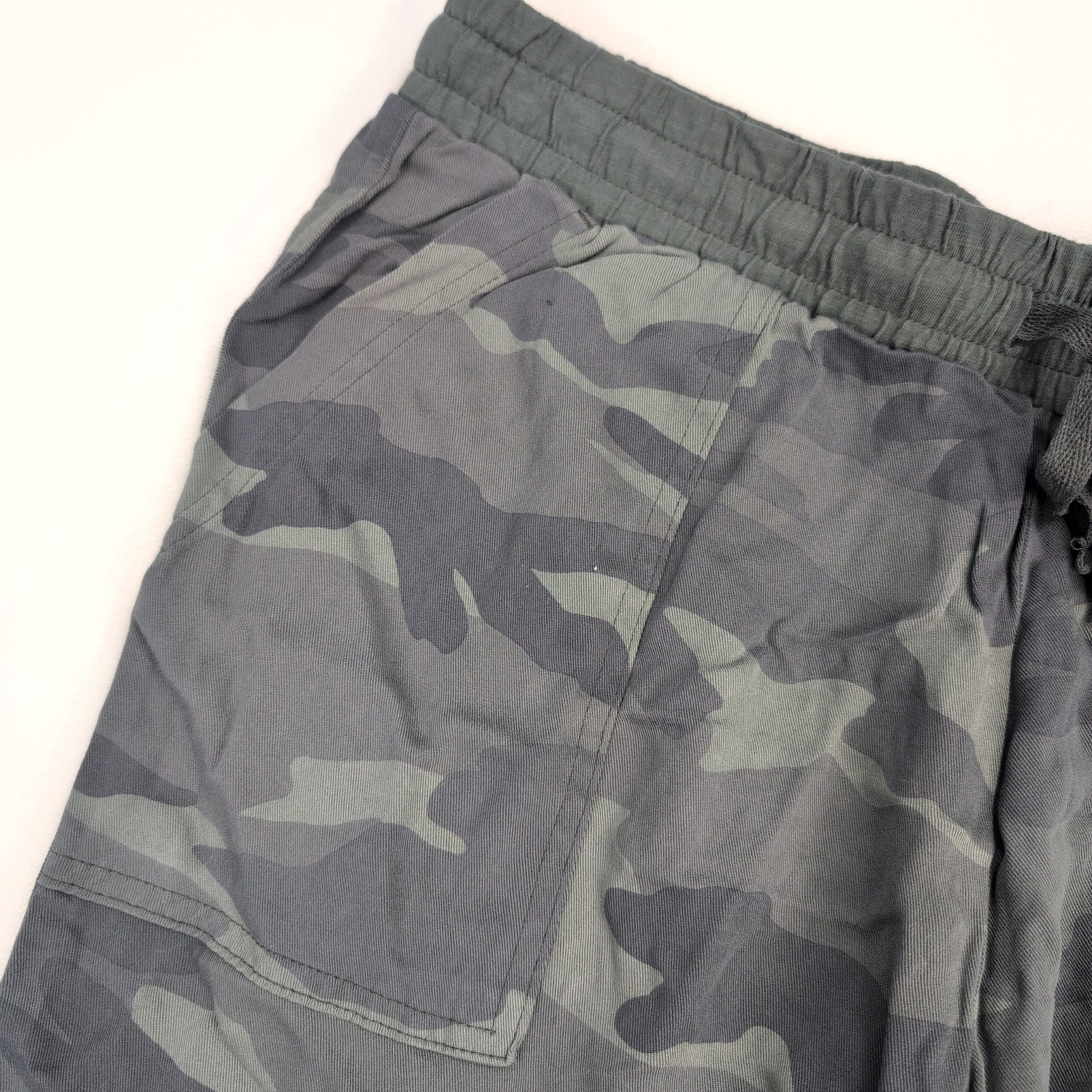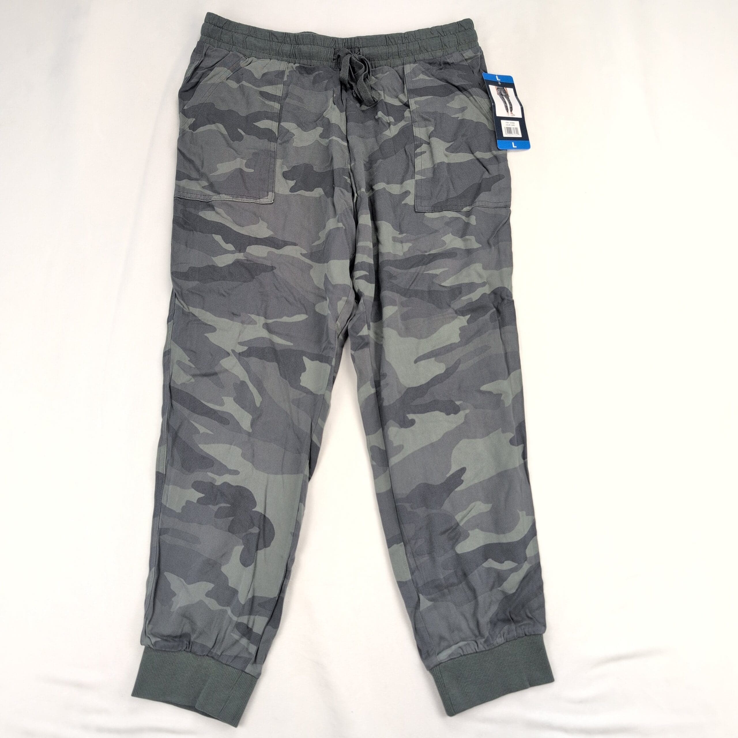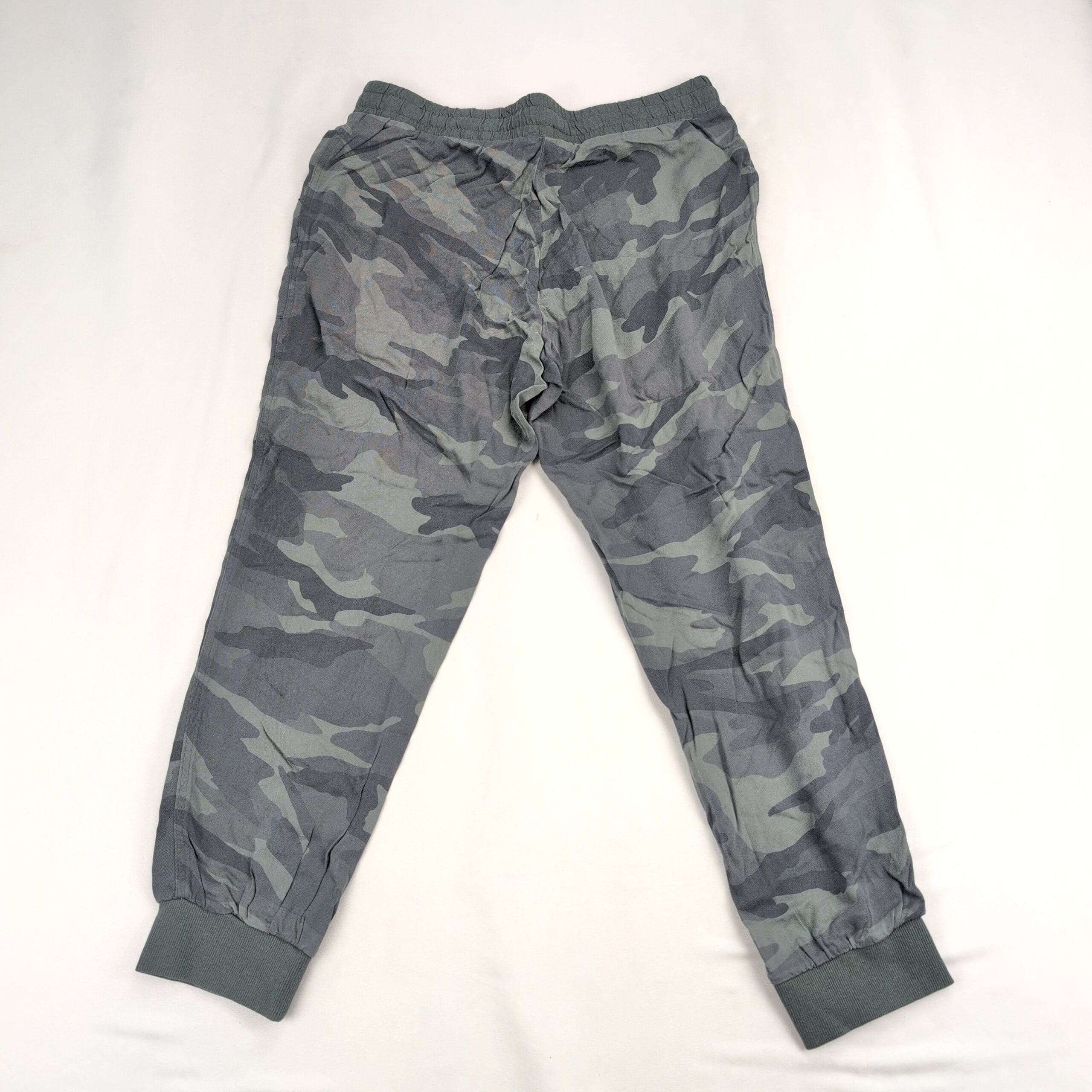 Splendid women’s camo joggers in size L. Relaxed, tapered silhouette with an elastic drawstring waistband, front patch pockets, and ribbed ankle cuffs for a comfortable, casual fit. Excellent used condition — free of major rips, tears, stains, or flaws, though typical light wear may be present. Versatile piece for everyday athleisure or travel.