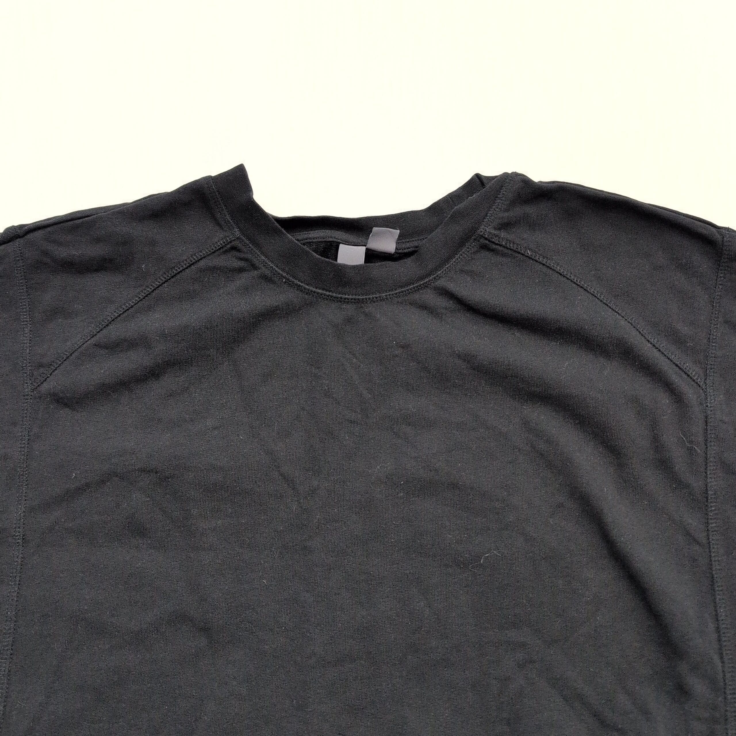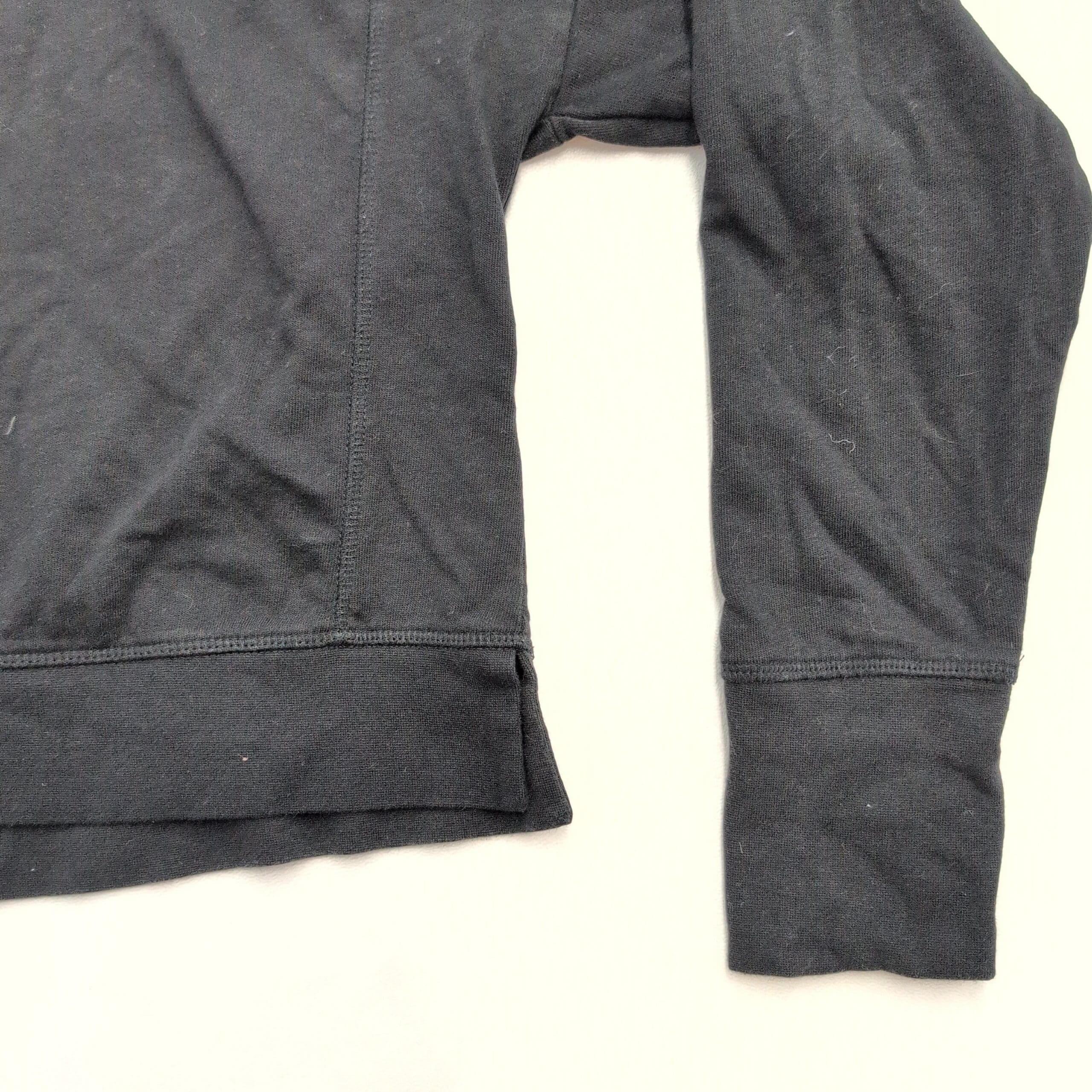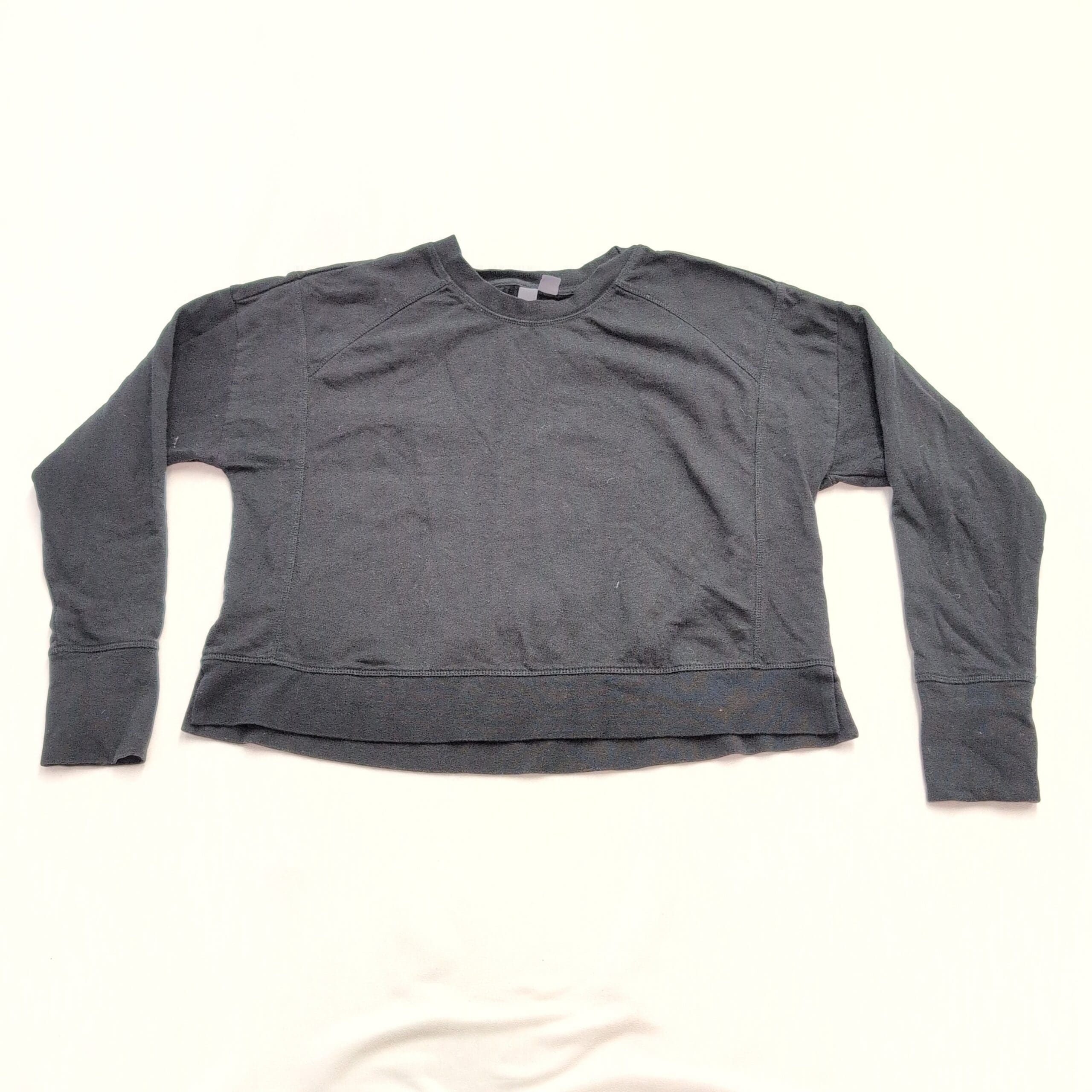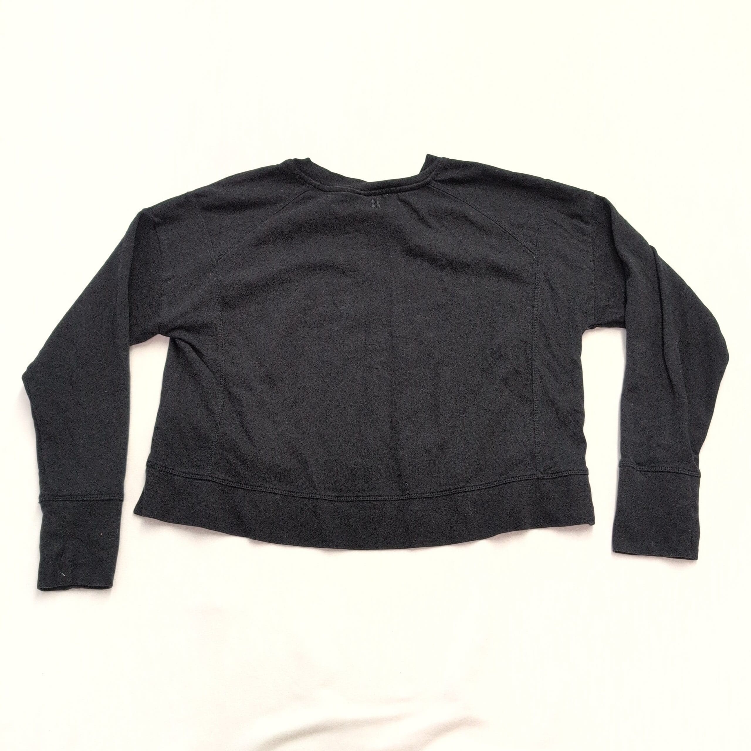 Black Sweaty Betty crew sweatshirt, women’s size 10. Relaxed, slightly cropped pullover with crew neckline and long sleeves — a versatile athleisure staple. Features ribbed cuffs and a banded hem with subtle seam detailing for a clean, classic look.