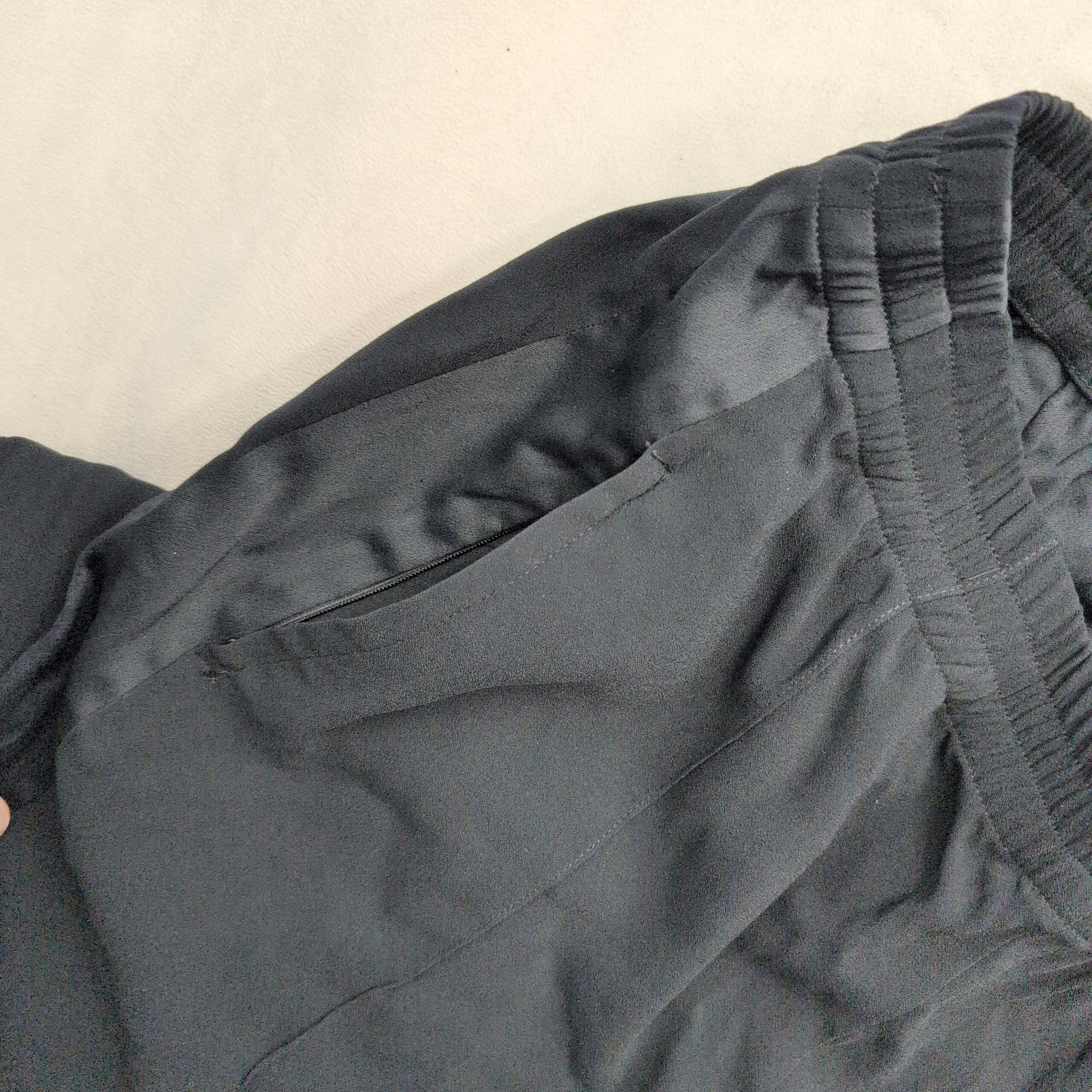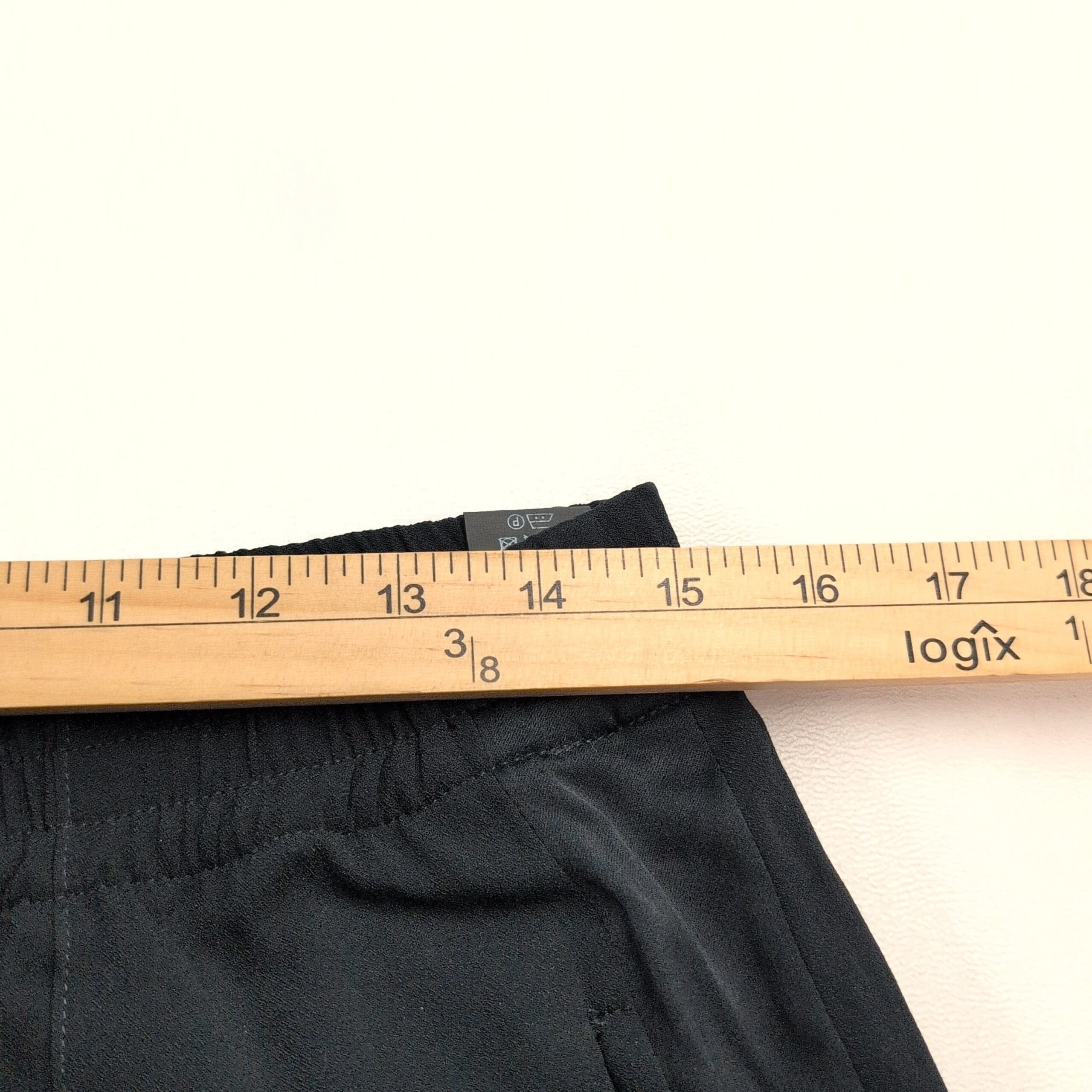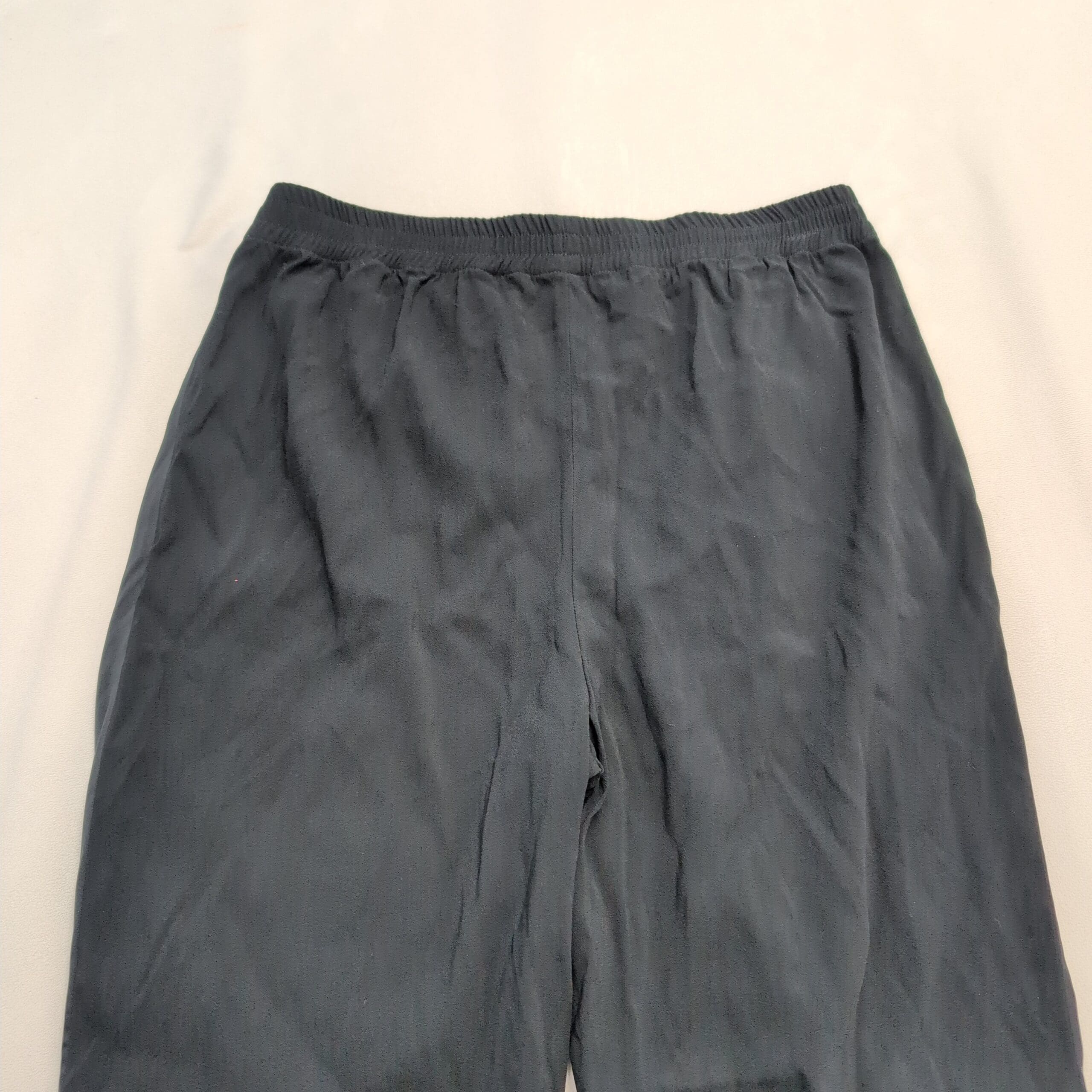 Theory women’s black pants, size 10. Textured lightweight fabric with tonal tuxedo-style side stripe and stitched front creases for a polished, tailored look. Elasticized waistband with front pockets and a straight-to-tapered leg that features a small ankle slit. Excellent used condition — free of major rips, tears, stains, or flaws; typical light wear may be present. Quality notes: Viewpine C bergen. Originally MSRP $325.