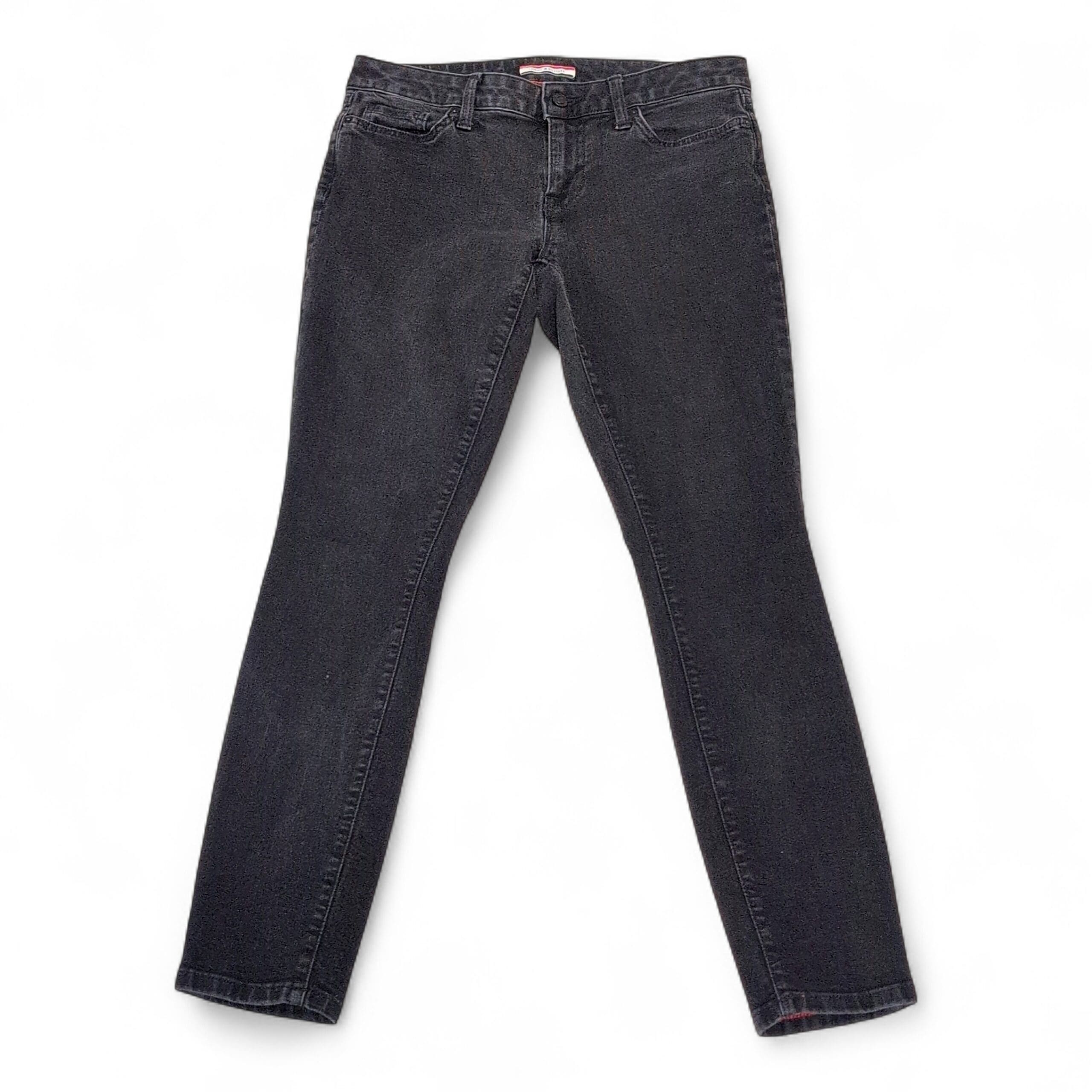 Tommy Hilfiger women’s black skinny jeans in size 4. Clean black wash with a slim, figure-flattering skinny leg — a versatile wardrobe staple that pairs easily with tees or blouses. Classic five-pocket styling and belt loops for easy pairing. Gently used and free of major rips, tears, stains, or flaws; typical light wear may be present. Please review photos for details and overall condition.