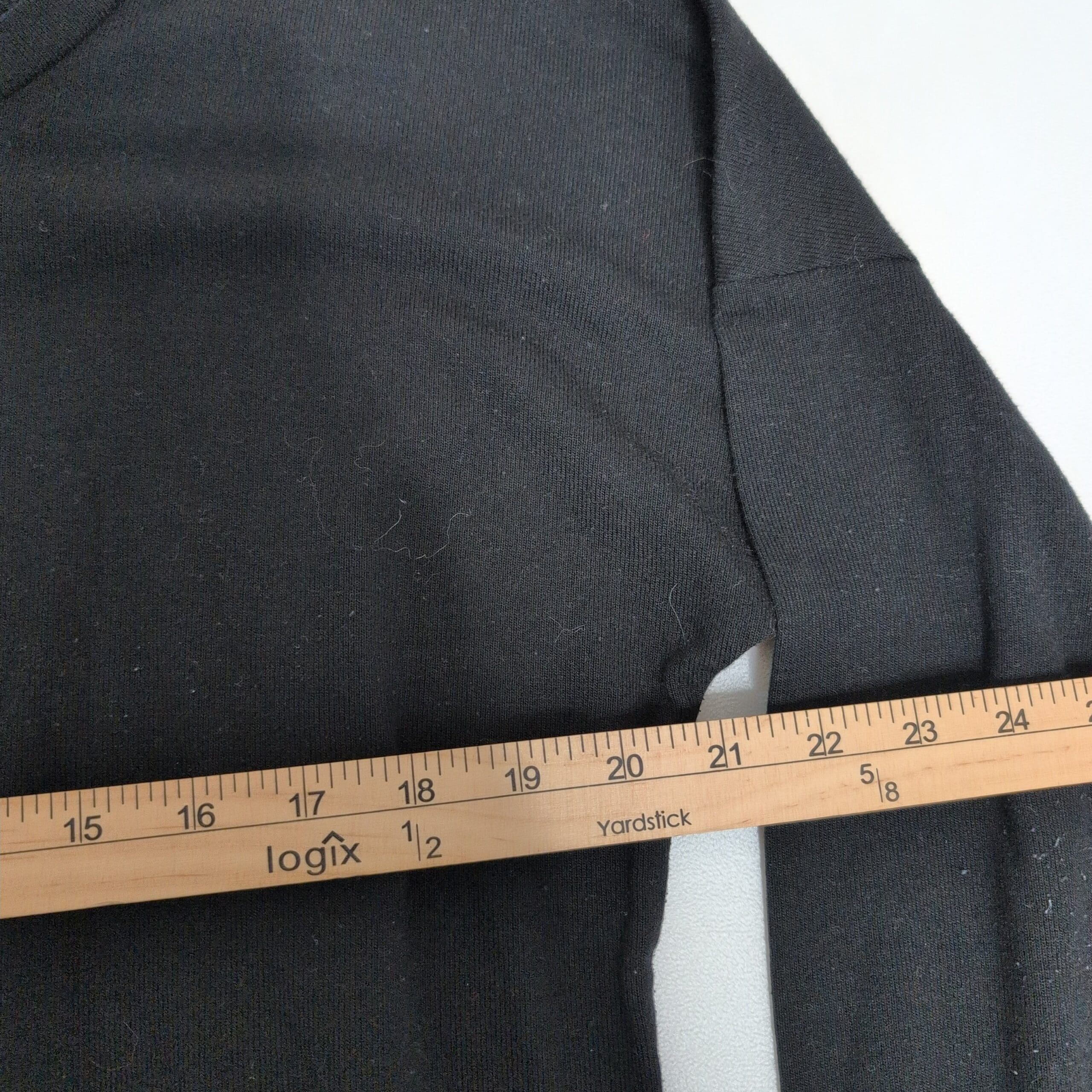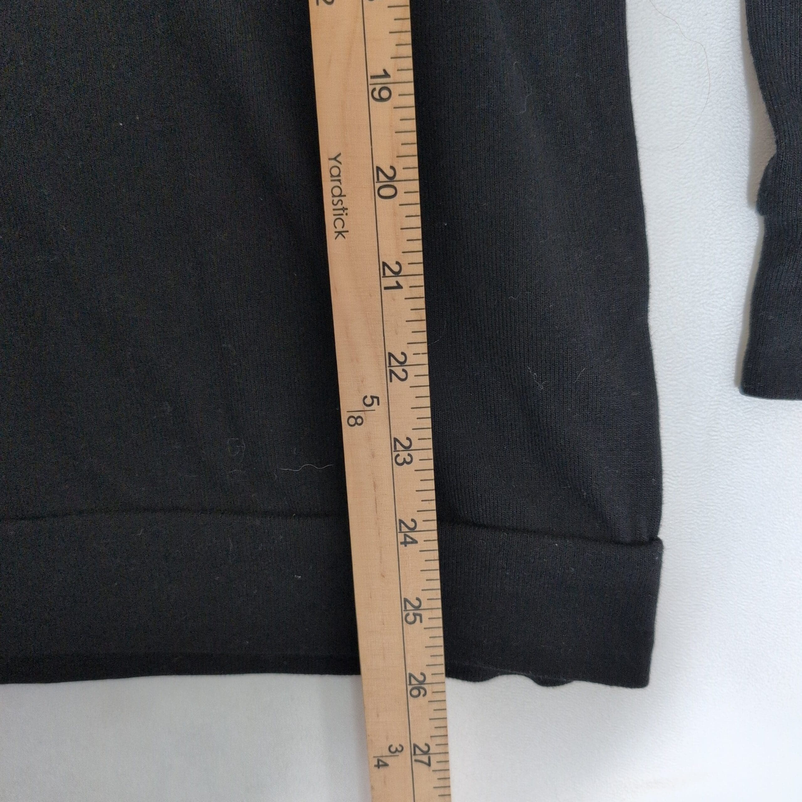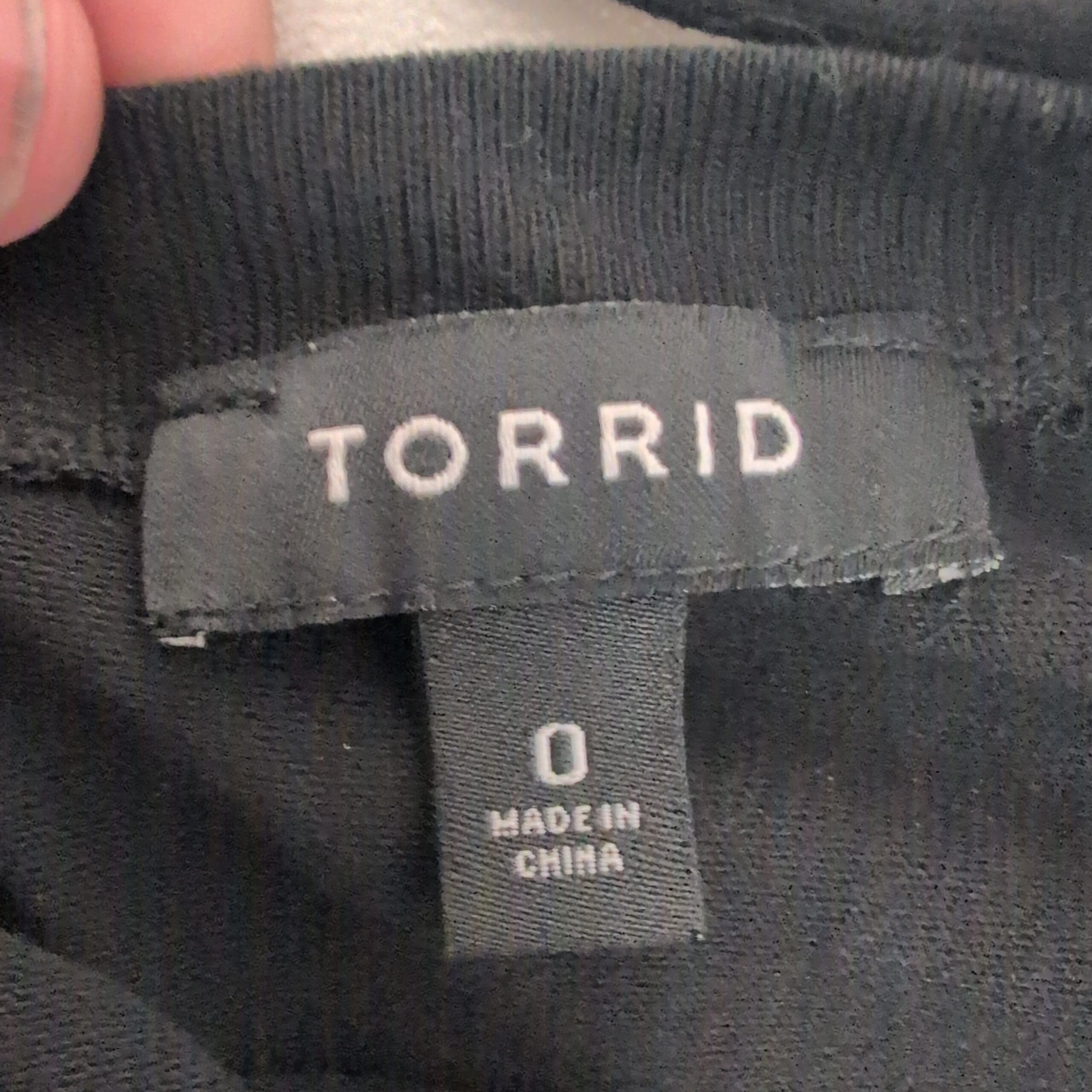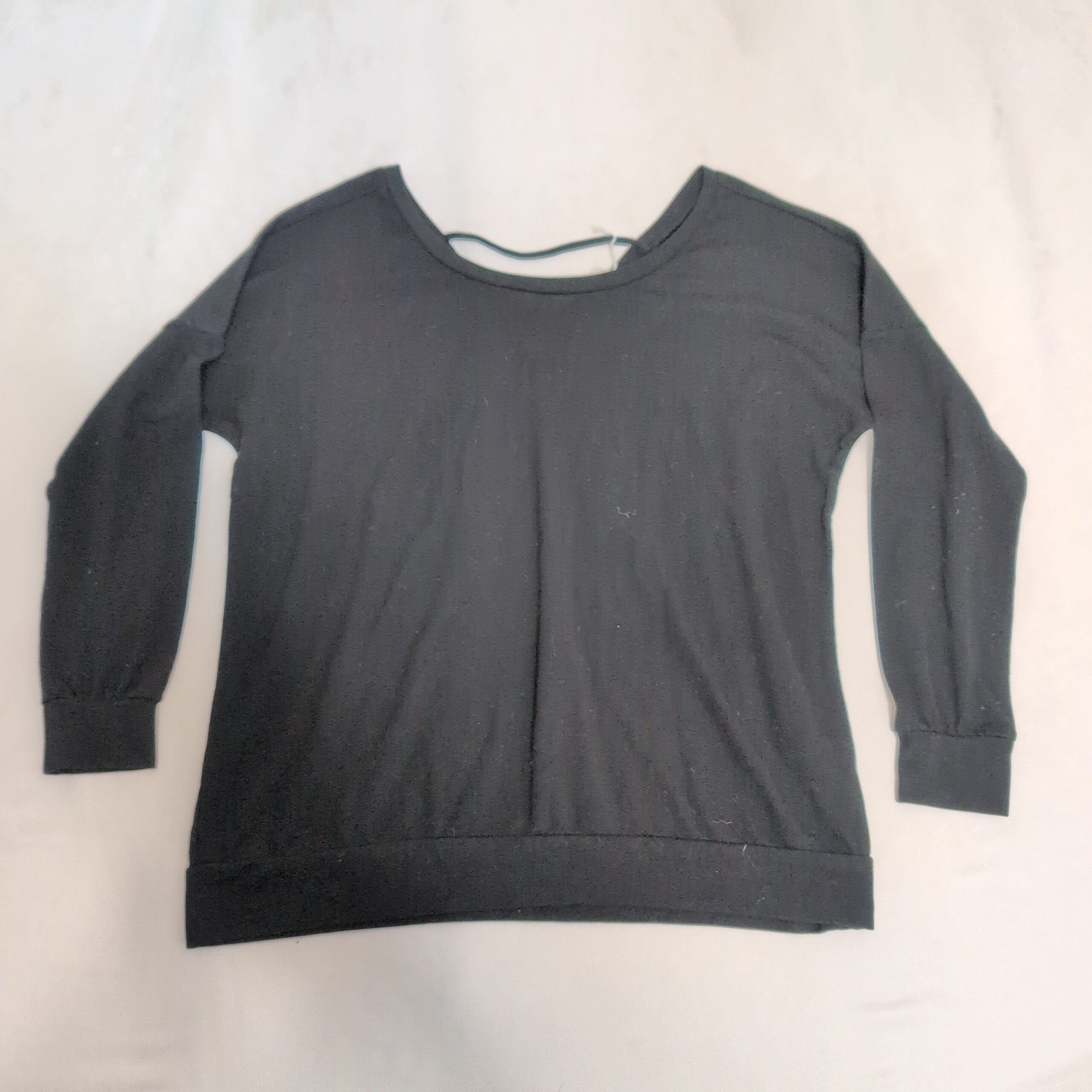 Torrid black long-sleeve pullover sweatshirt in size L. Relaxed, easy fit with a wide crew neckline, cuffed wrists and a banded hem — great for layering or wearing on its own. Soft lightweight knit ideal for casual days. Pre-owned with light signs of wear: minor pilling and a few surface lint pieces visible in photos; no holes, stains, or odors noted.