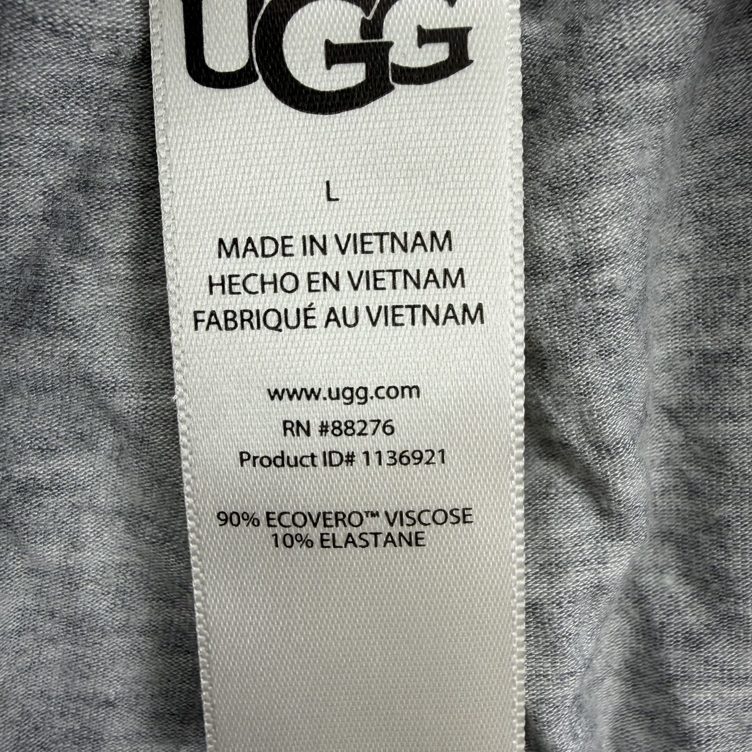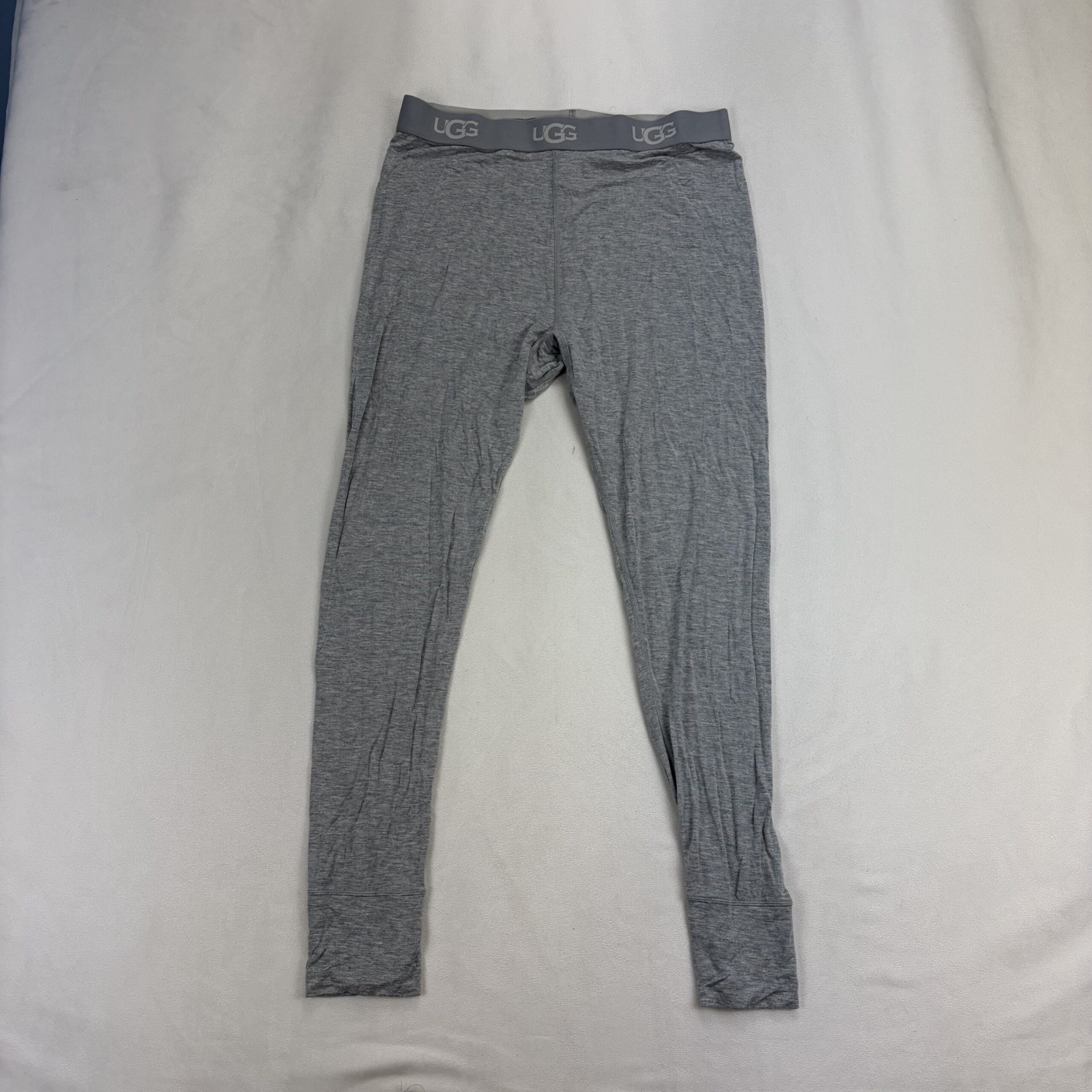 UGG women’s grey lounge leggings in size L with elastic logo waistband. Comfortable everyday layer perfect for relaxing at home or pairing with oversized sweaters. Excellent used condition — free of major rips, tears, stains, or flaws. Typical light wear and slight creasing from storage; see photos for details.
