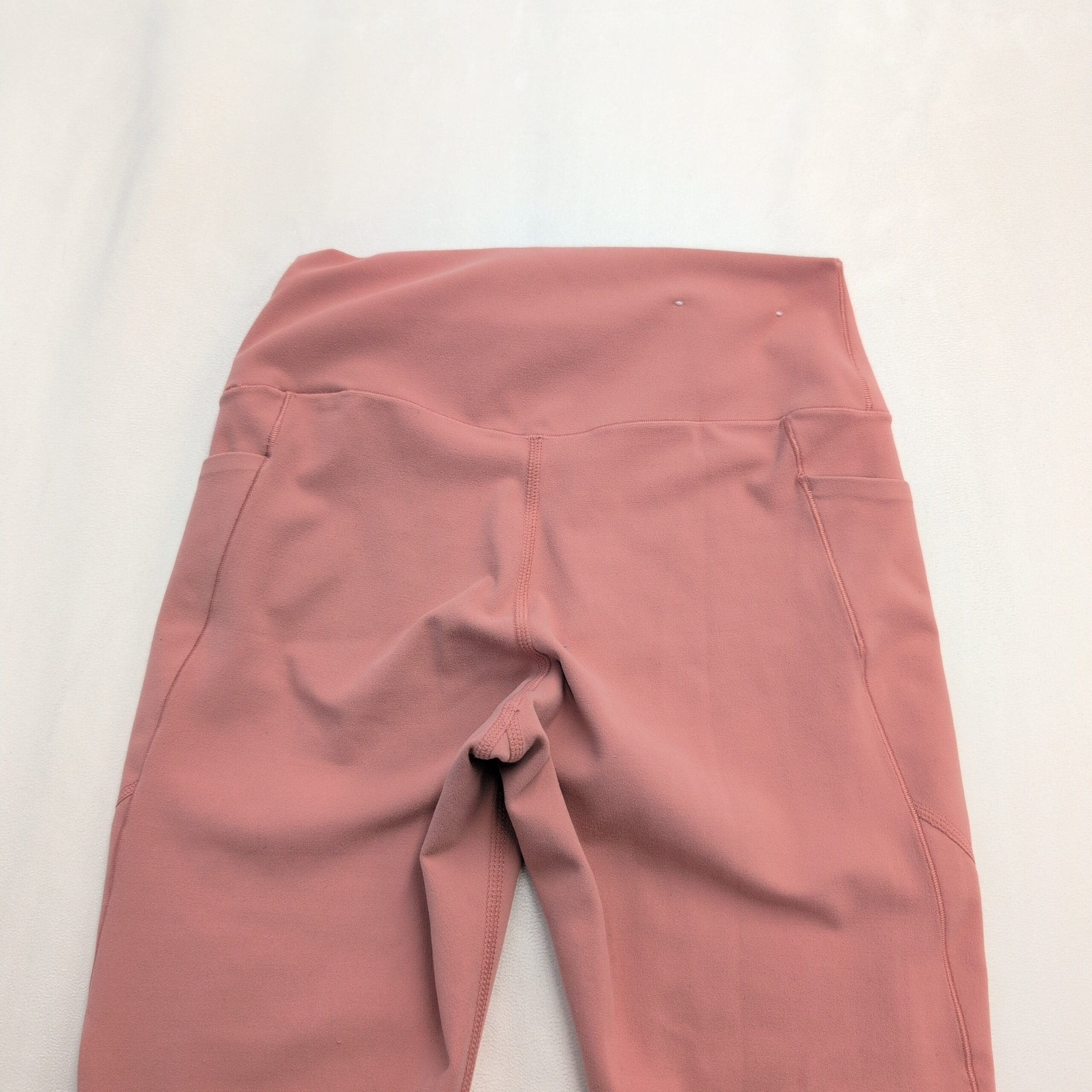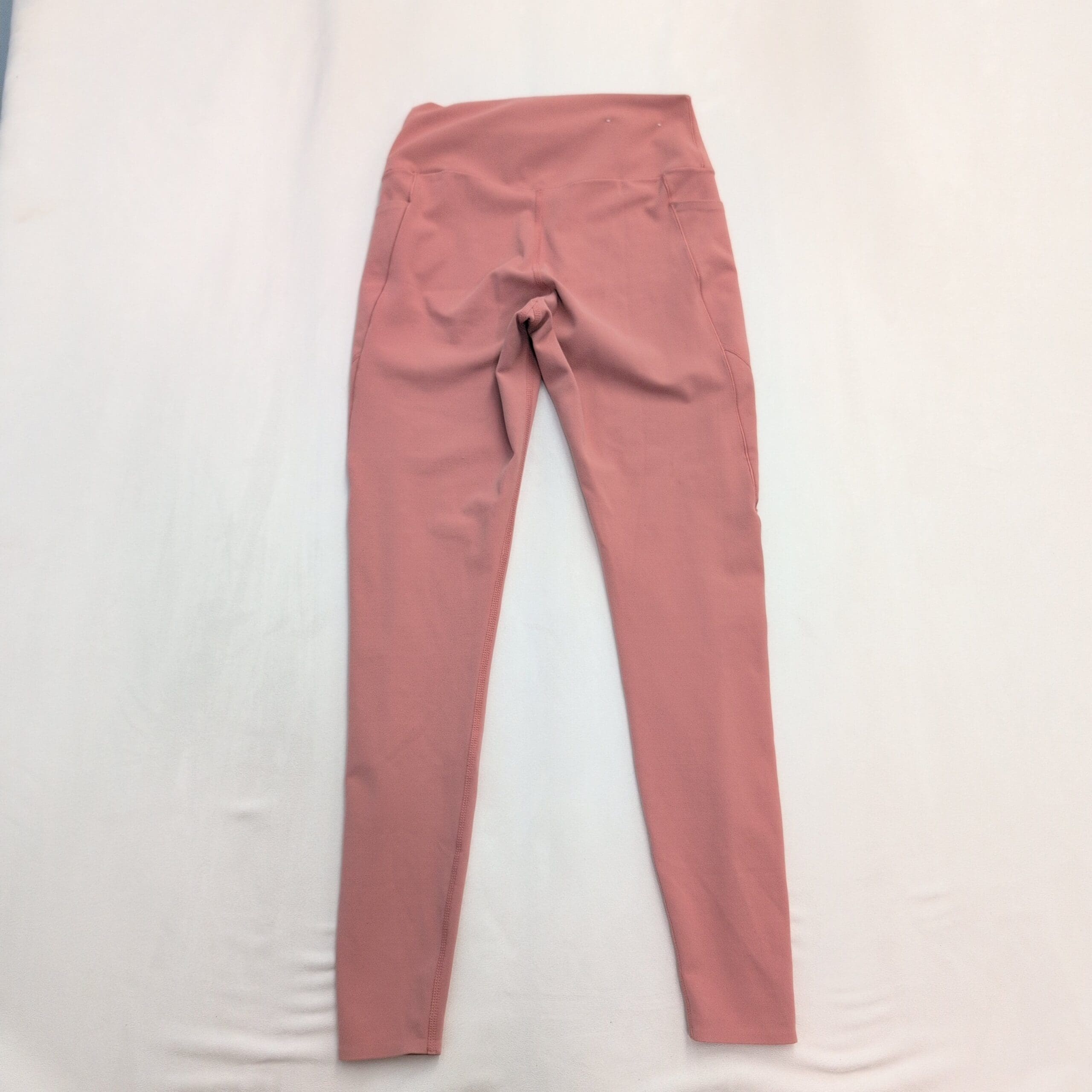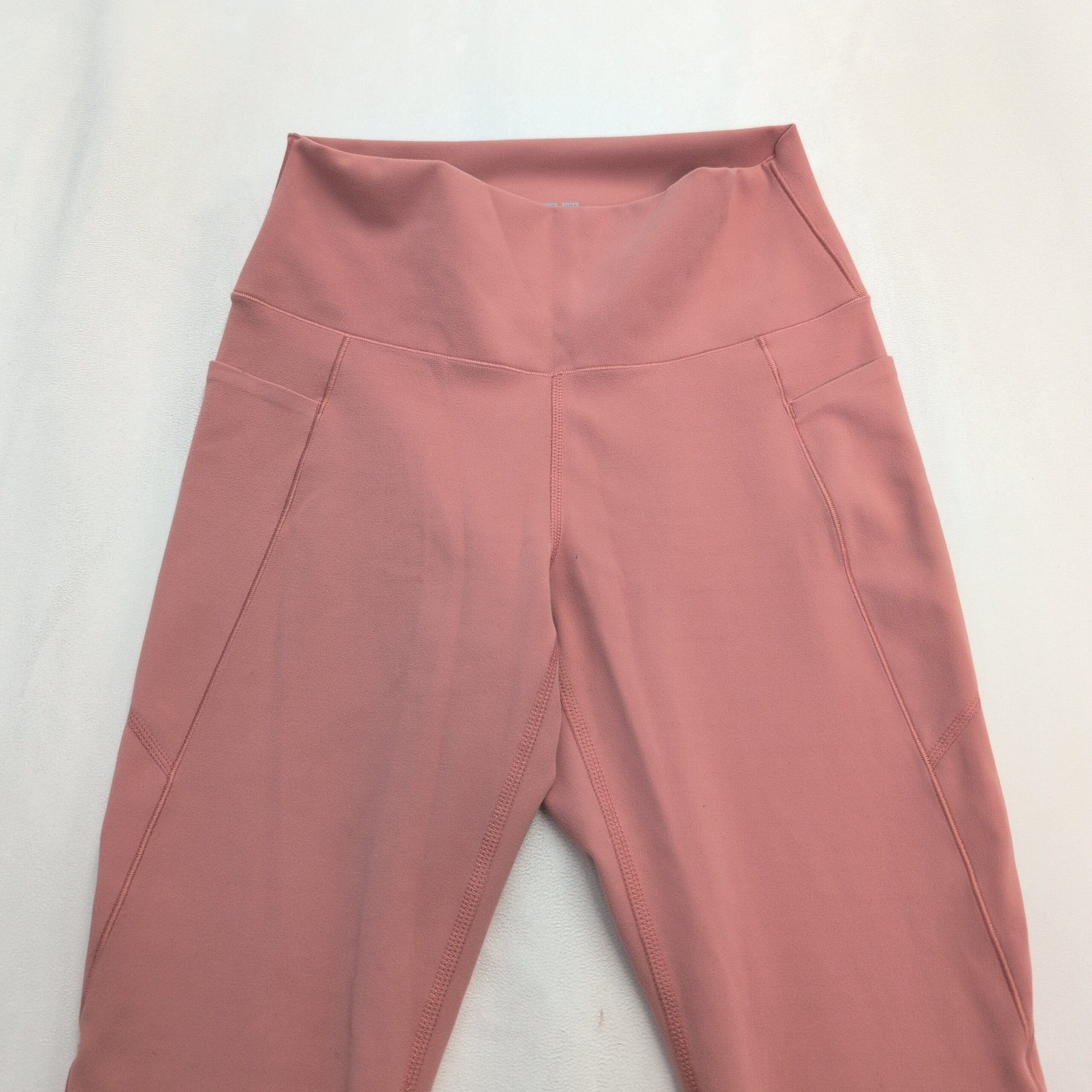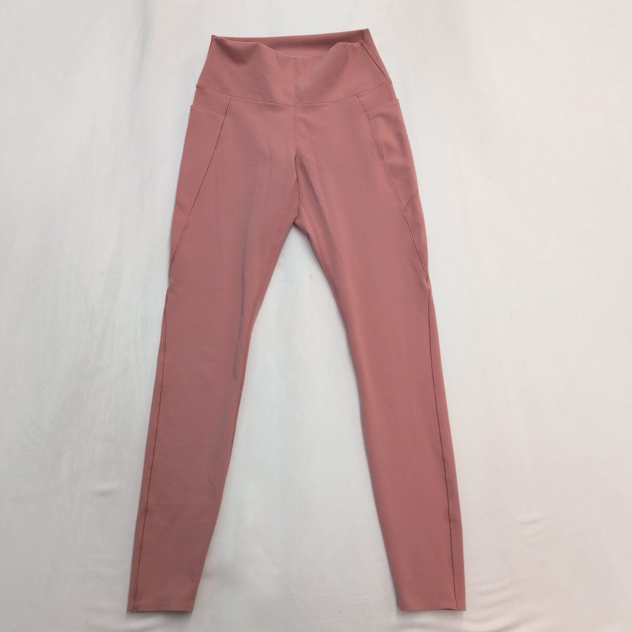 Uniqlo women’s high-waist leggings in pink, size S. Full-length, slim-fit design with a wide supportive waistband for core comfort and a smooth, stretchy fabric that moves with you. Subtle side seam pockets hold small essentials; clean stitching and a streamlined silhouette make these great for workouts or everyday wear. Gently used condition — free of major rips, tears, or stains, though typical light wear may be present.