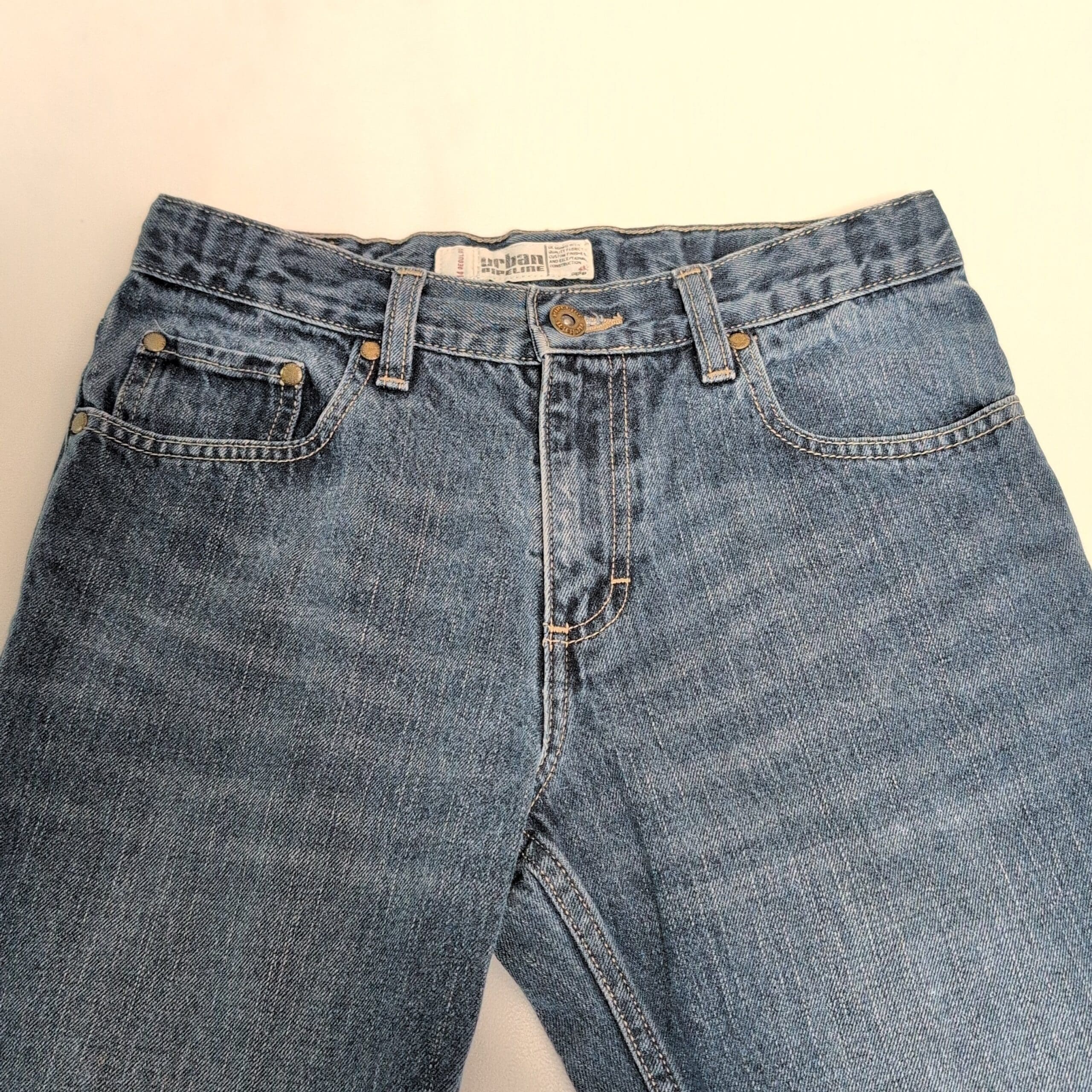 Urban Pipeline women’s straight-leg jeans in size 14 (Plus) in a classic blue wash. Five-pocket styling with zip fly and button closure, offering a timeless straight-leg silhouette that’s great for everyday wear. Gently used — free of major rips, tears, stains, or flaws; shows typical light wear and subtle fading consistent with regular use.