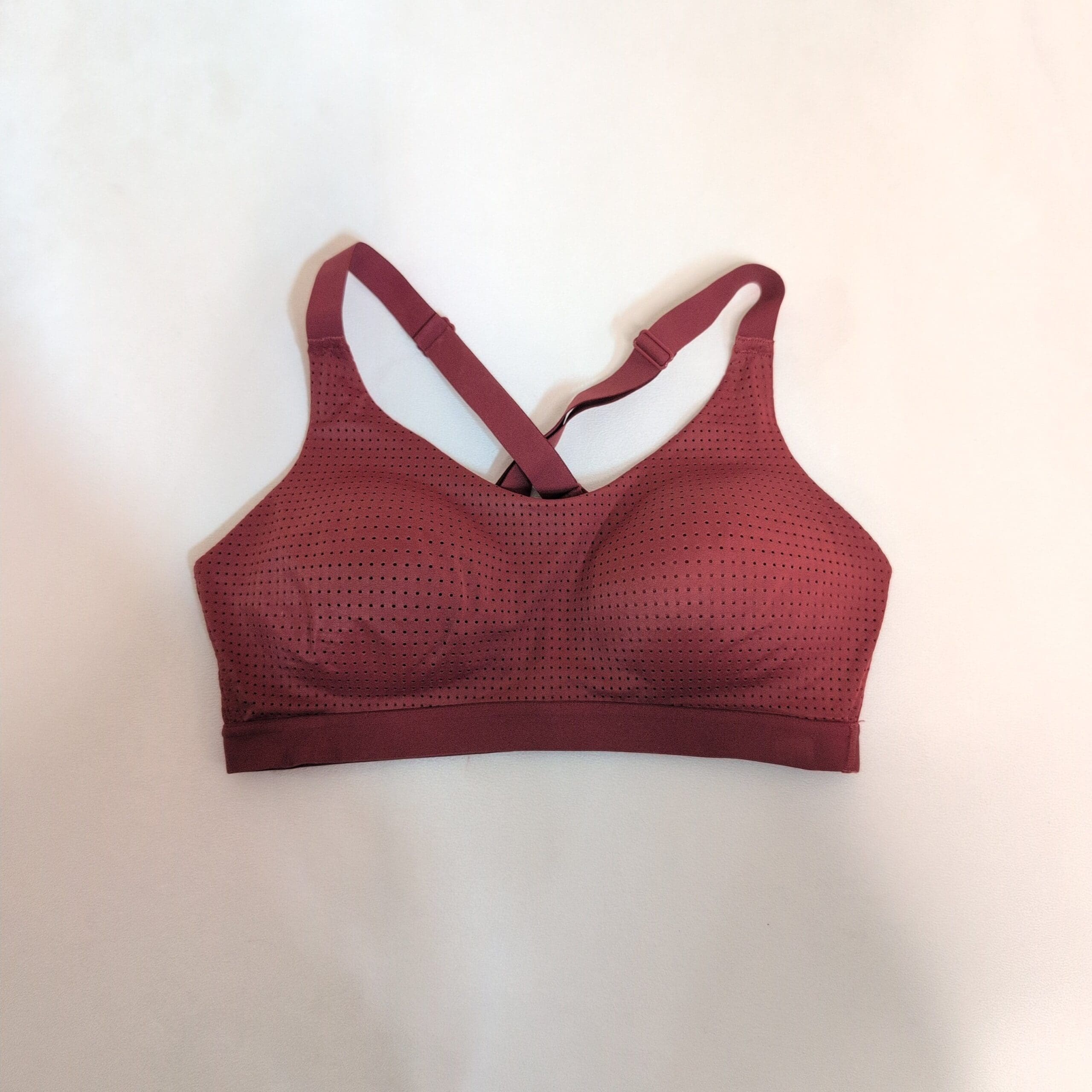 Victoria’s Secret women’s bra in size 34C in a warm orange tone. Features perforated, breathable fabric and molded cups for a smooth silhouette. Wireless, lightly supportive design with adjustable racerback straps for a customizable fit. Ideal for everyday wear or low-impact activities. Pre-owned in excellent condition with no visible stains or damage.